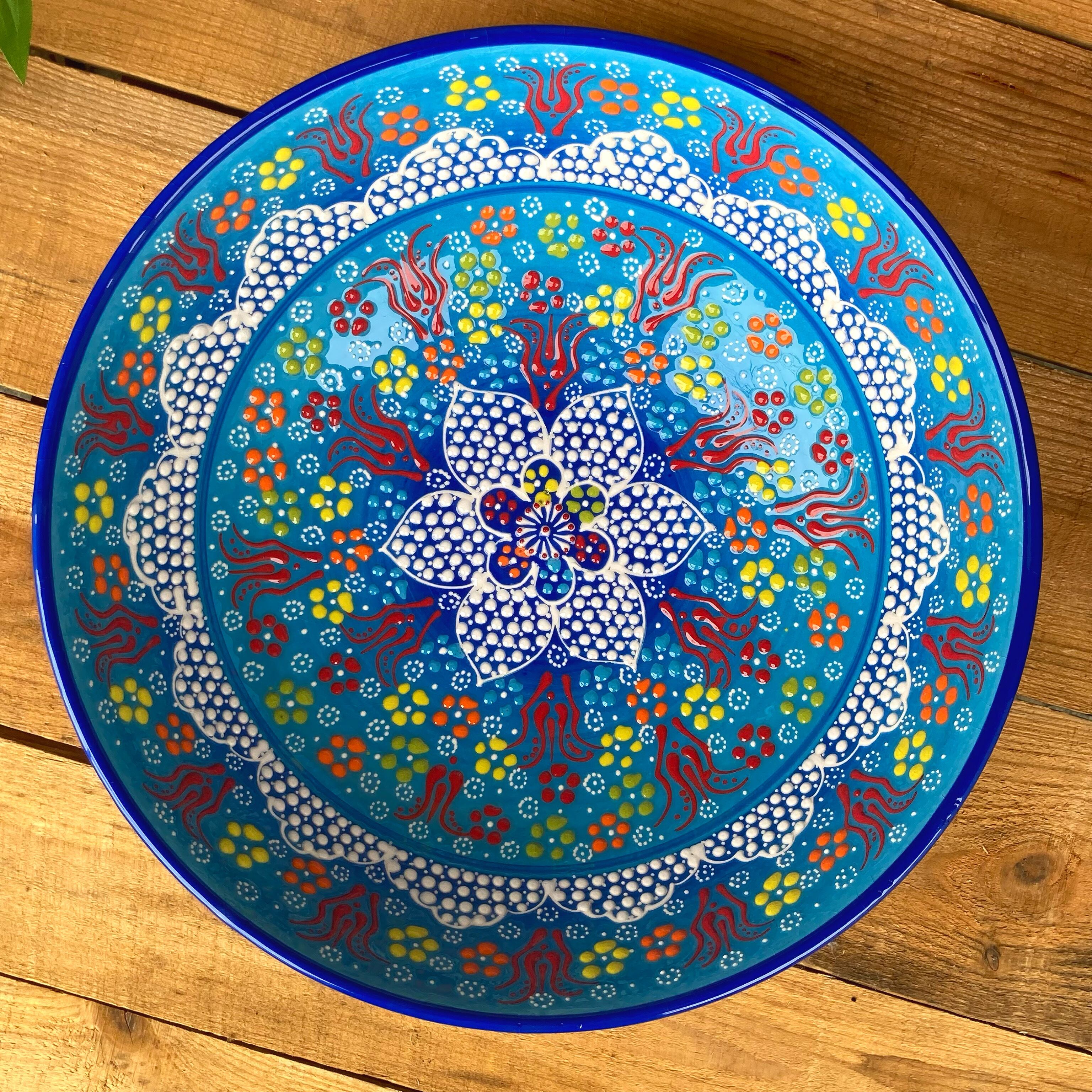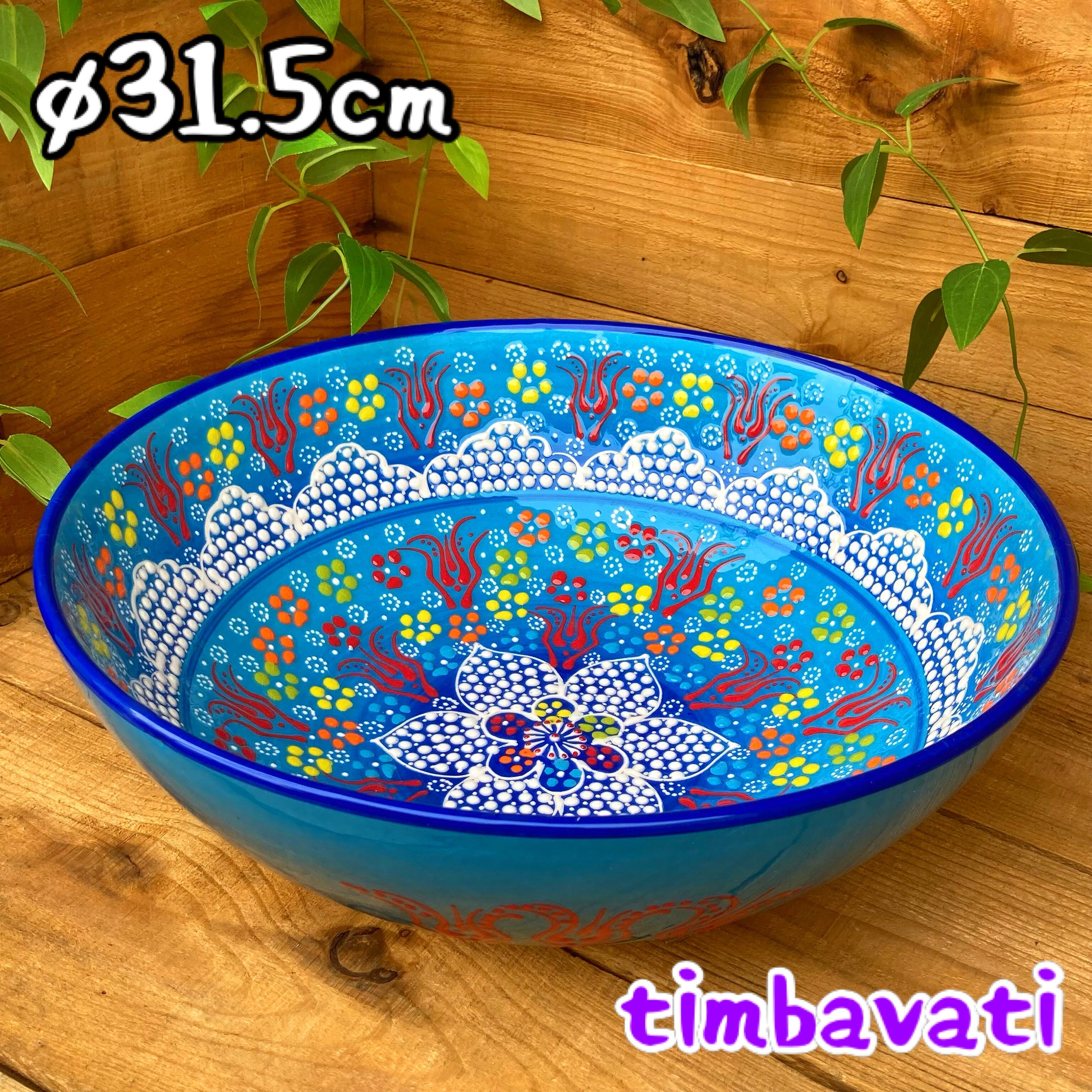 31.5cm【トルコ陶器】手描き 特大サイズ ボウル*ブルー*キュタフヤ陶器