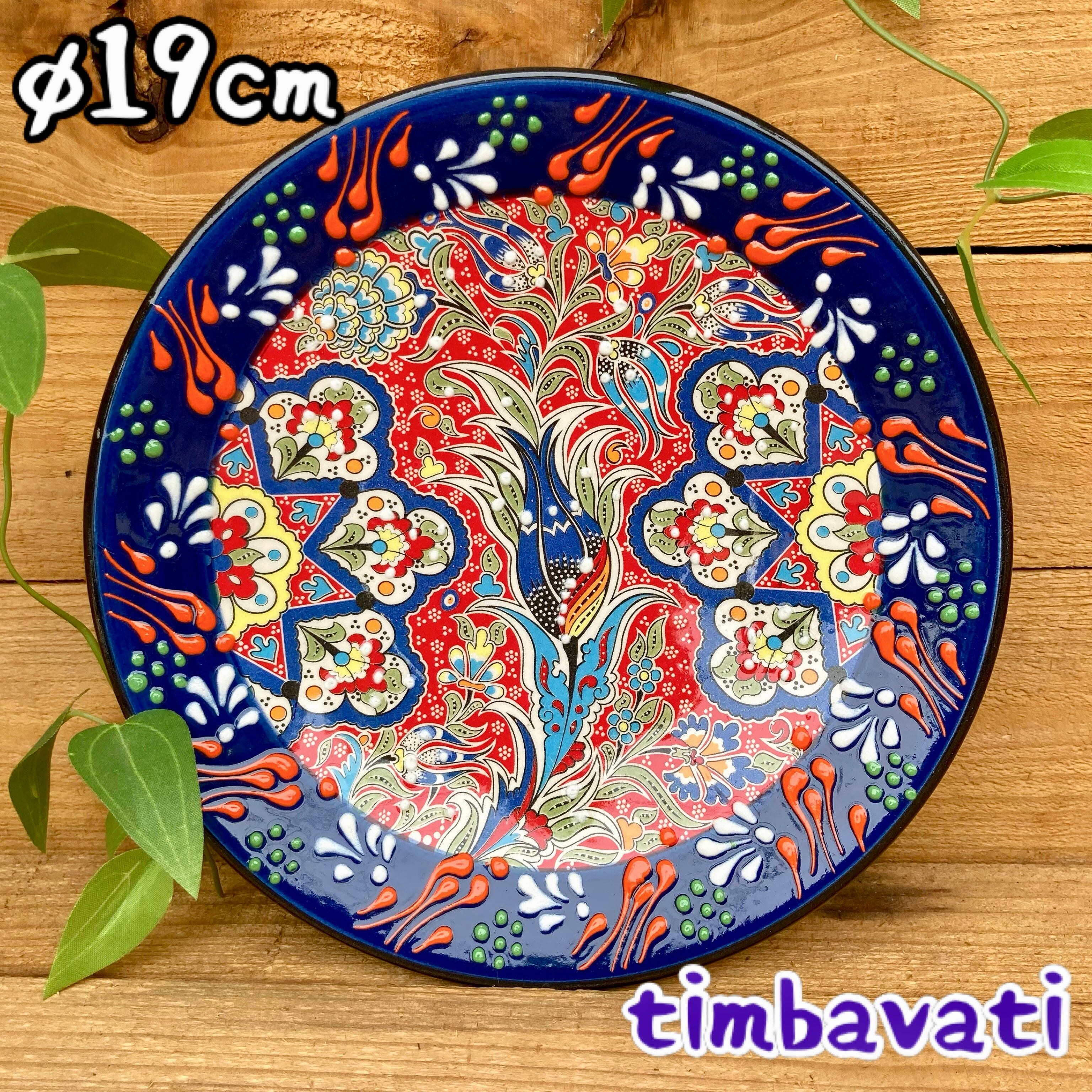 19cm【トルコ陶器】手描き 中皿 壁掛け *ネイビー*キュタフヤ陶器