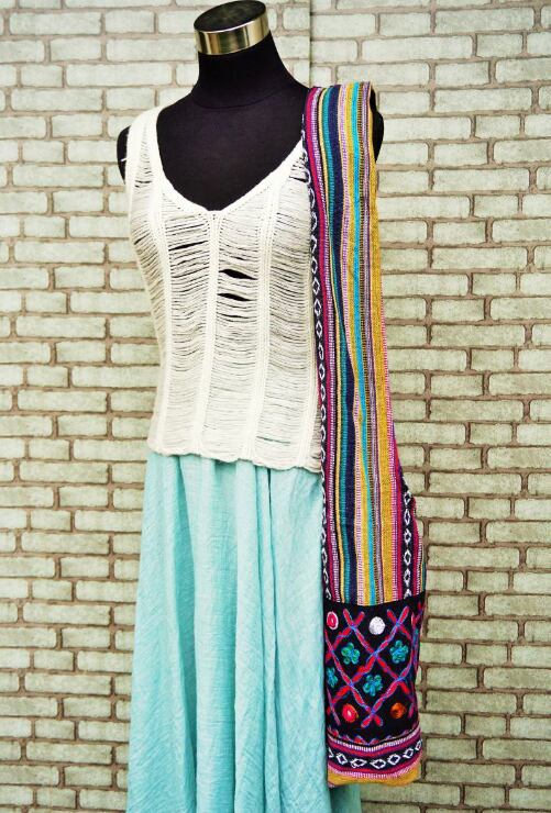 *ゲリ織とミラーワークのアジアンテイストのロングショルダーバッグです。