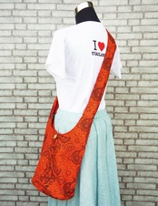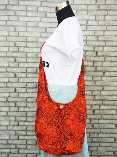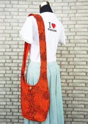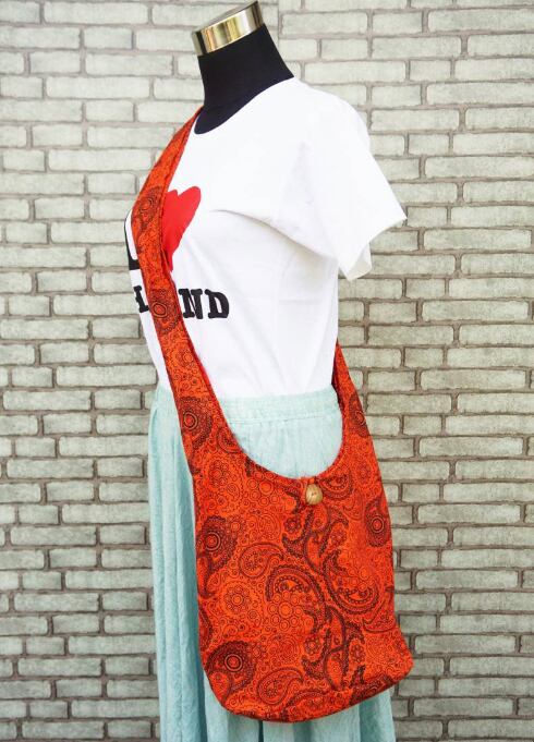 【タイ】男女兼用 アジアンペイズリー柄 ショルダーバッグ *オレンジ*