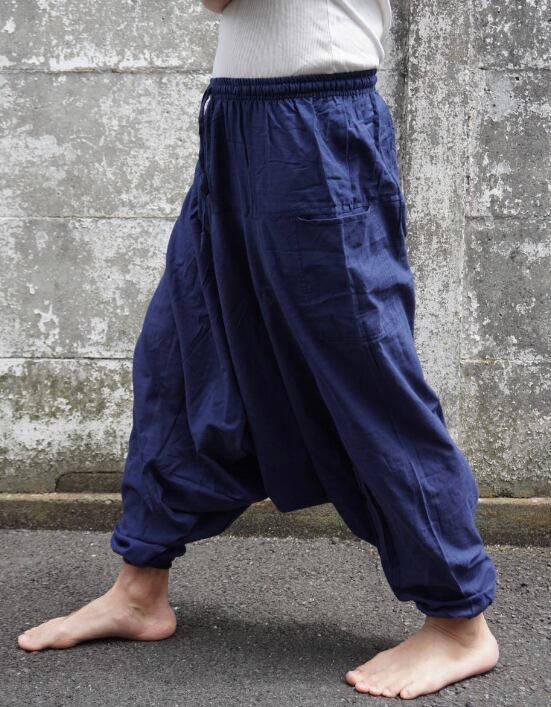 【インド】アジアン コットン サルエルパンツ フリーサイズ *ネイビー*男女兼用