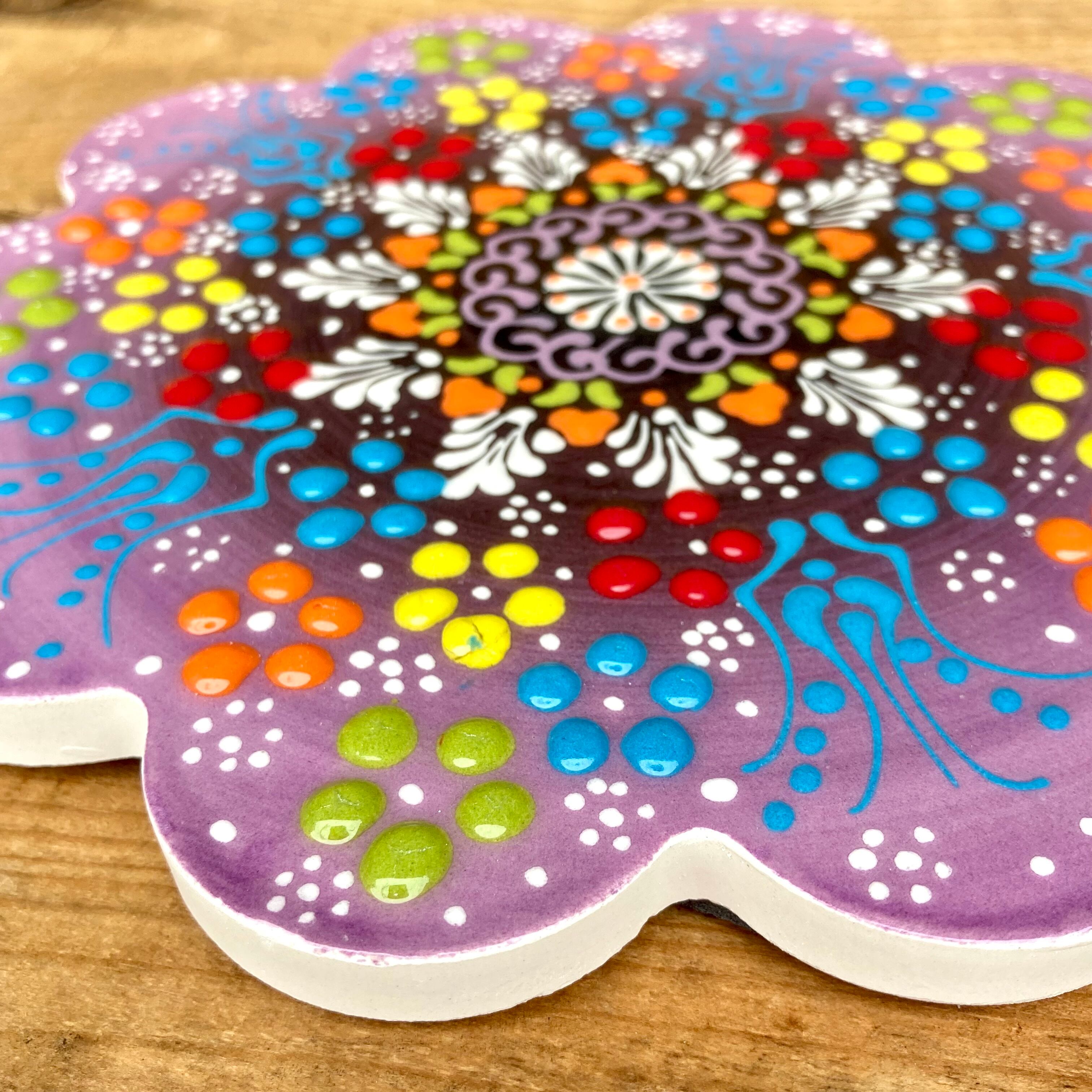 トルコの職人が1点1点絵付けしたカラフルなトルコセラミック陶器の鍋敷きです