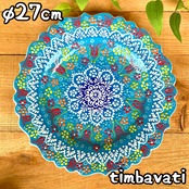 27cm【トルコ陶器】手描き 大皿 壁掛け *ライトブルー*キュタフヤ陶器