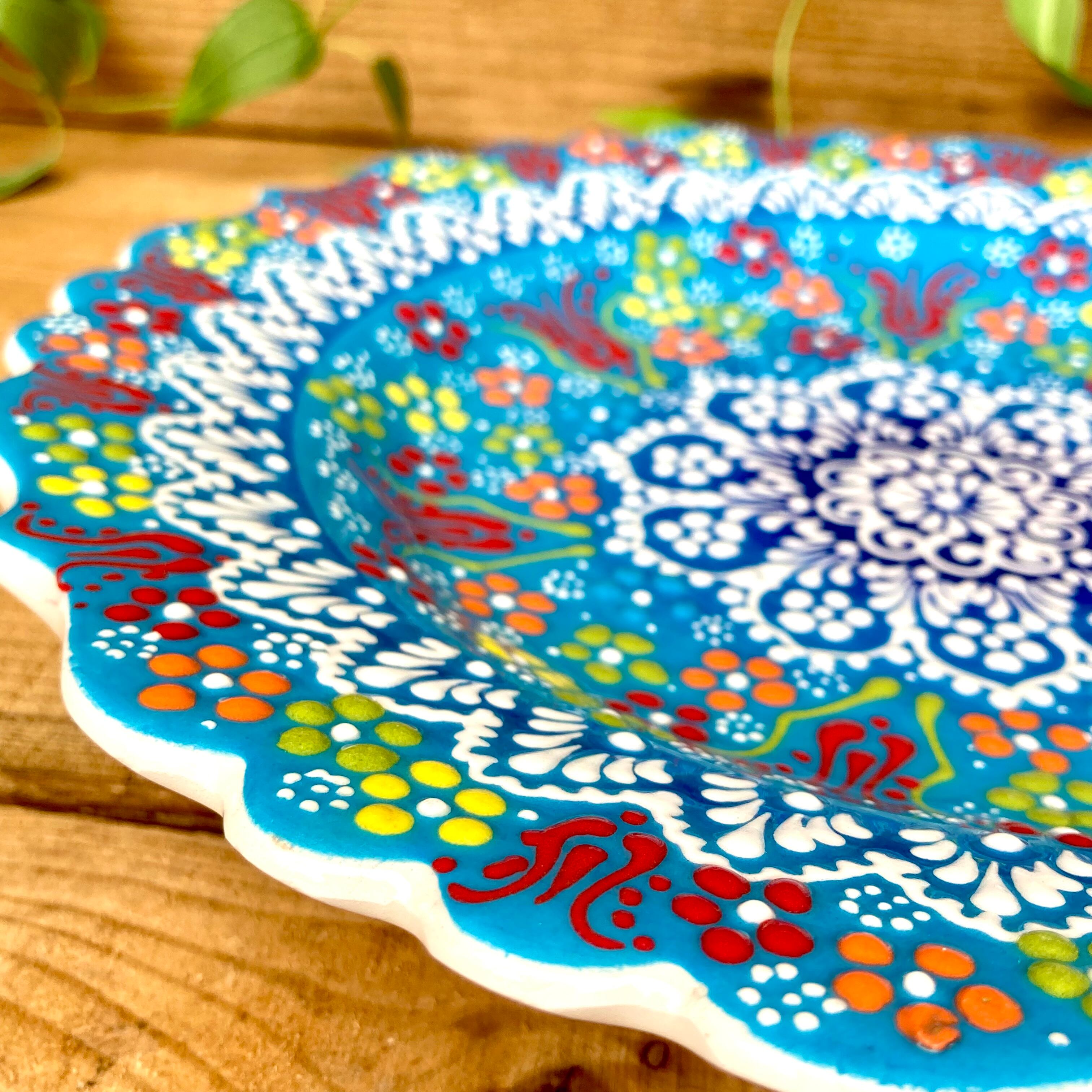 トルコの職人が1点1点絵付けしたカラフルなトルコセラミック陶器のお皿です