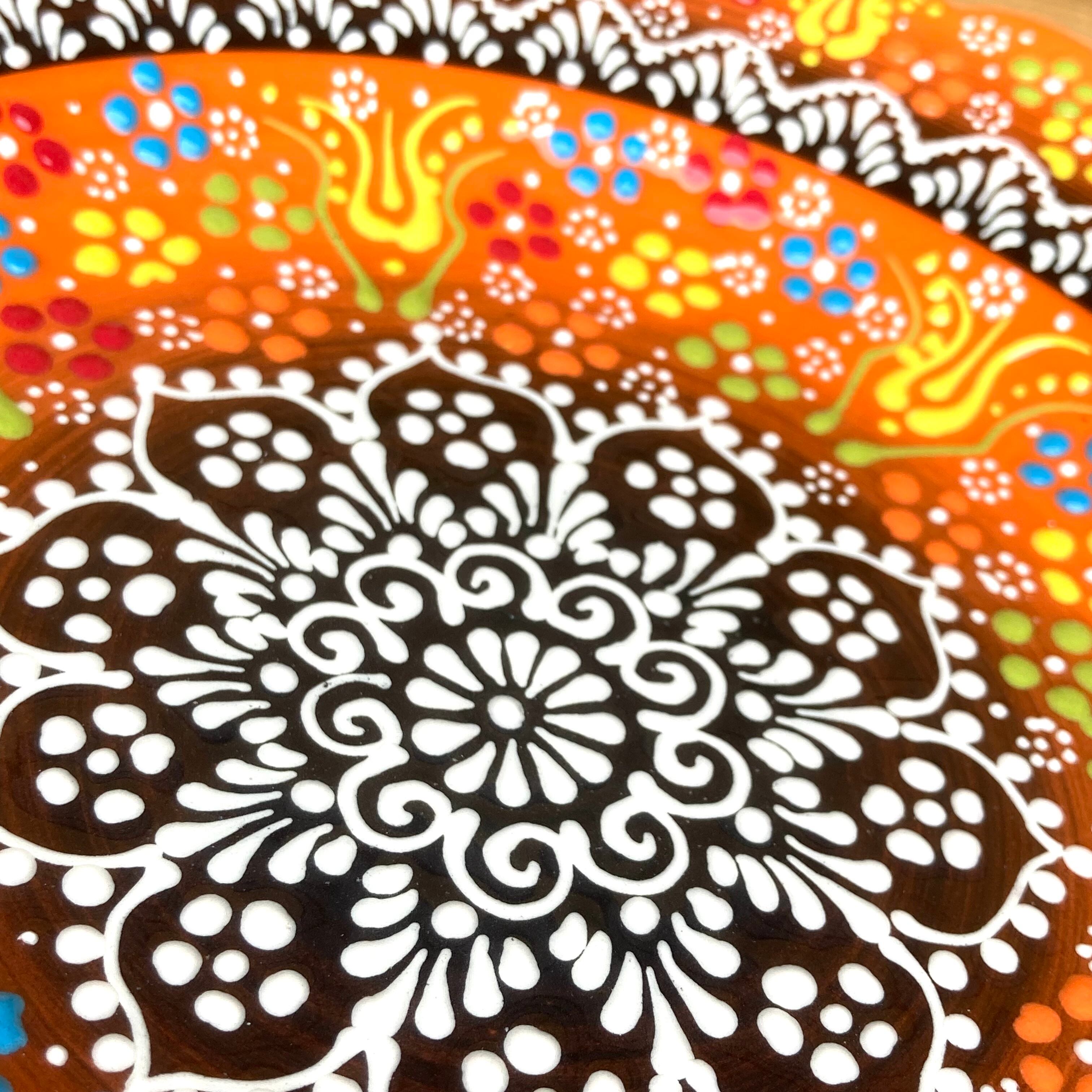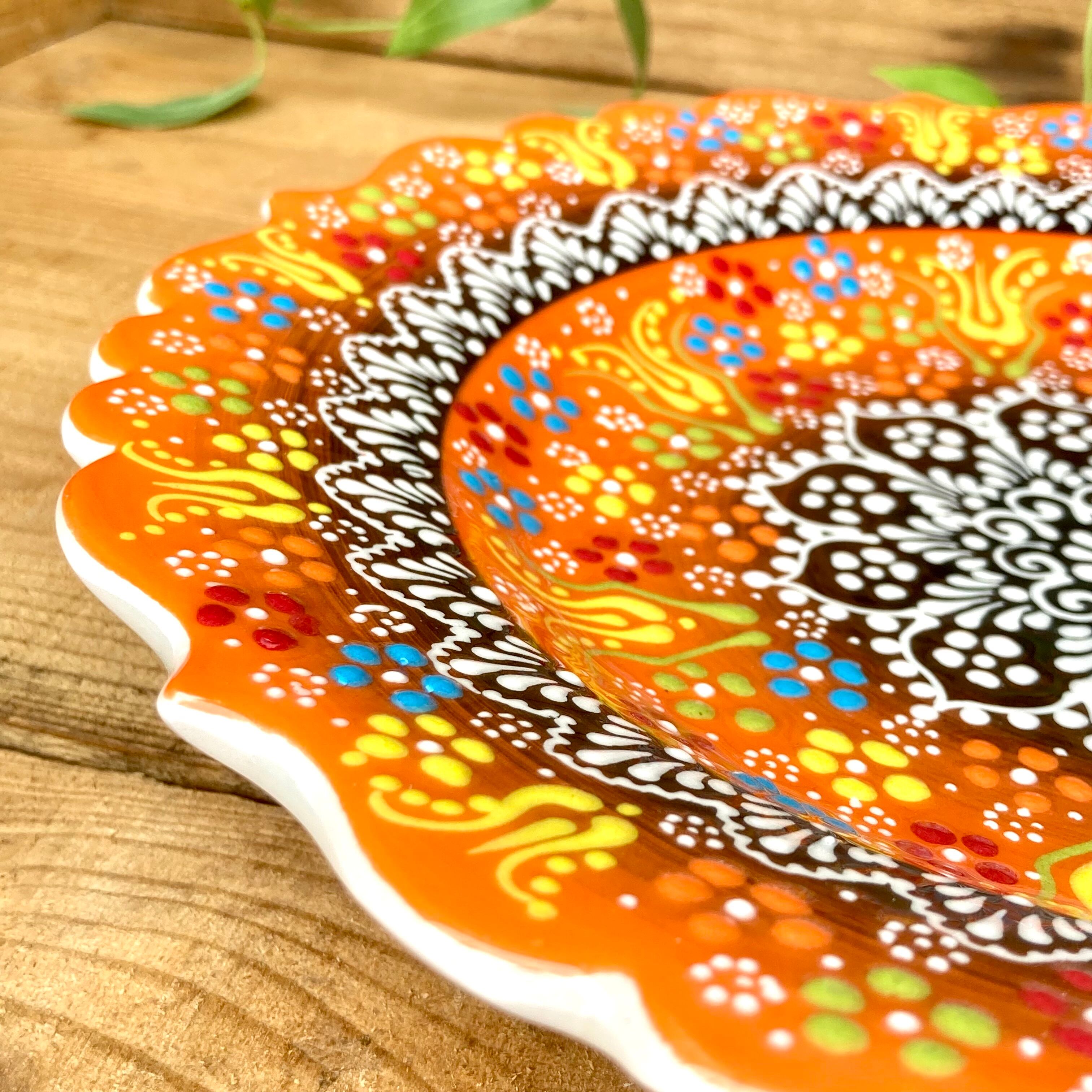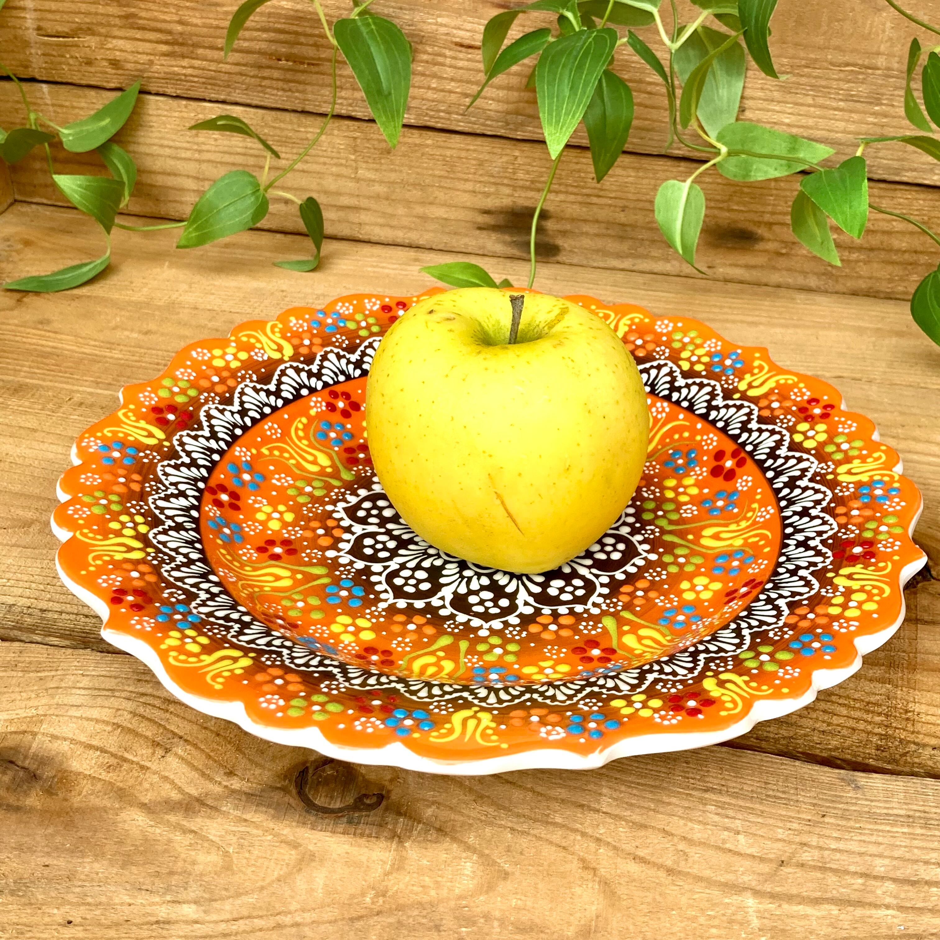27cm【トルコ陶器】手描き 大皿 壁掛け *オレンジ*キュタフヤ陶器