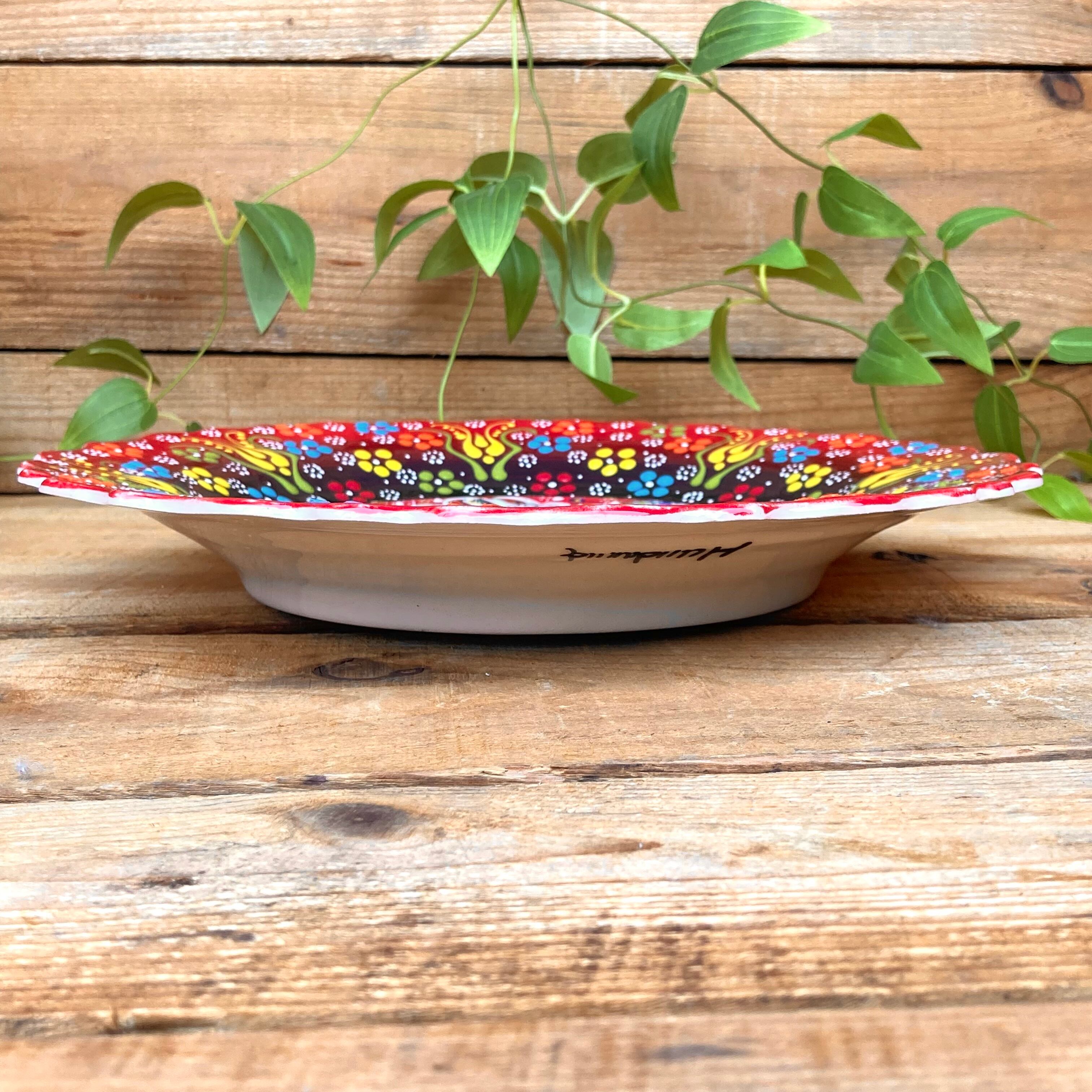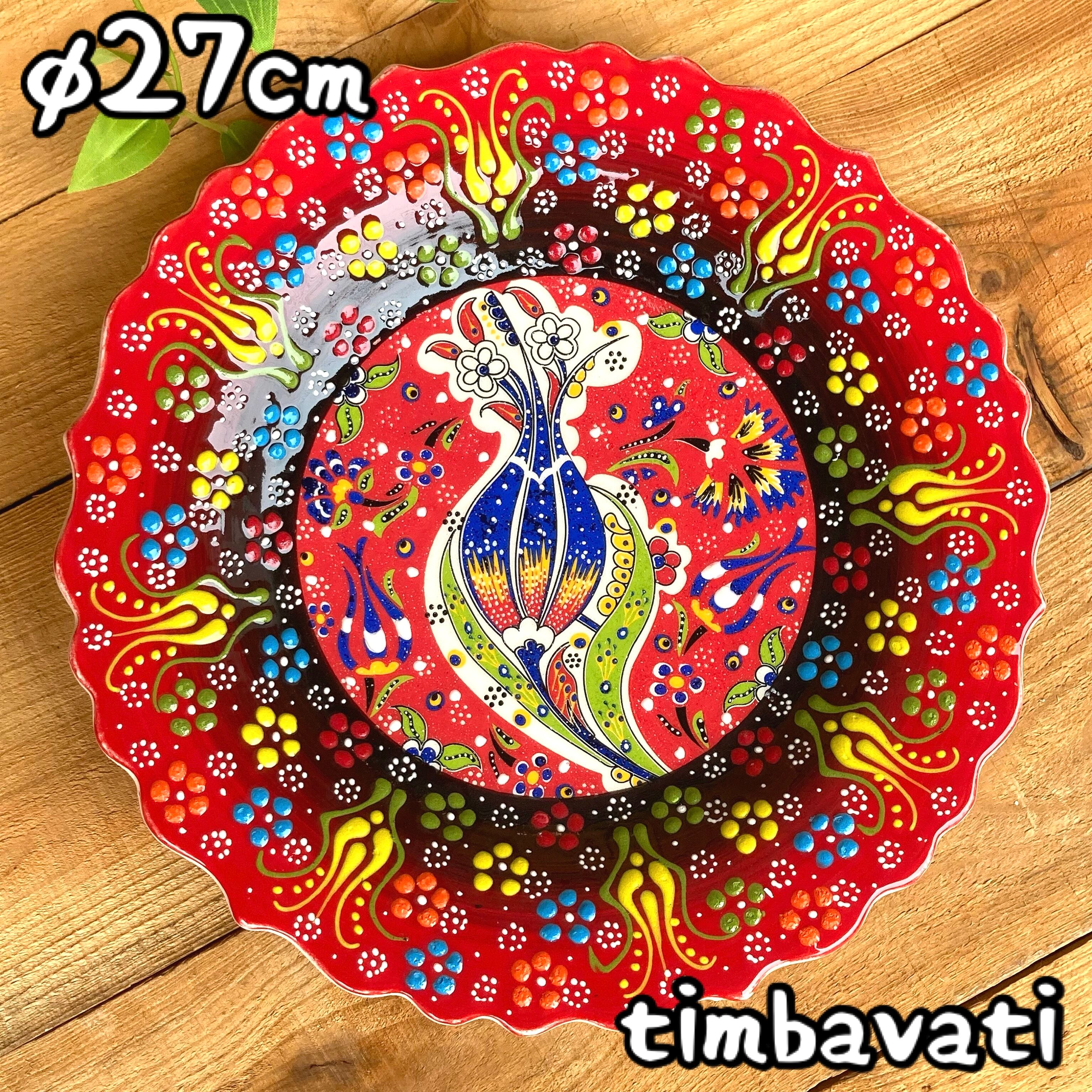 27cm【トルコ陶器】手描き 大皿 壁掛け *レッド チャーリップ*キュタフヤ陶器