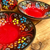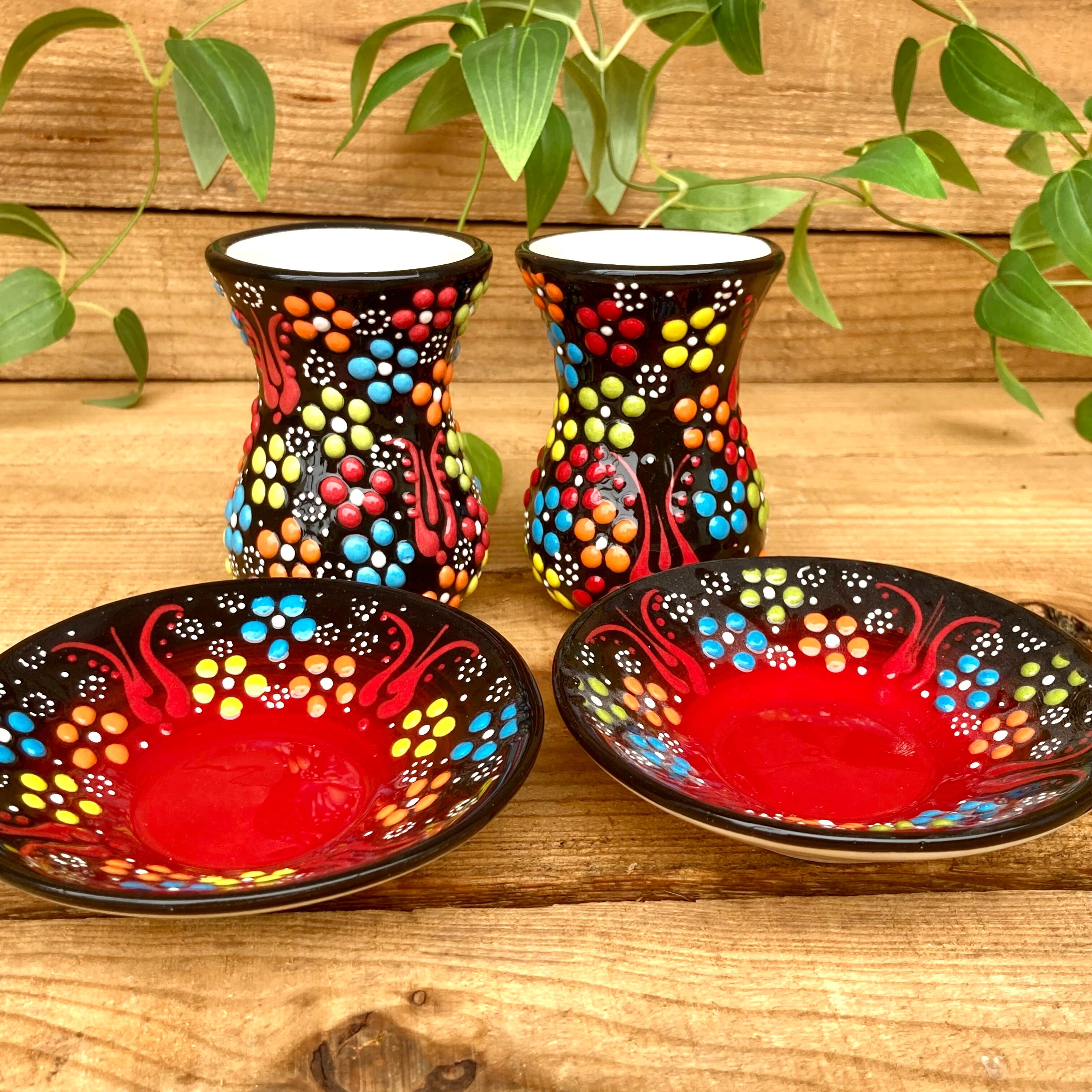 トルコの職人が1点1点絵付けしたカラフルなトルコセラミック陶器のチャイグラスです