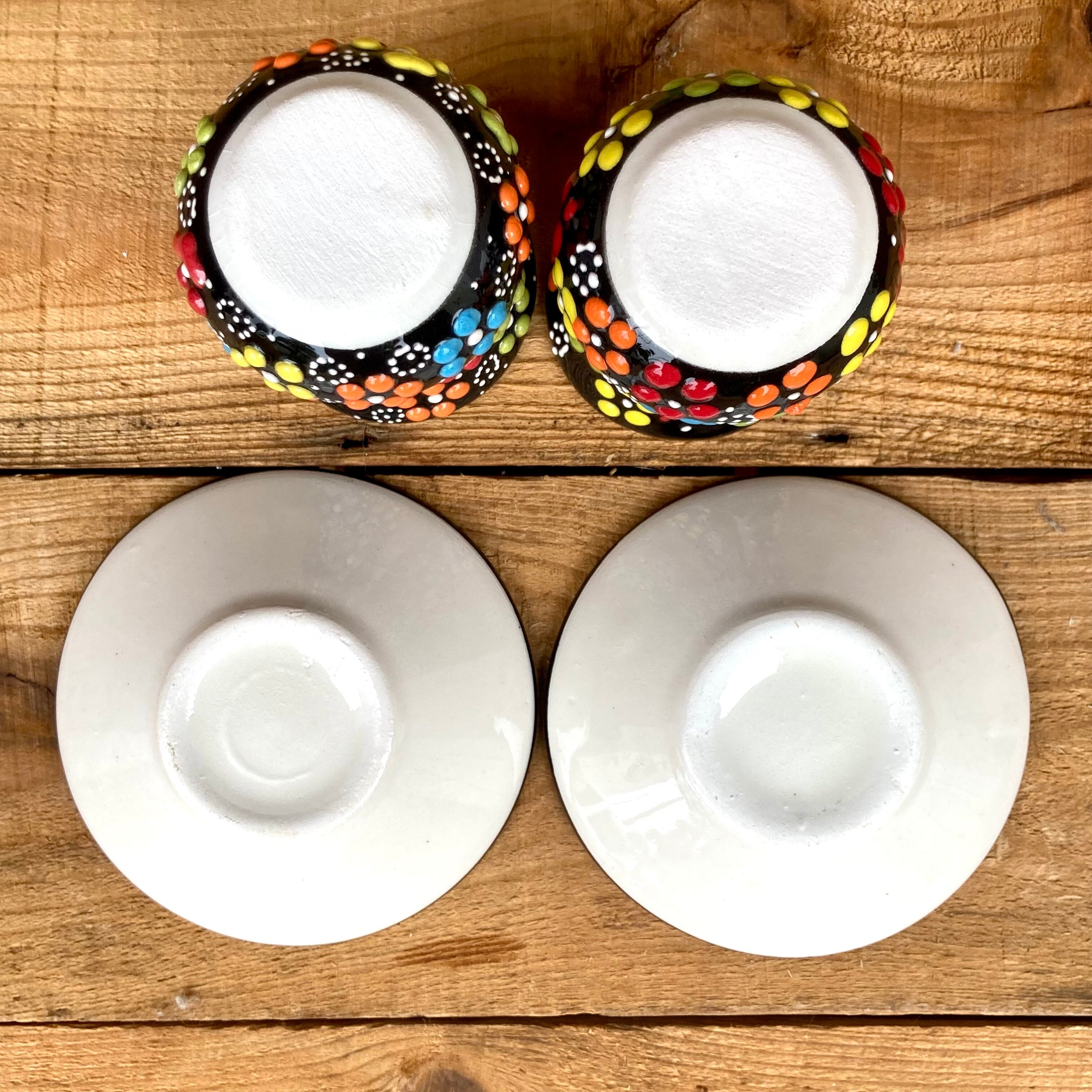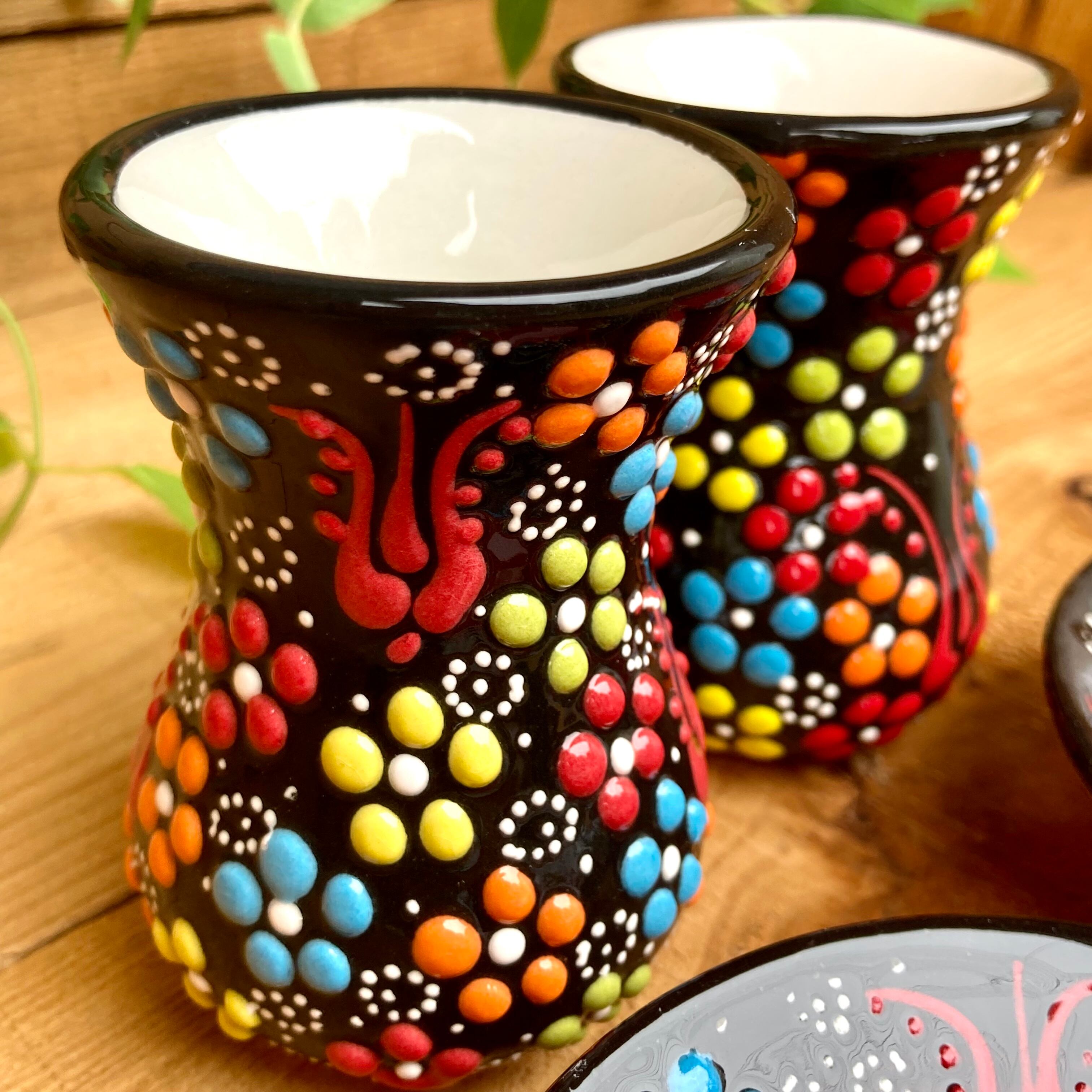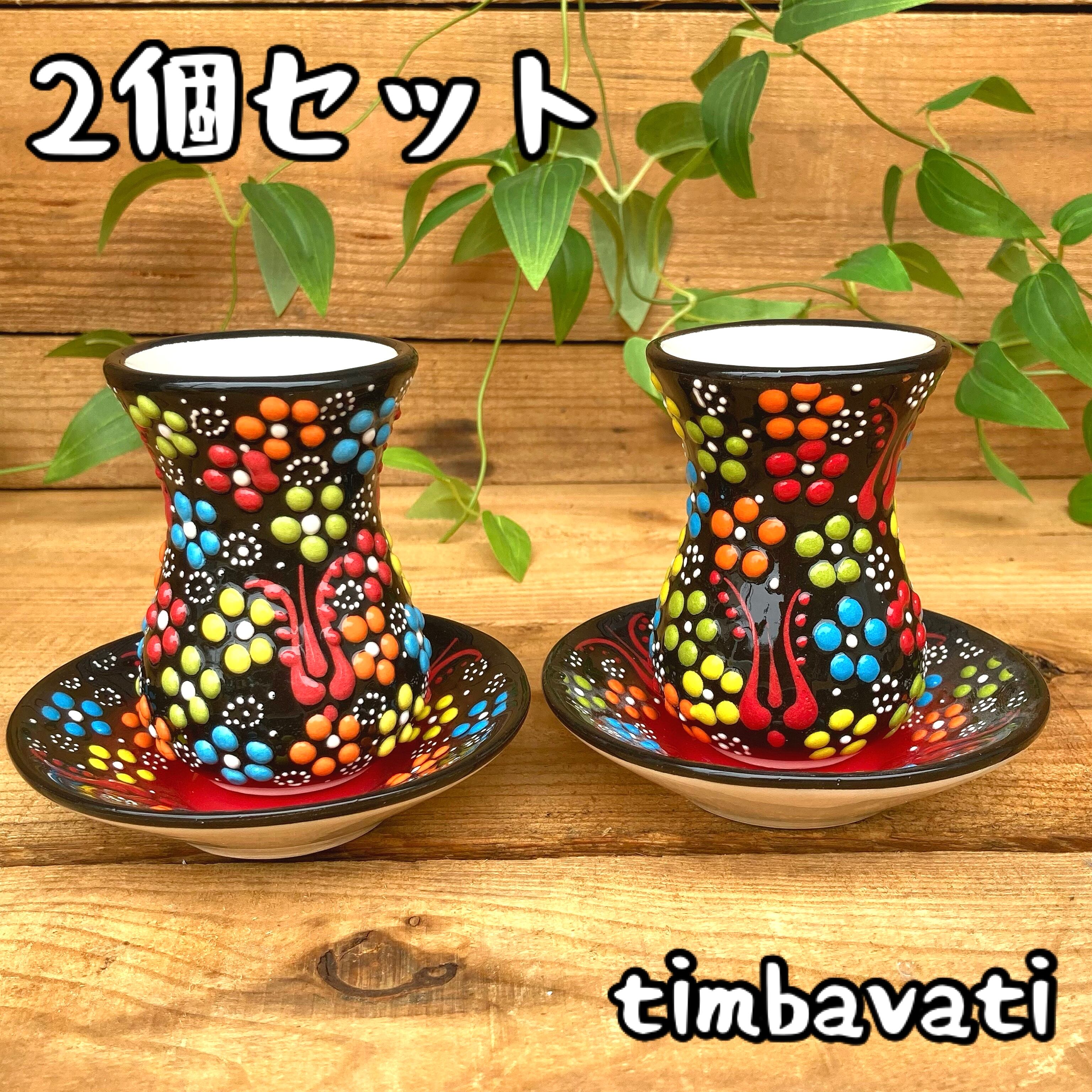 2個セット【トルコ陶器】手描き チャイグラス*ブラック*キュタフヤ陶器