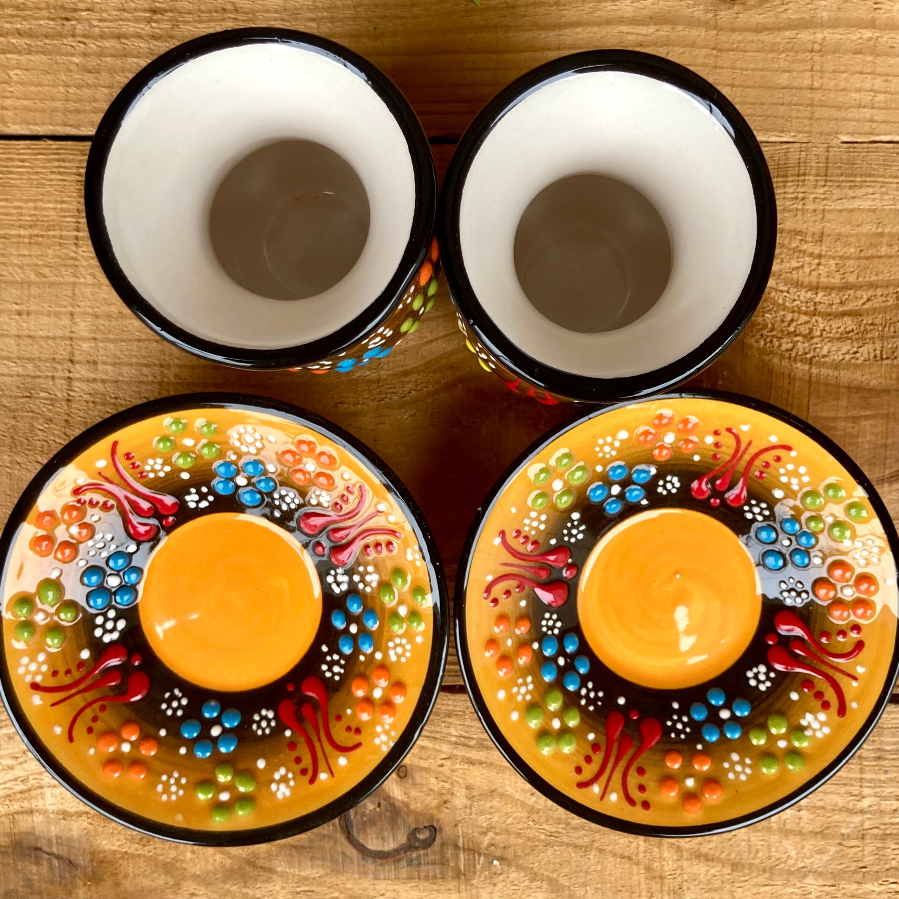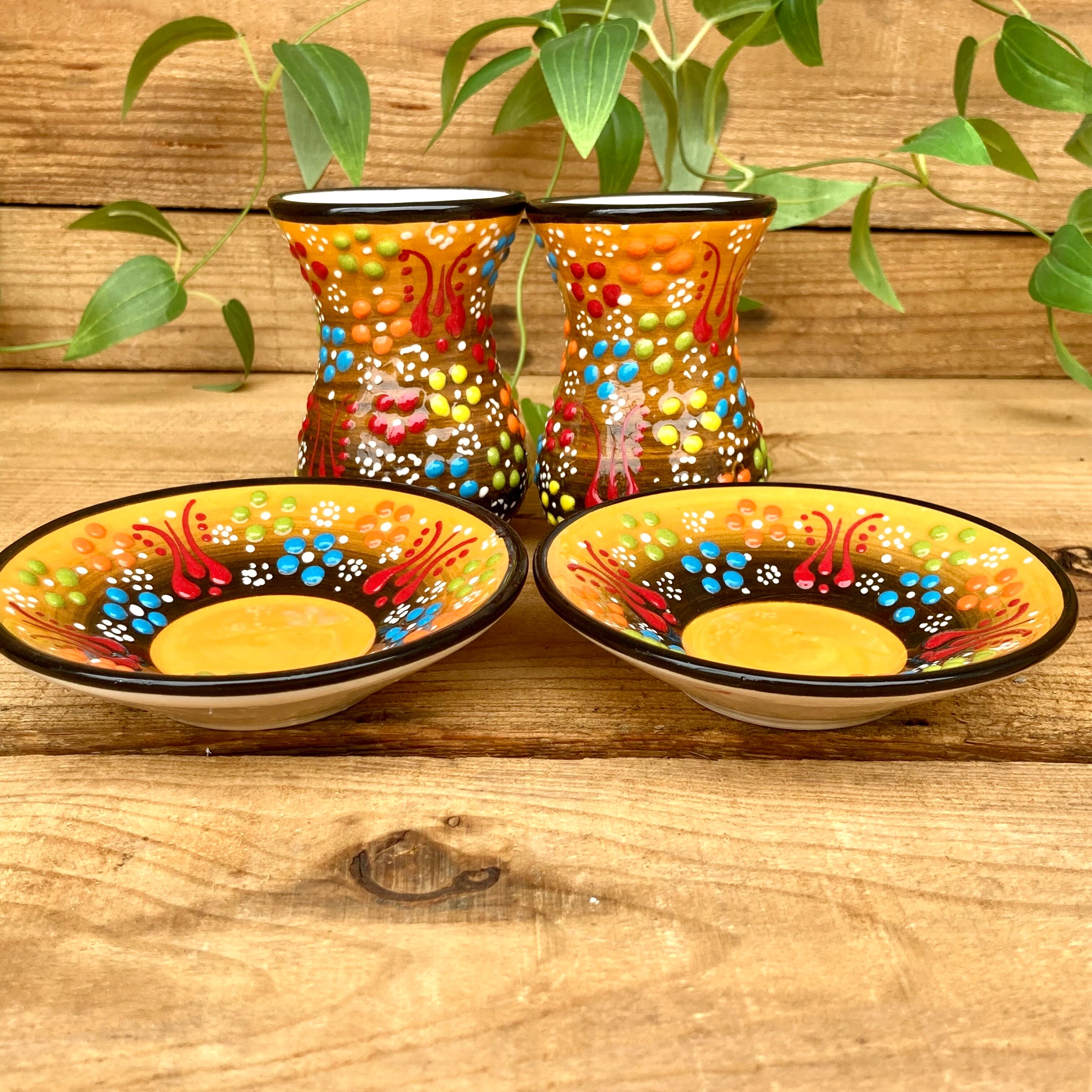 2個セット【トルコ陶器】手描き チャイグラス*オレンジ*キュタフヤ陶器