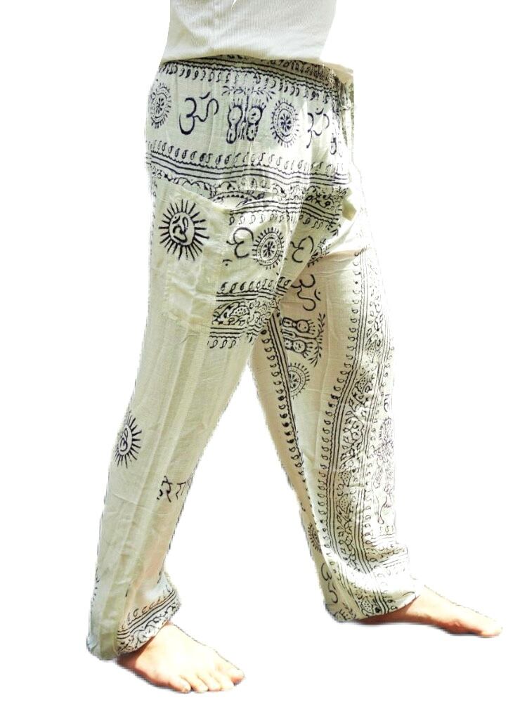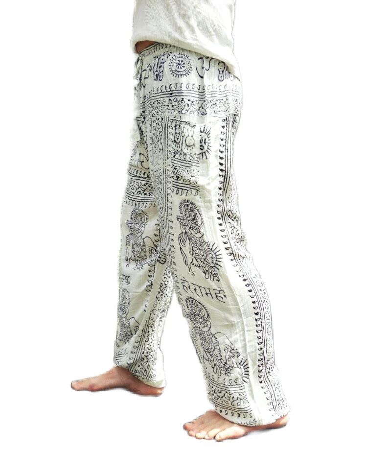 【ネパール】男女兼用 ガーゼ布 ラムナミ (神様布) ボトムス ポケットパンツ フリーサイズ