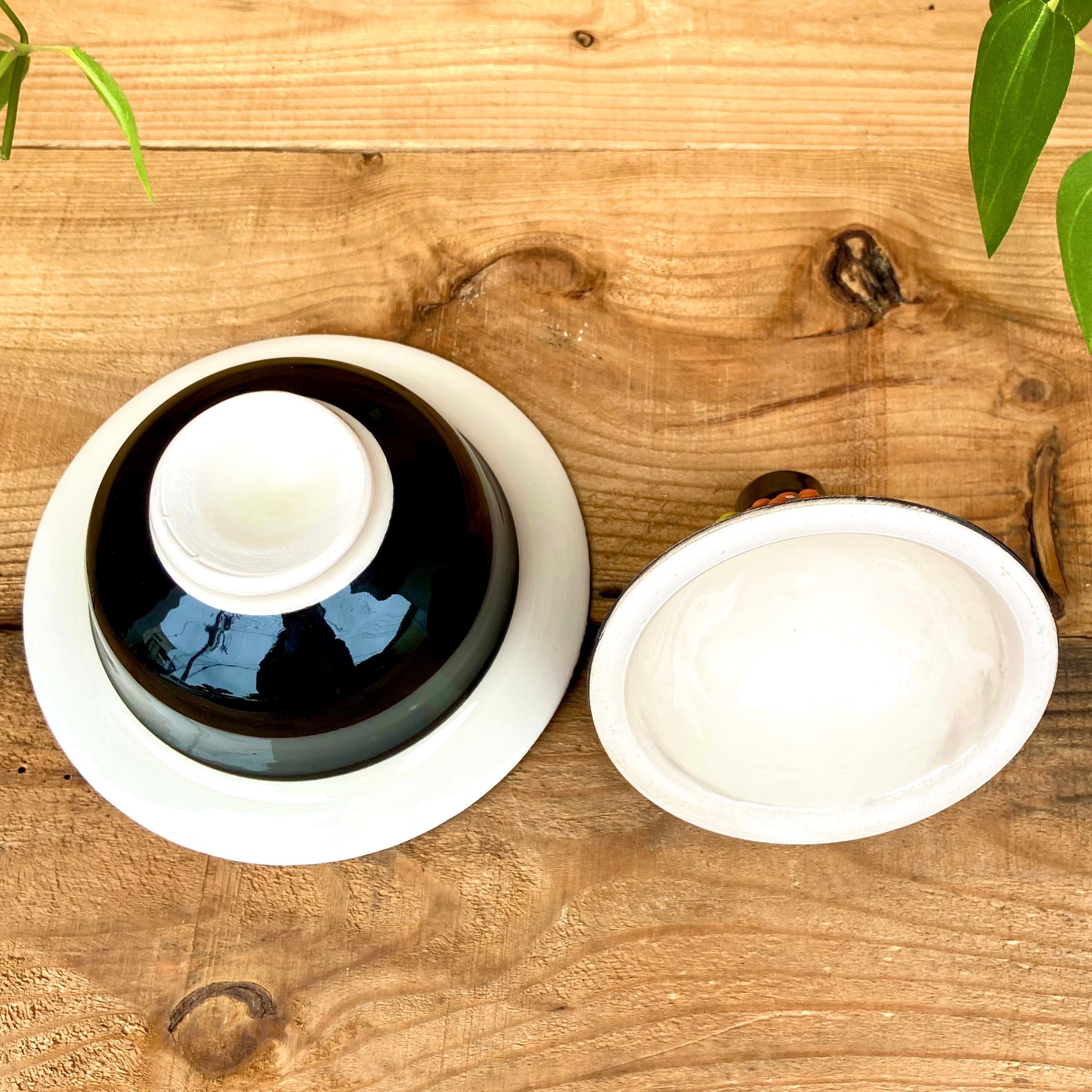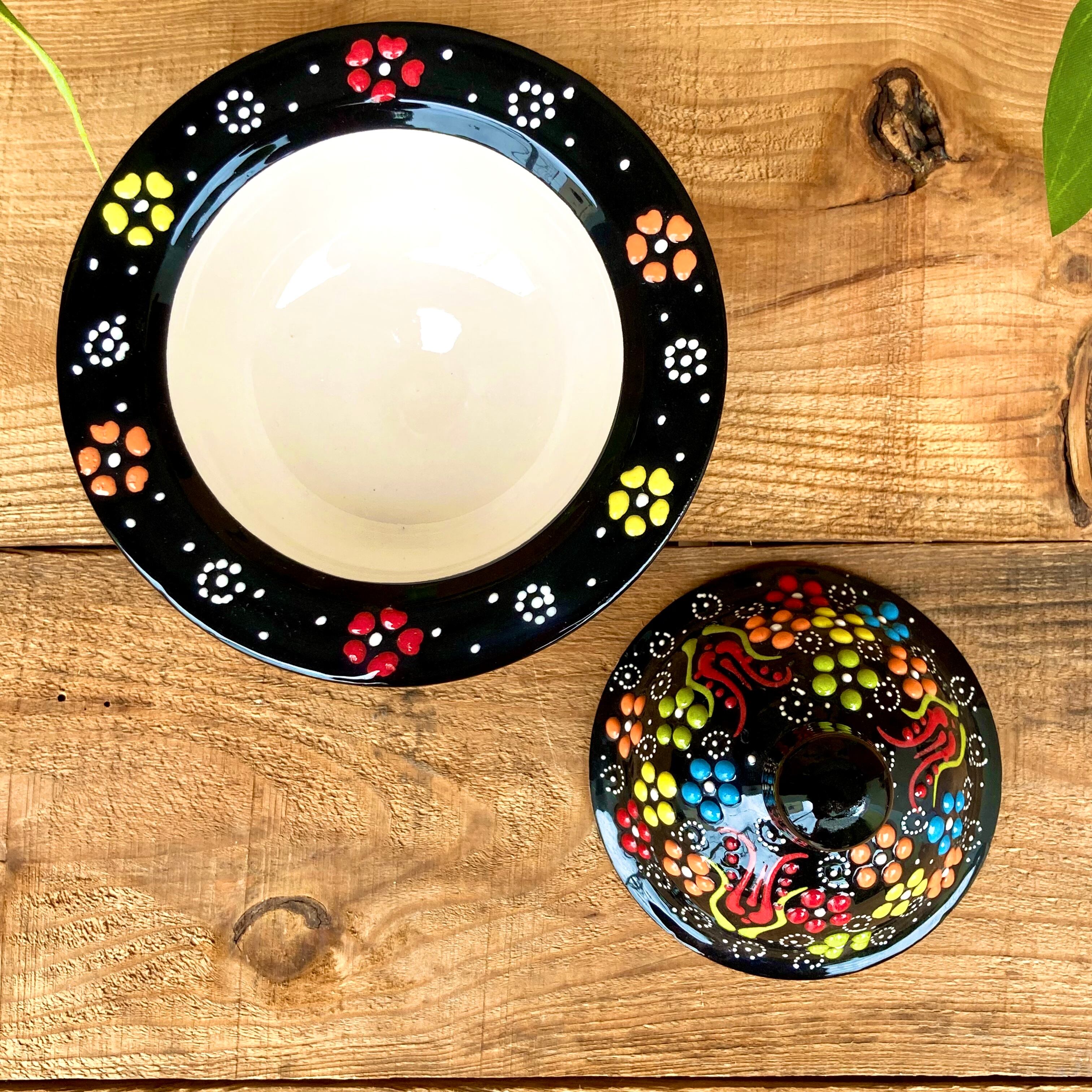 【トルコ陶器】手描き シュガーポット 小物入れ*ブラック*キュタフヤ陶器