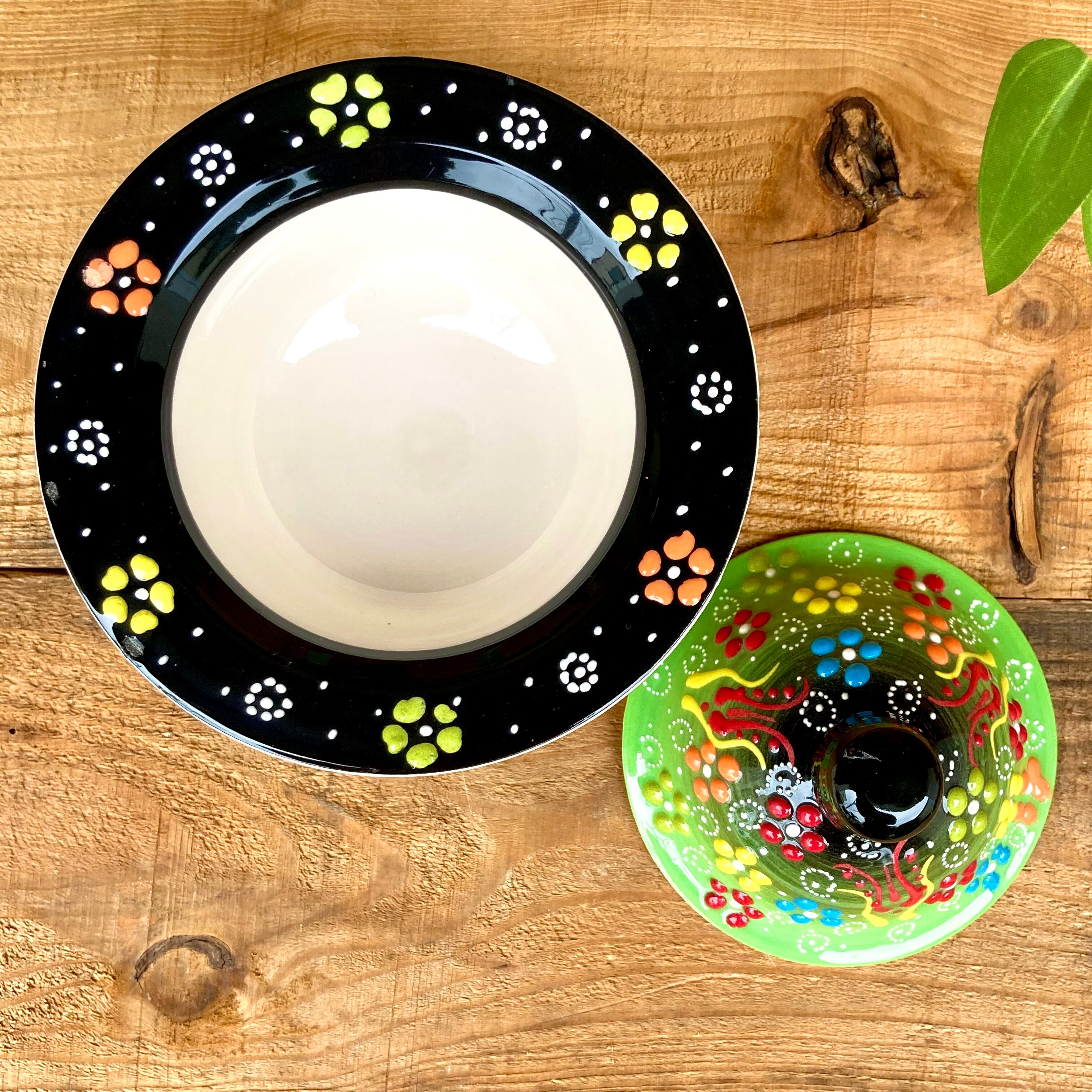 【トルコ陶器】手描き シュガーポット 小物入れ*ブラック*キュタフヤ陶器