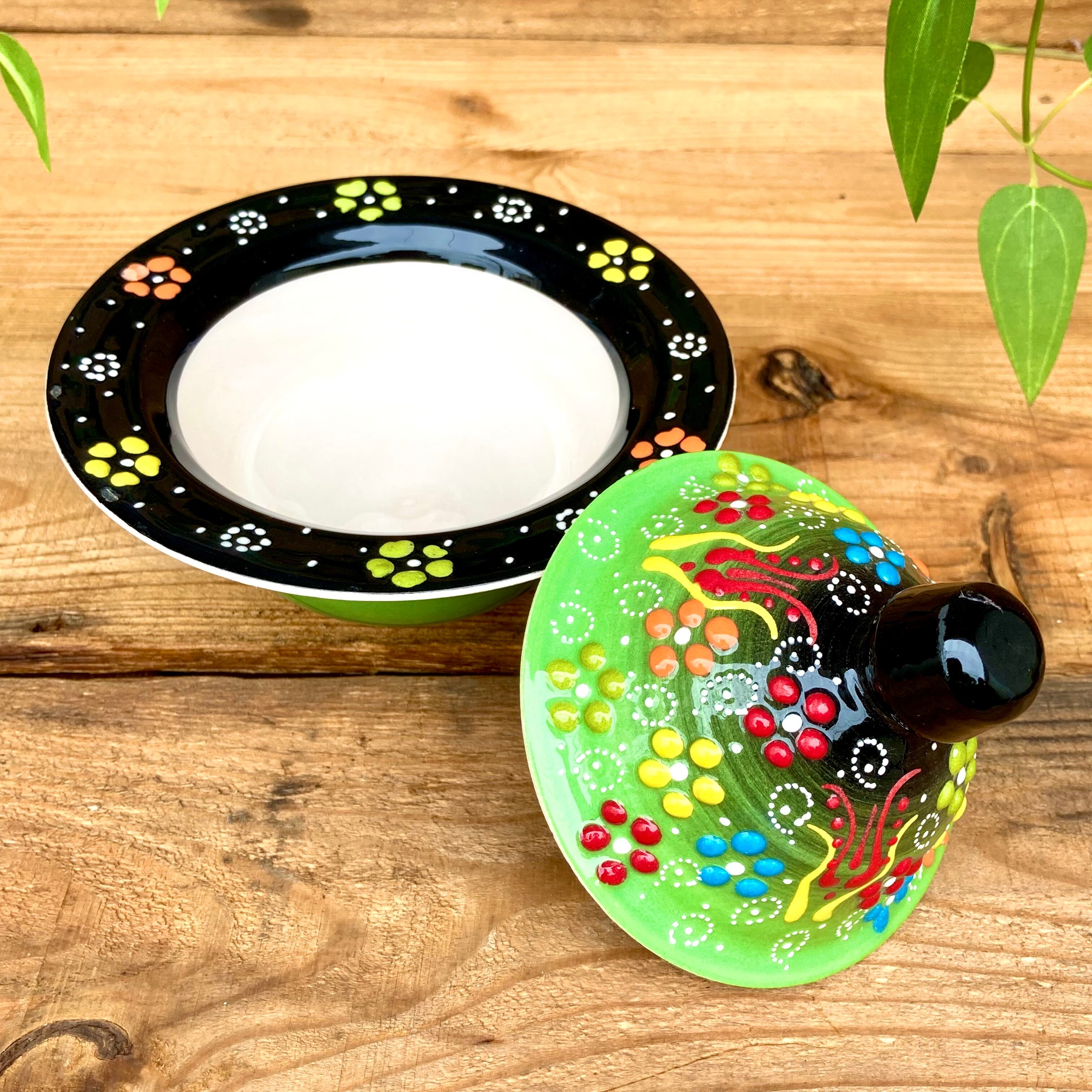 トルコの職人が1点1点絵付けしたカラフルなトルコセラミック陶器のシュガーポットです。