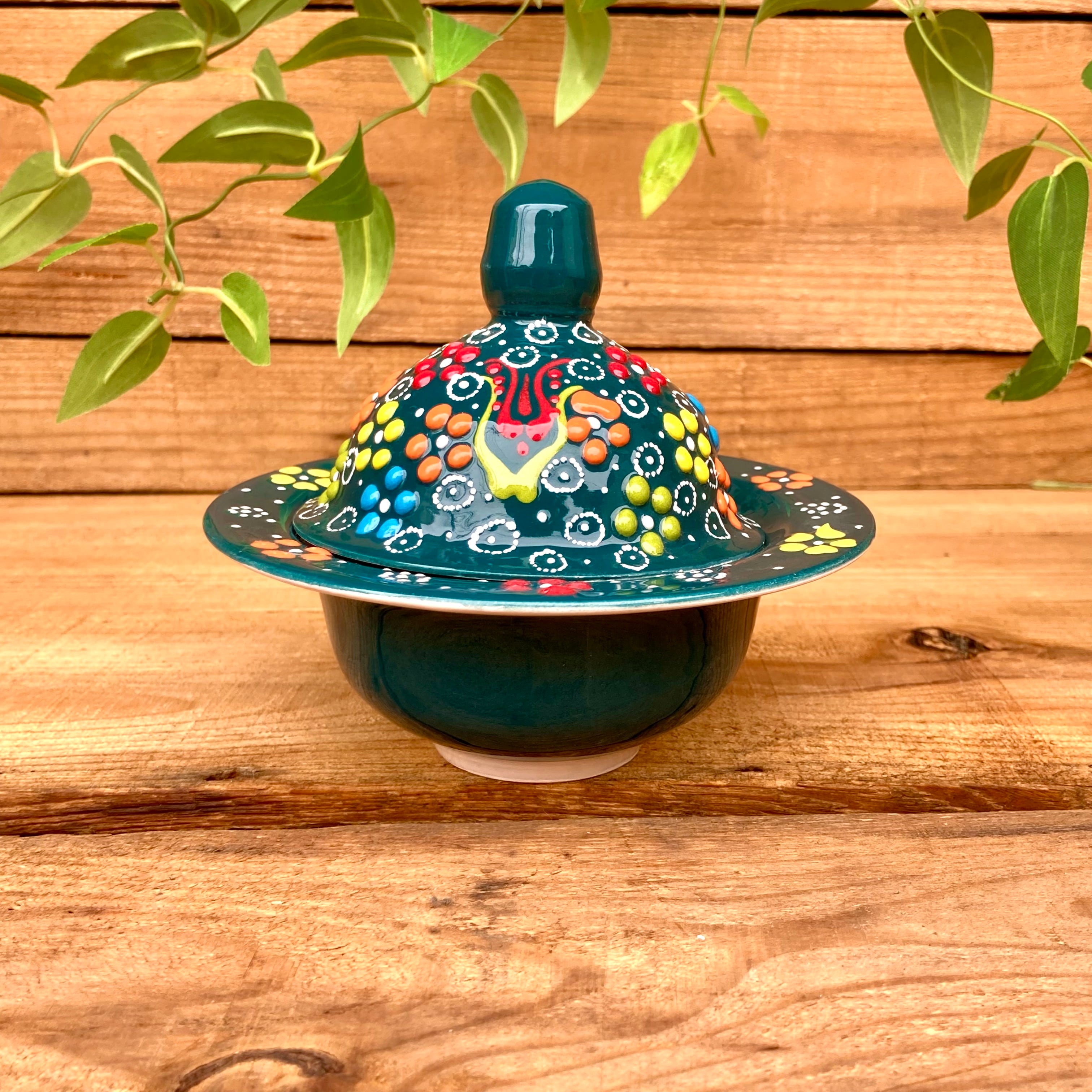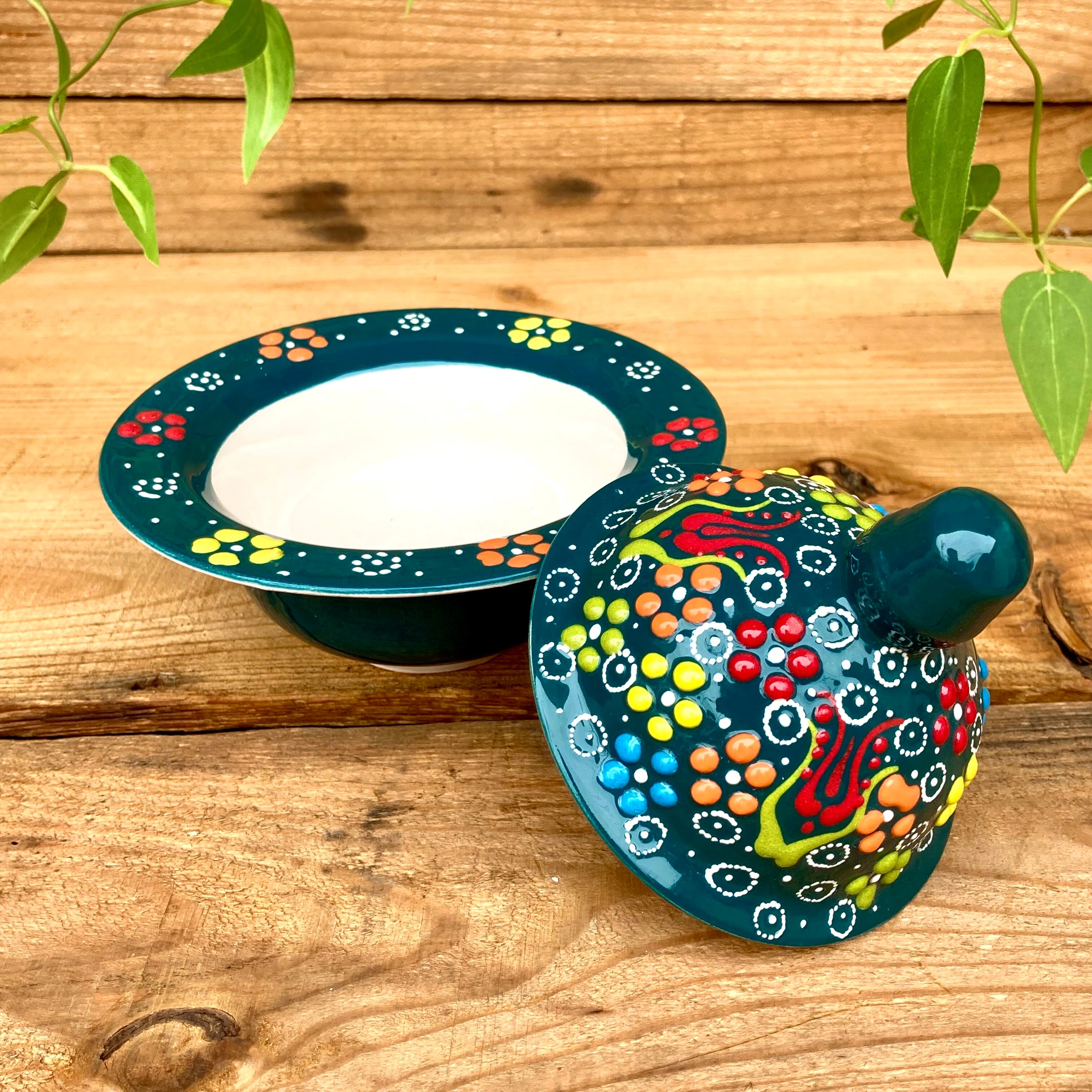 トルコの職人が1点1点絵付けしたカラフルなトルコセラミック陶器のシュガーポットです。