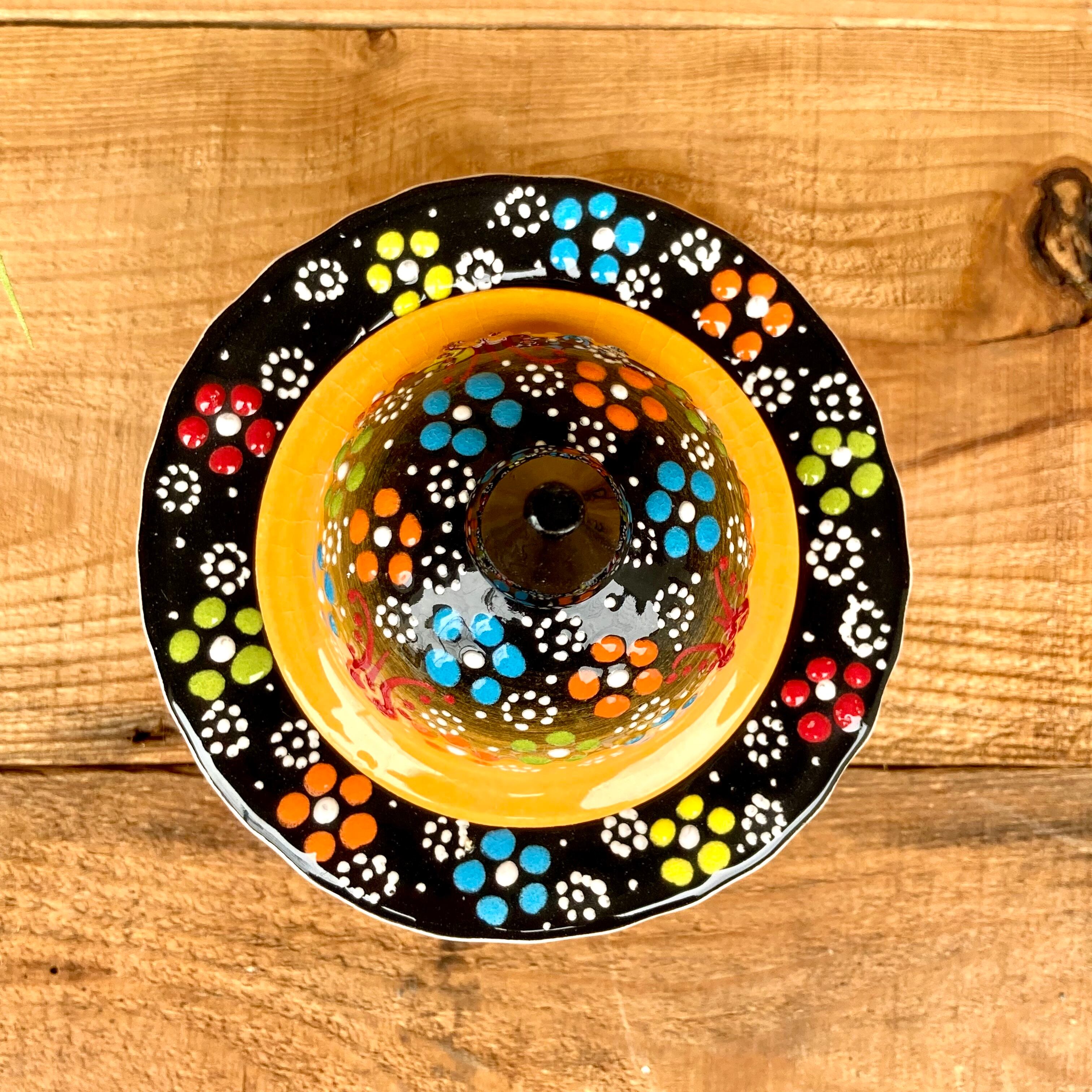 トルコの職人が1点1点絵付けしたカラフルなトルコセラミック陶器のシュガーポットです。