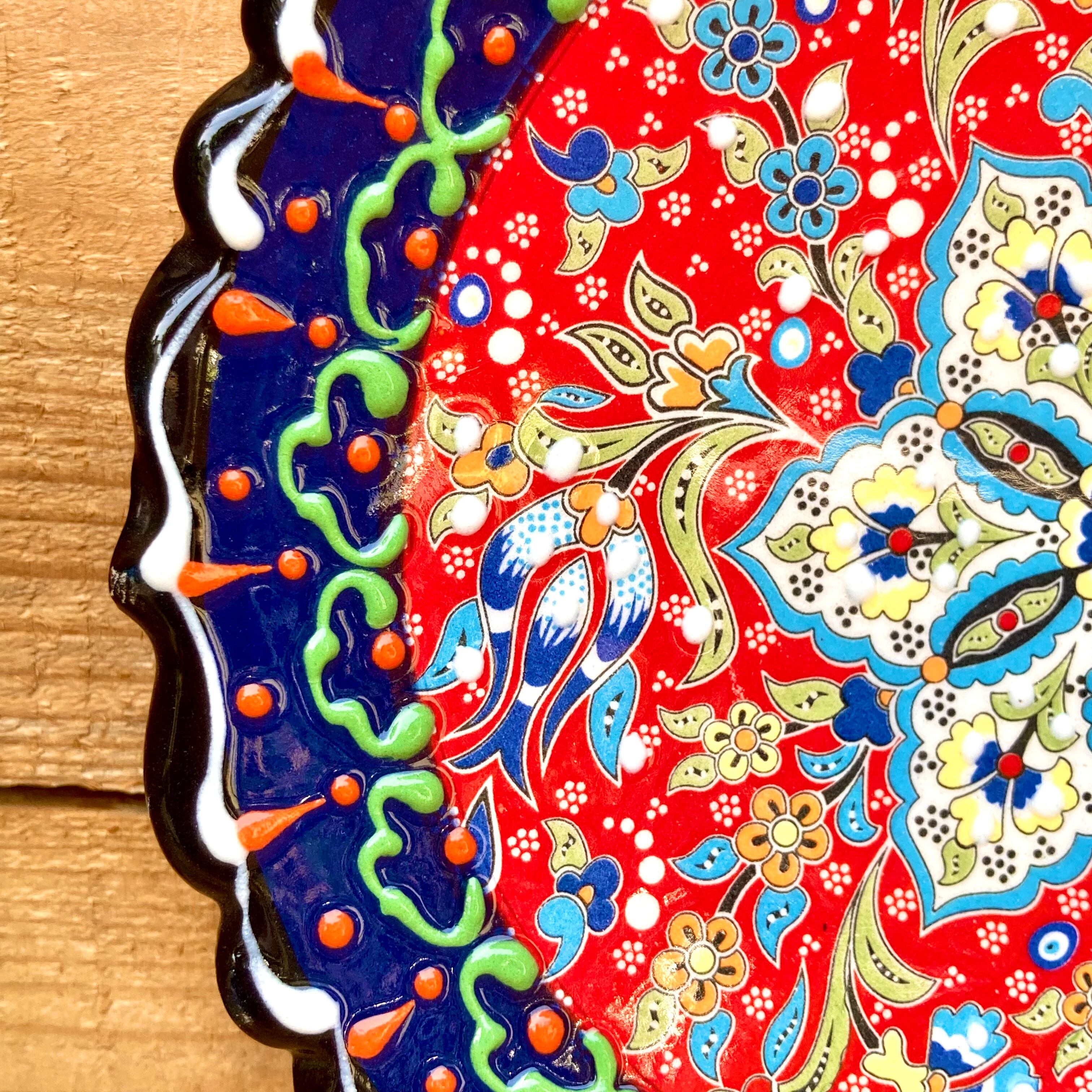 トルコの職人が1点1点絵付けしたカラフルなトルコセラミック陶器のお皿です