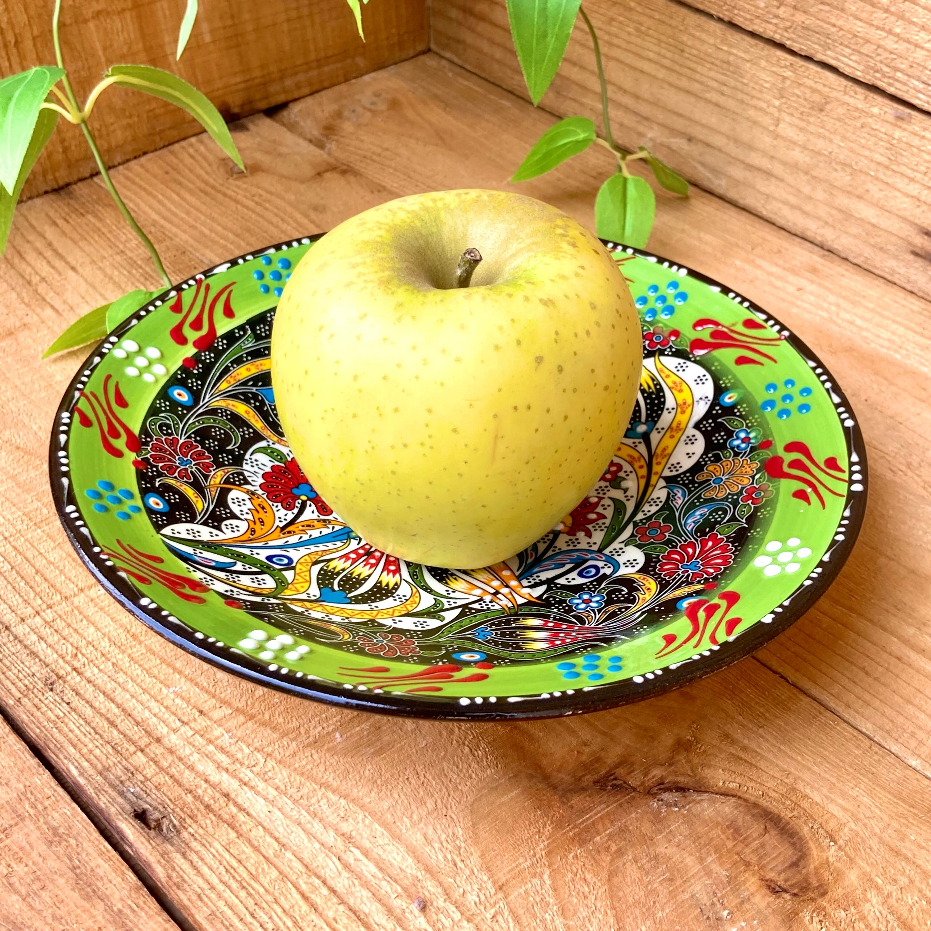 19cm【トルコ陶器】手描き 中皿 壁掛け *ライトグリーン*キュタフヤ陶器