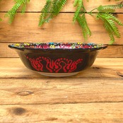 22cm【トルコ陶器】手描き ボウル 皿 *ブラック*キュタフヤ陶器