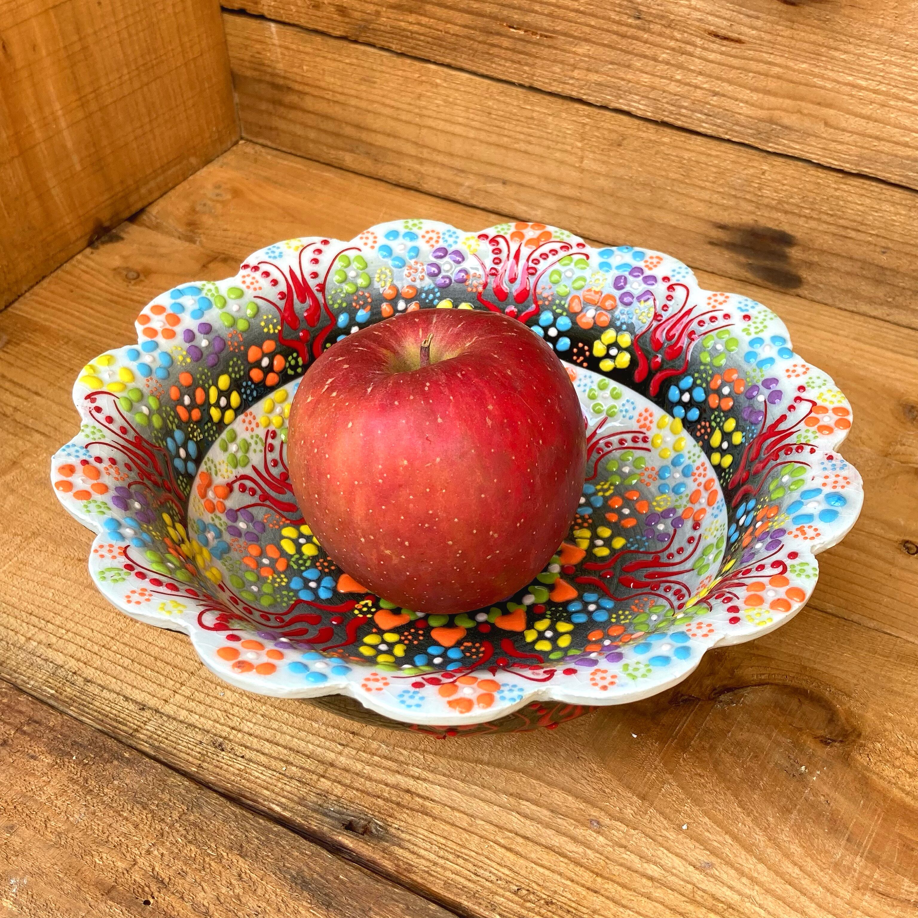 トルコの職人が1点1点絵付けしたカラフルなトルコセラミック陶器のボウル皿です