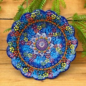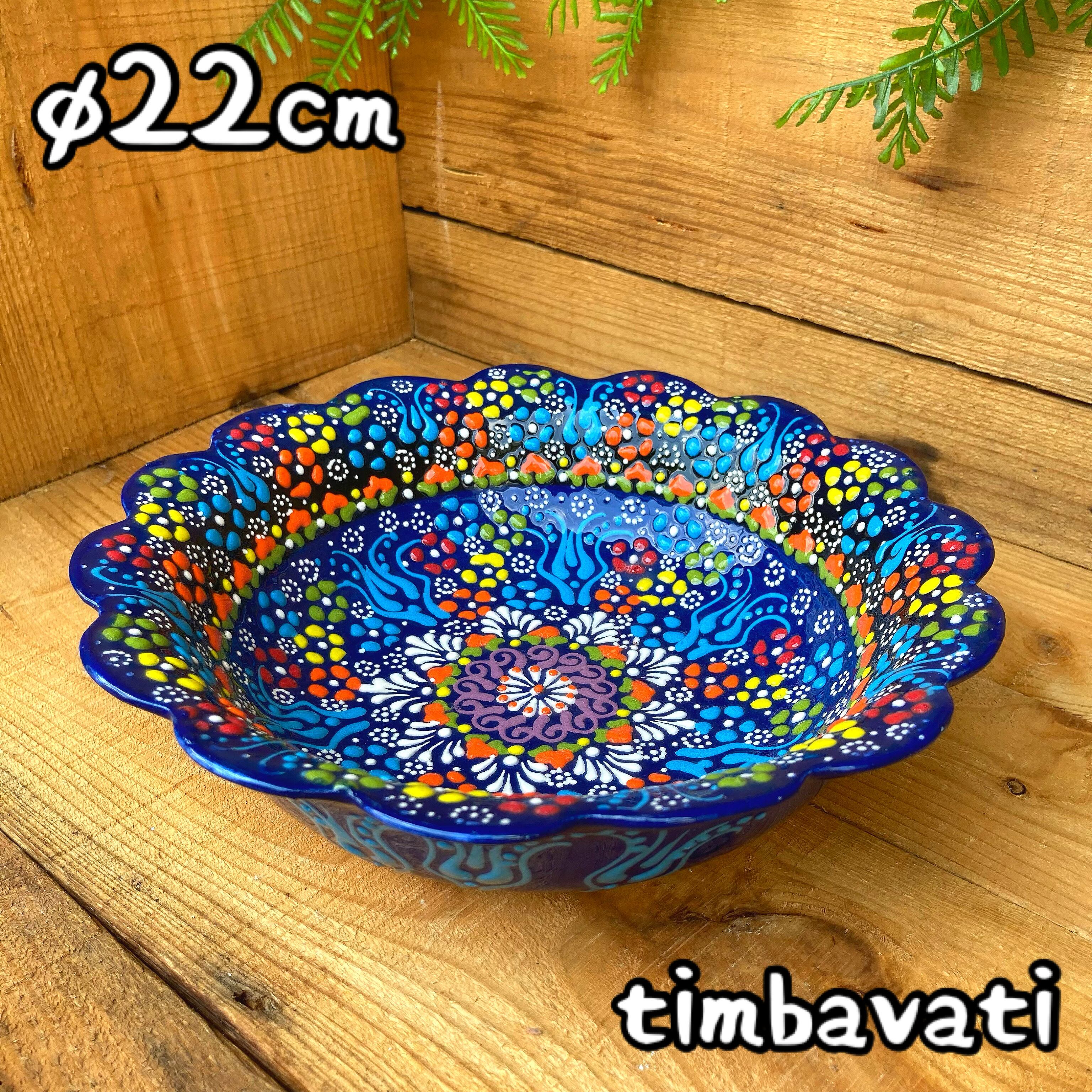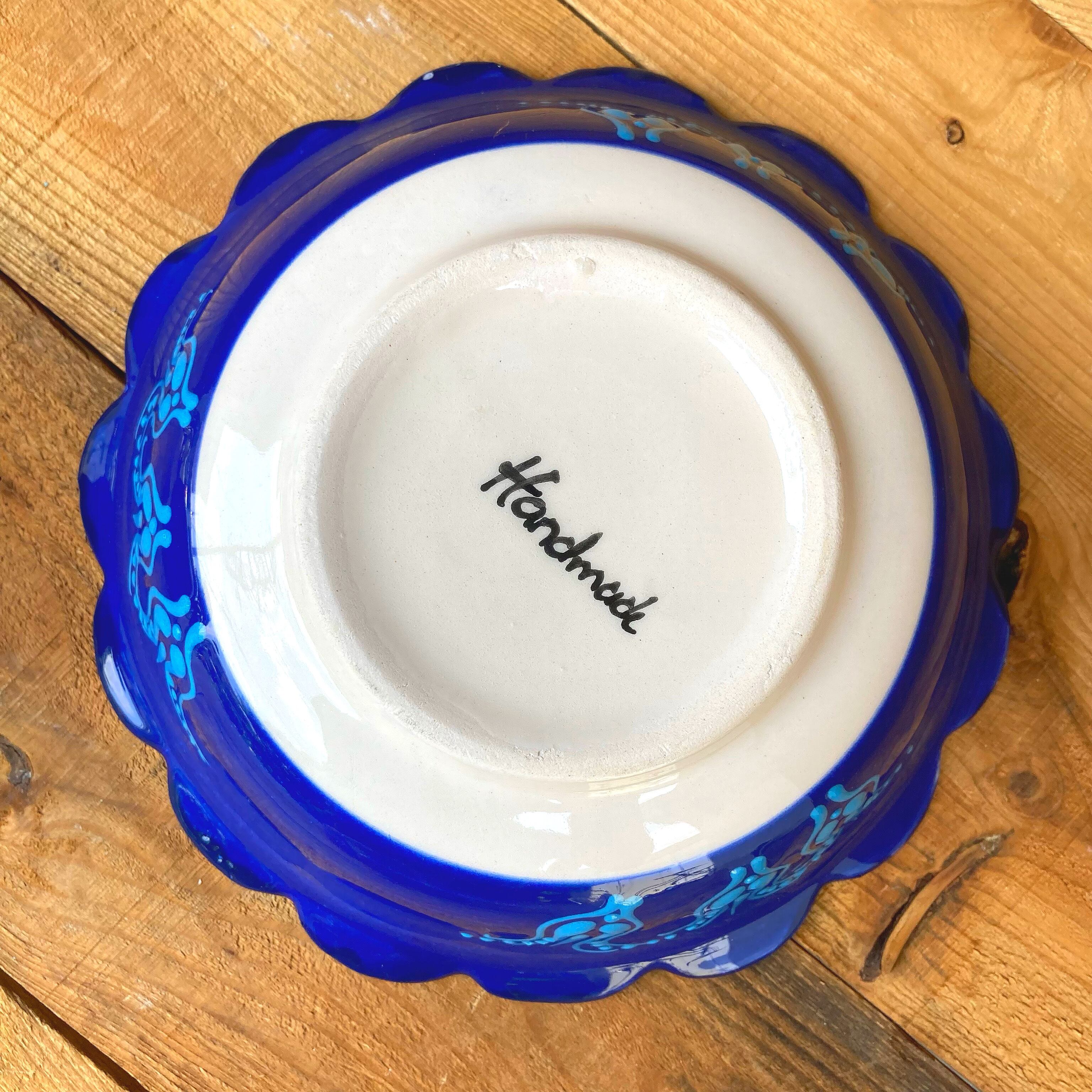 22cm【トルコ陶器】手描き ボウル 皿 *ネイビー*キュタフヤ陶器