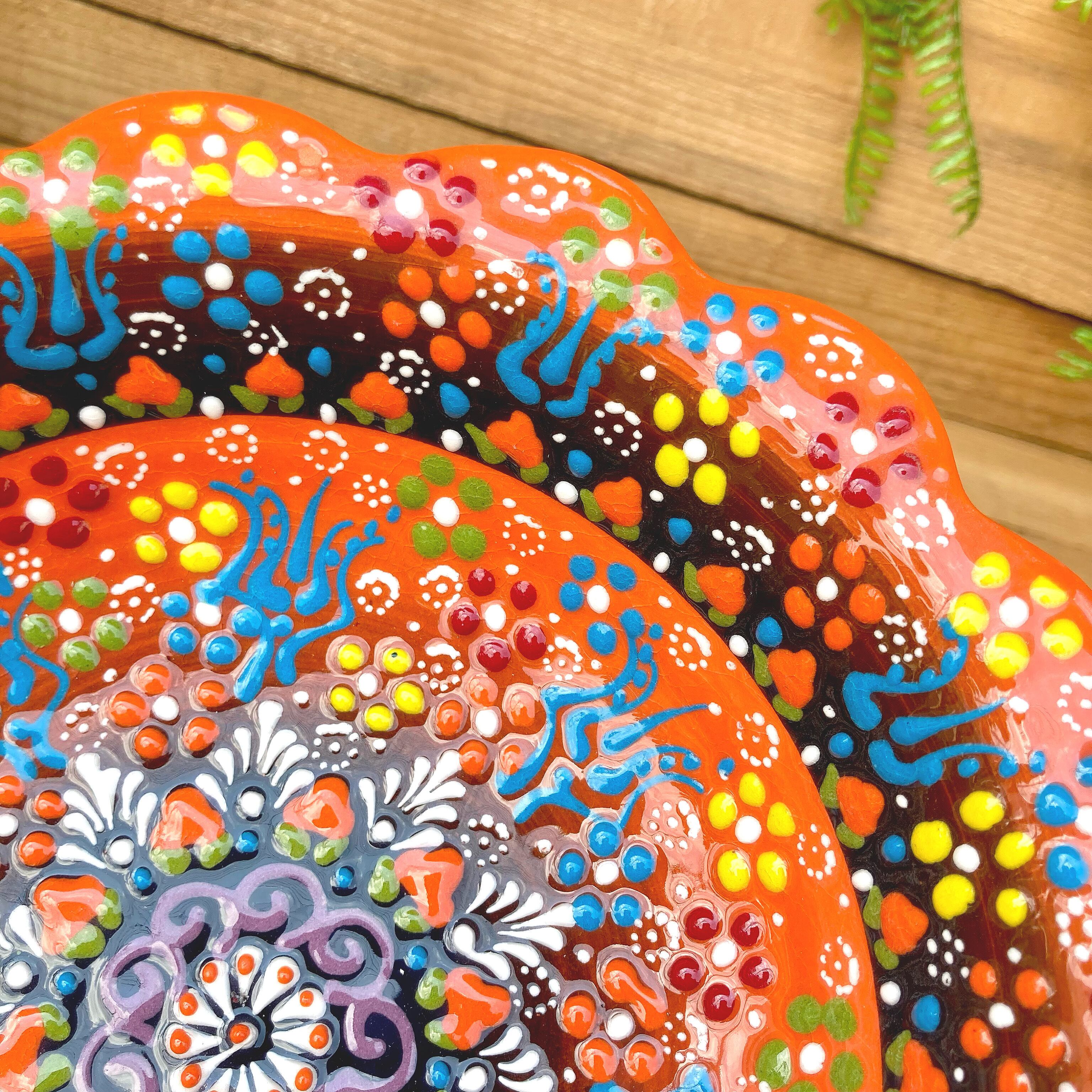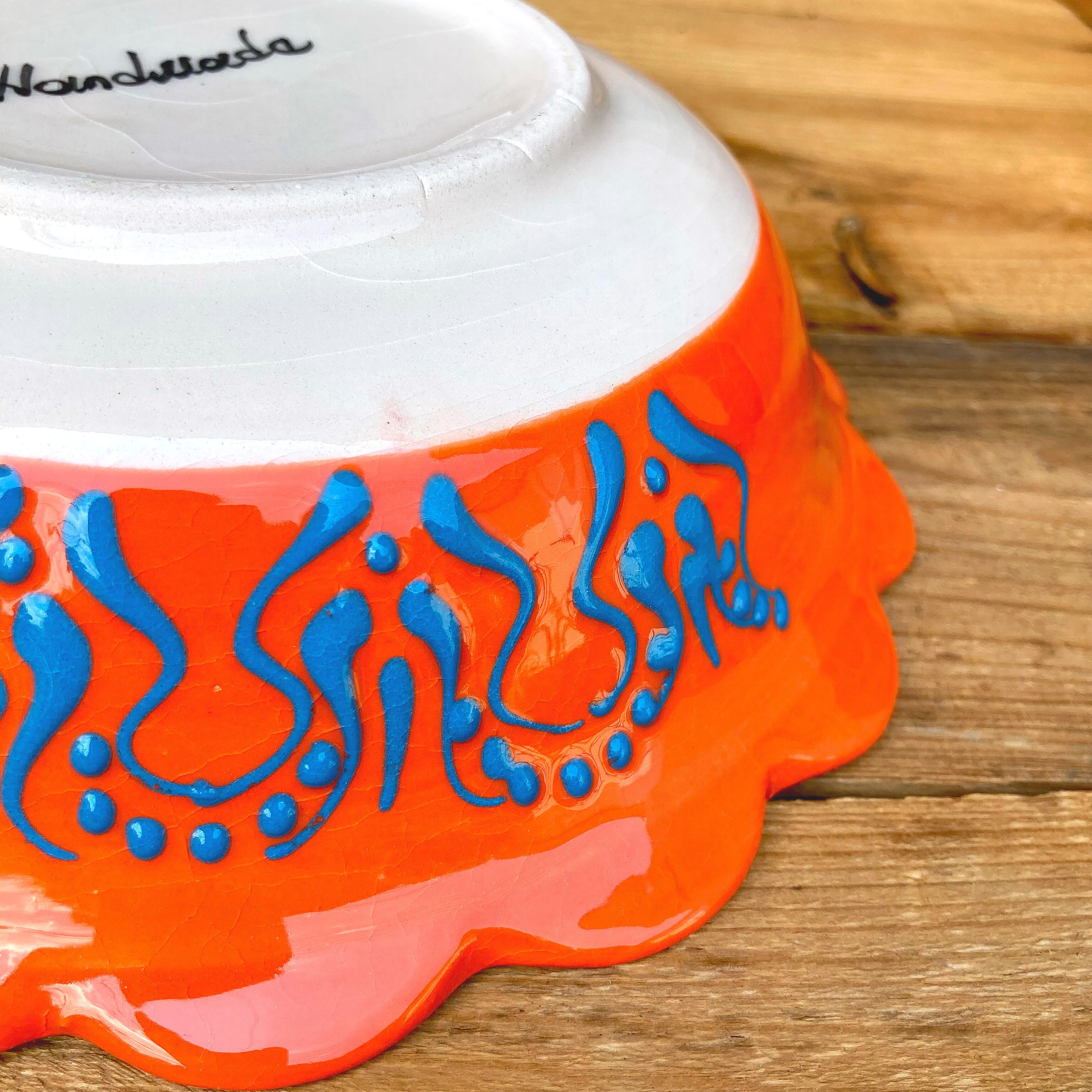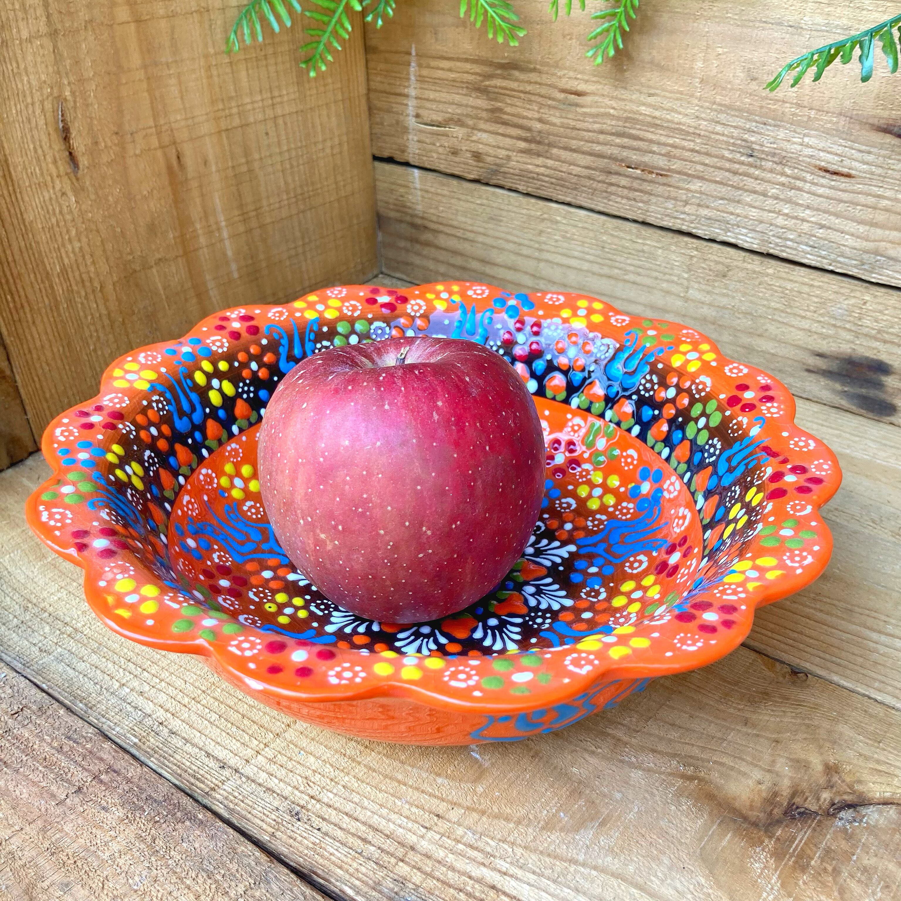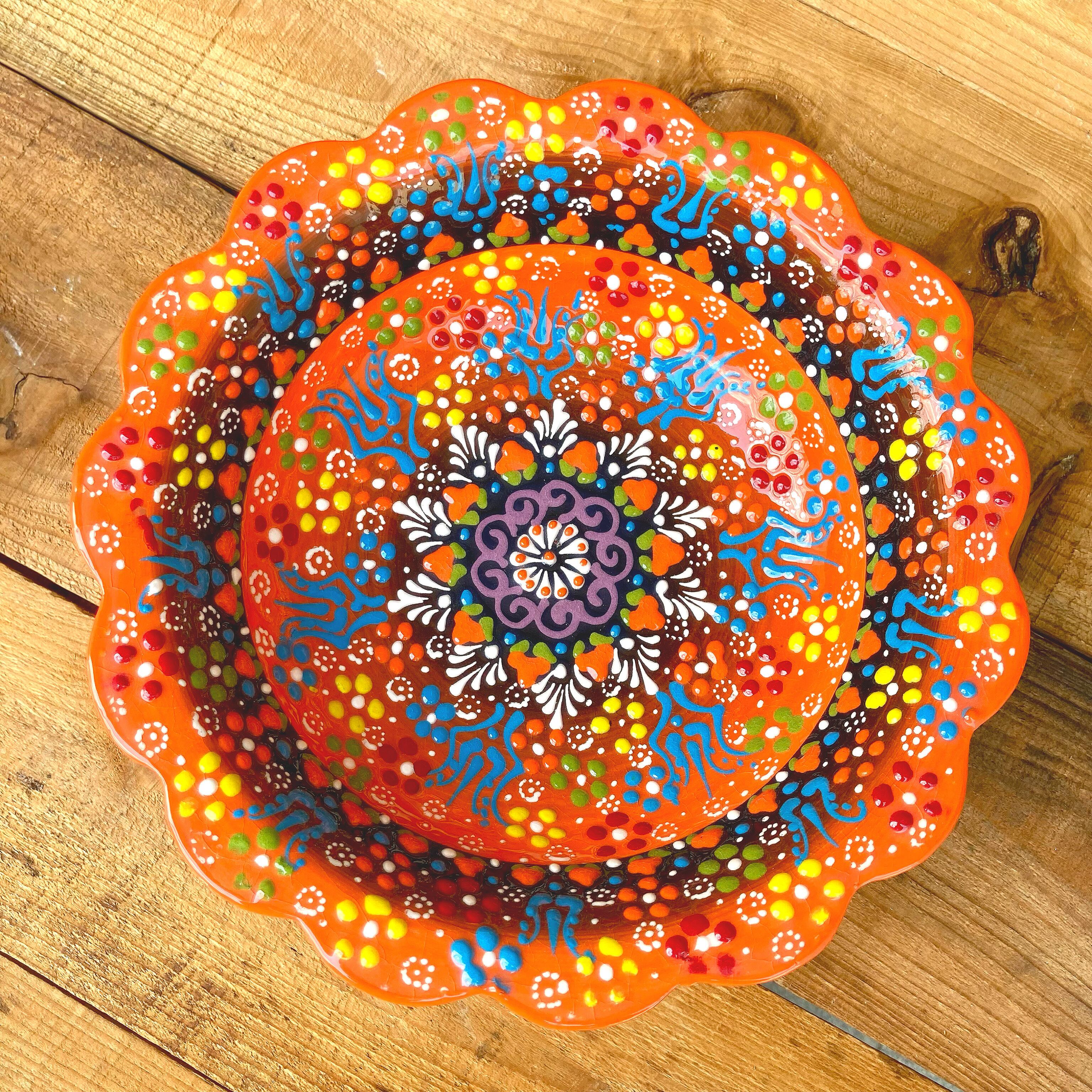 22cm【トルコ陶器】手描き ボウル 皿 *オレンジ*キュタフヤ陶器