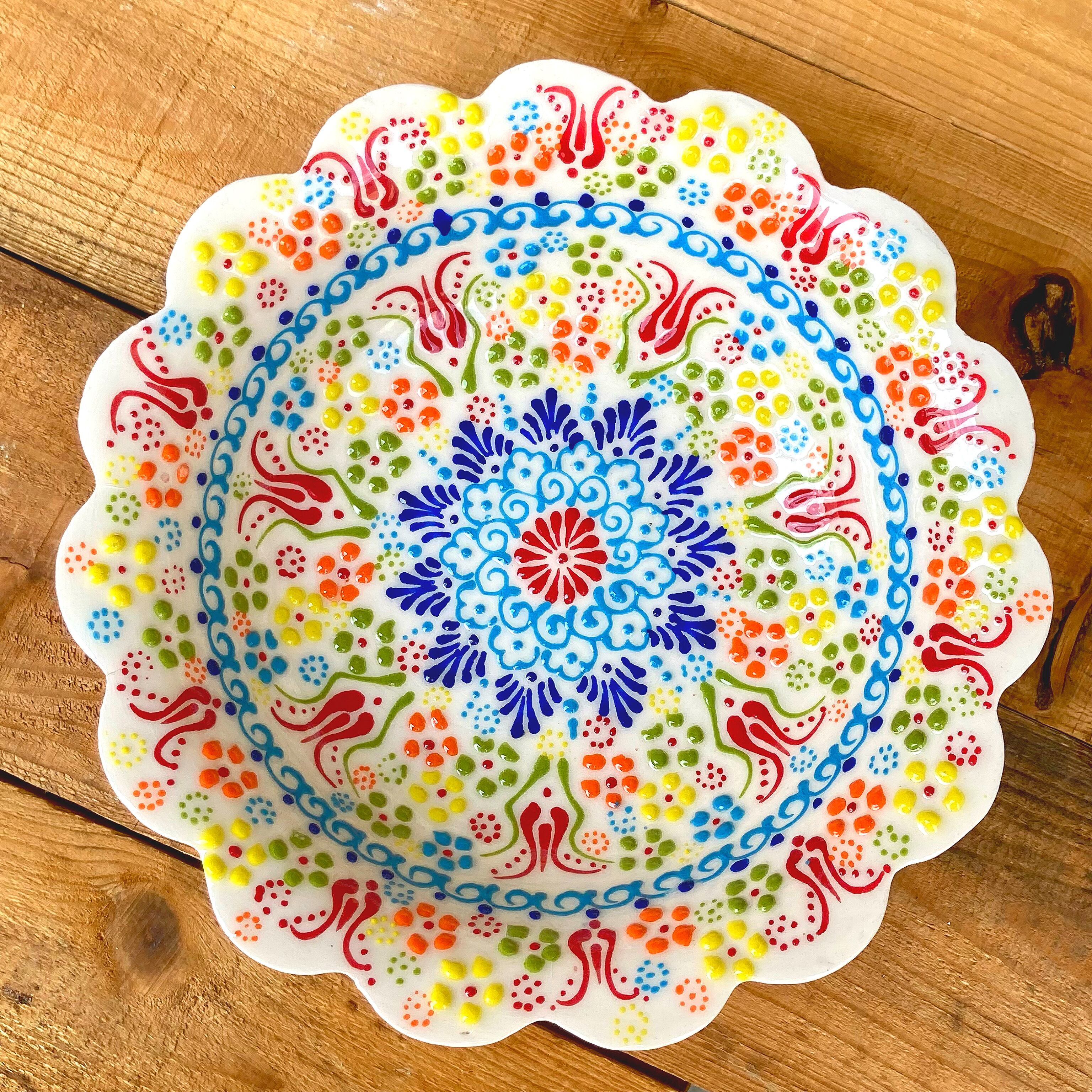 トルコの職人が1点1点絵付けしたカラフルなトルコセラミック陶器のボウル皿です