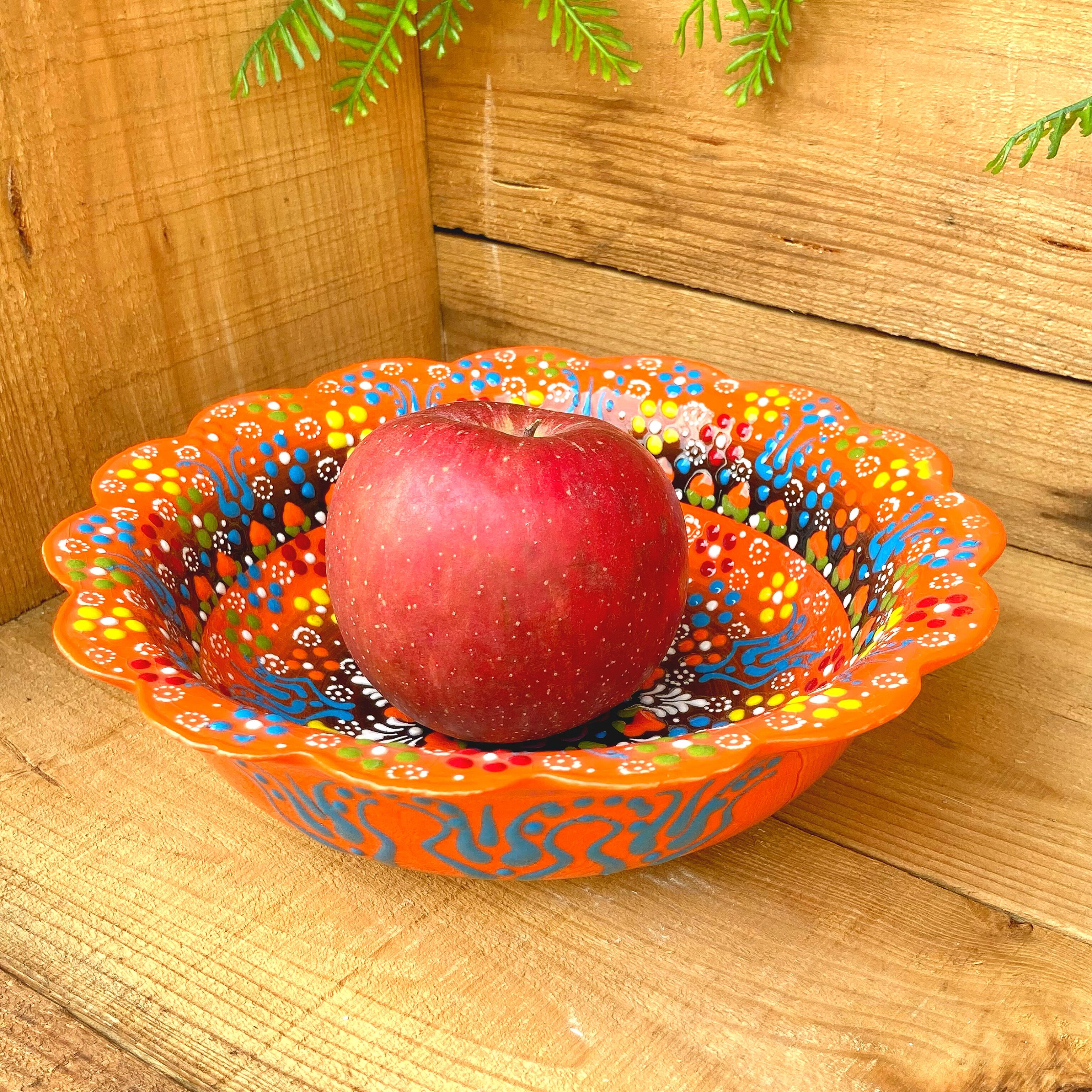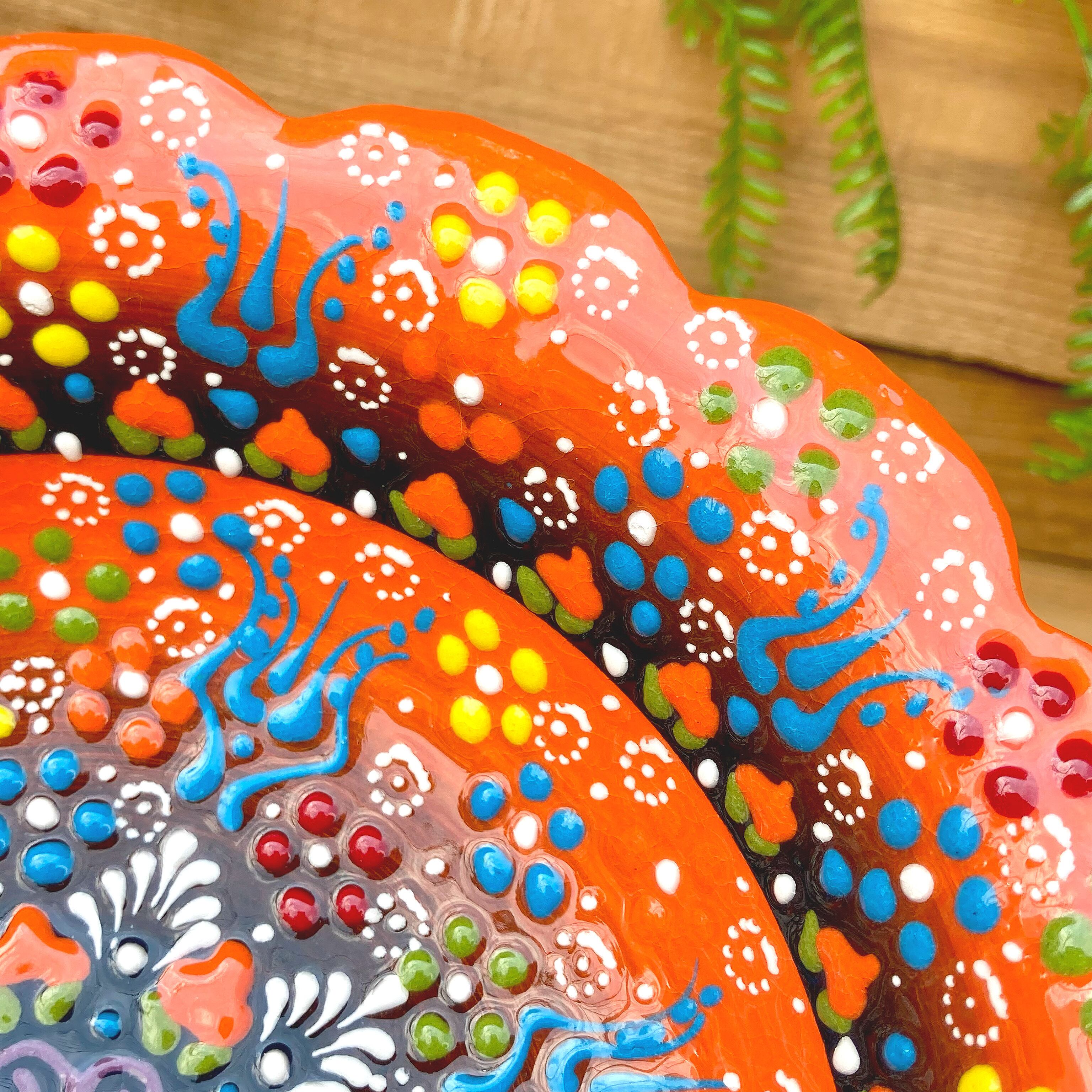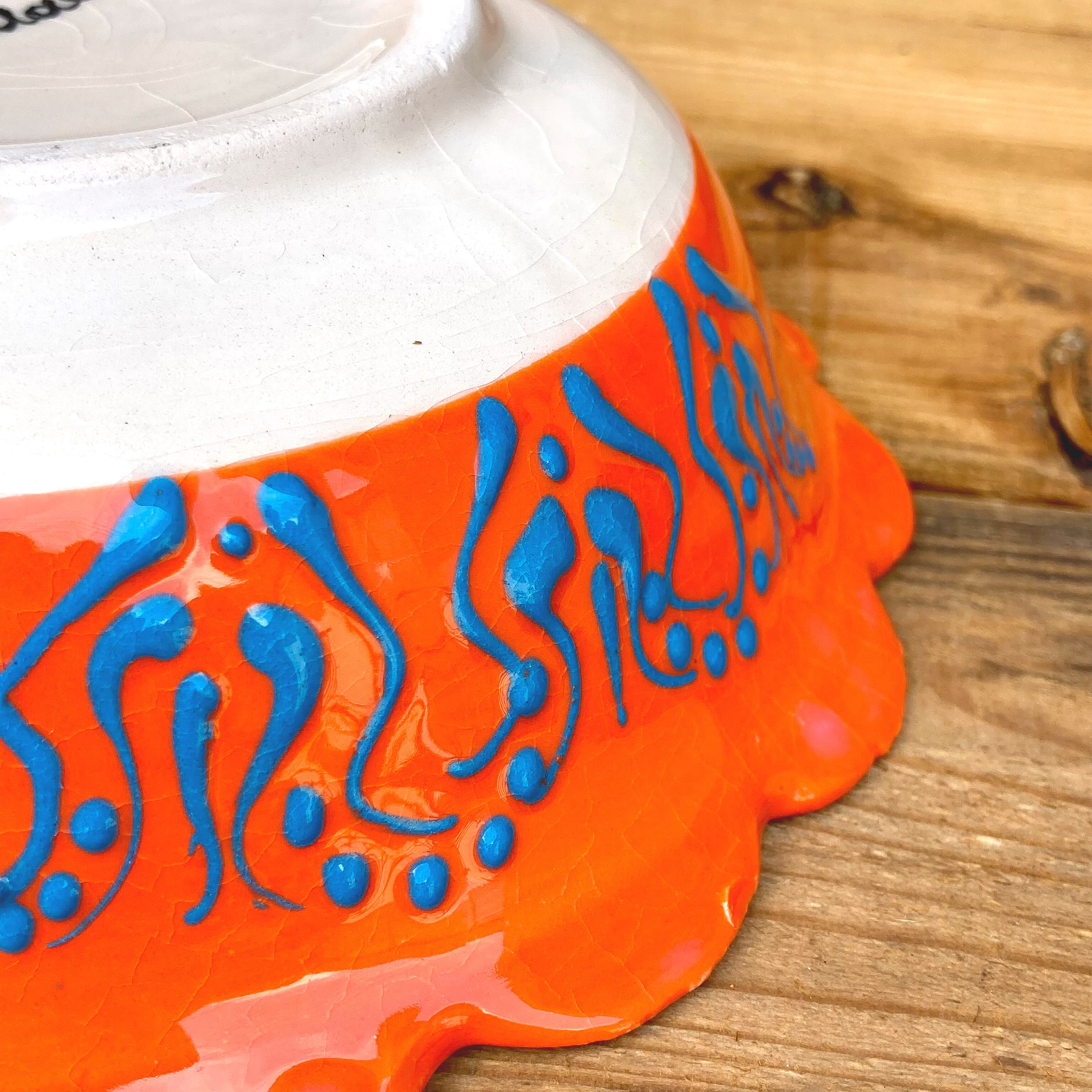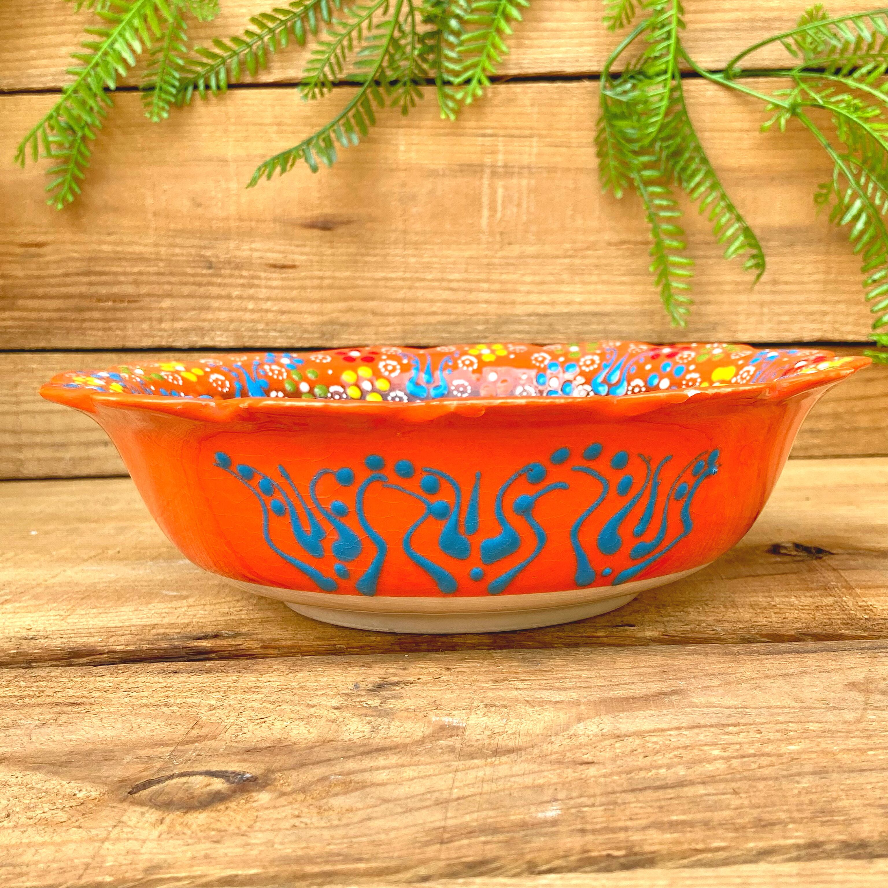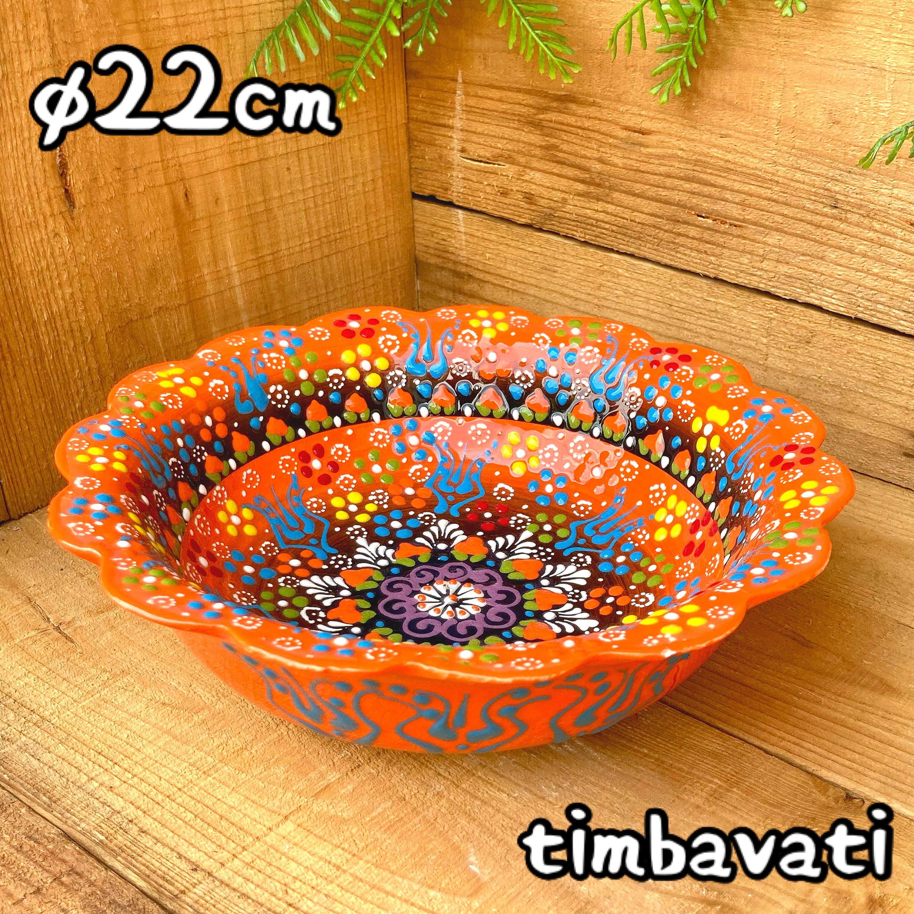 22cm【トルコ陶器】手描き ボウル 皿 *オレンジ*キュタフヤ陶器