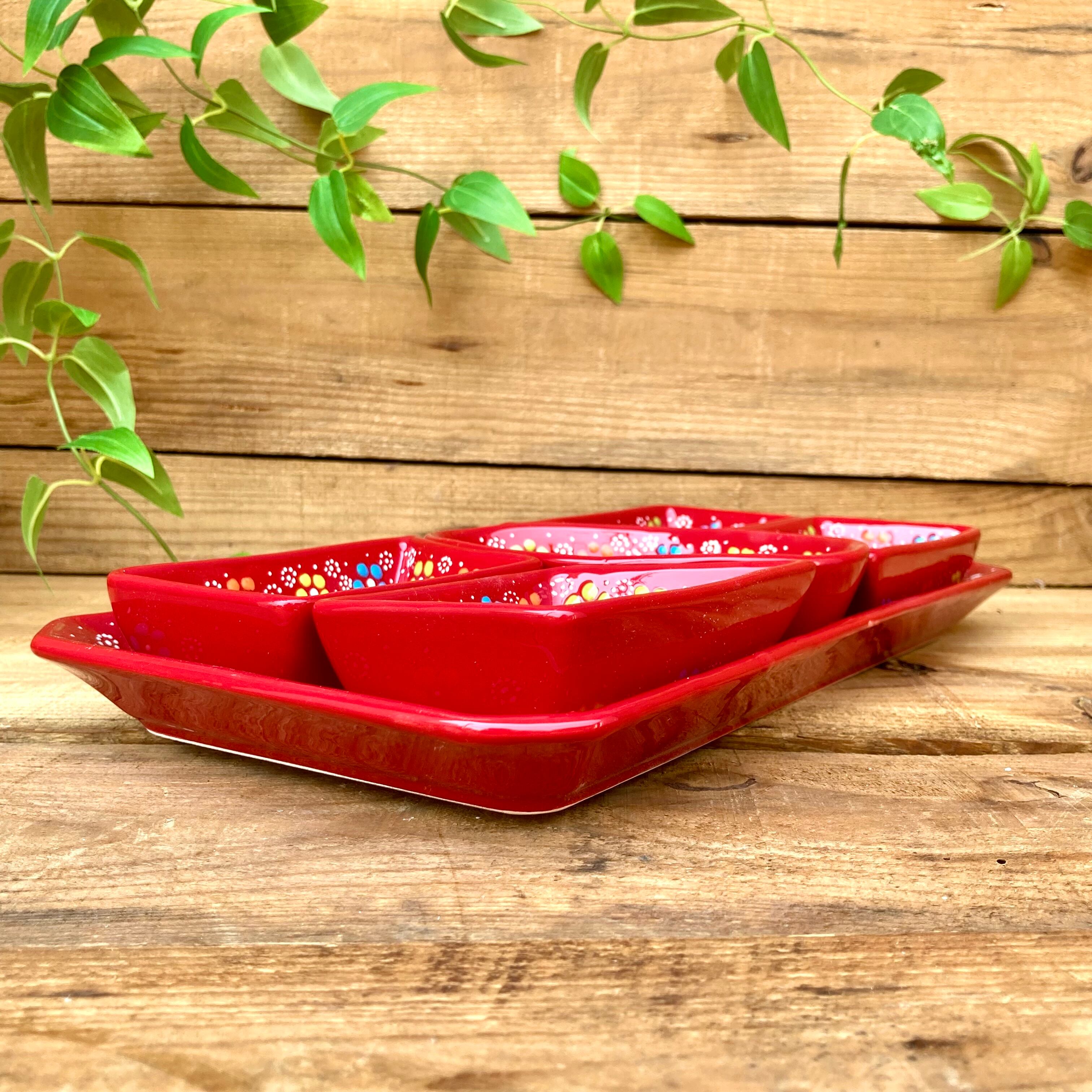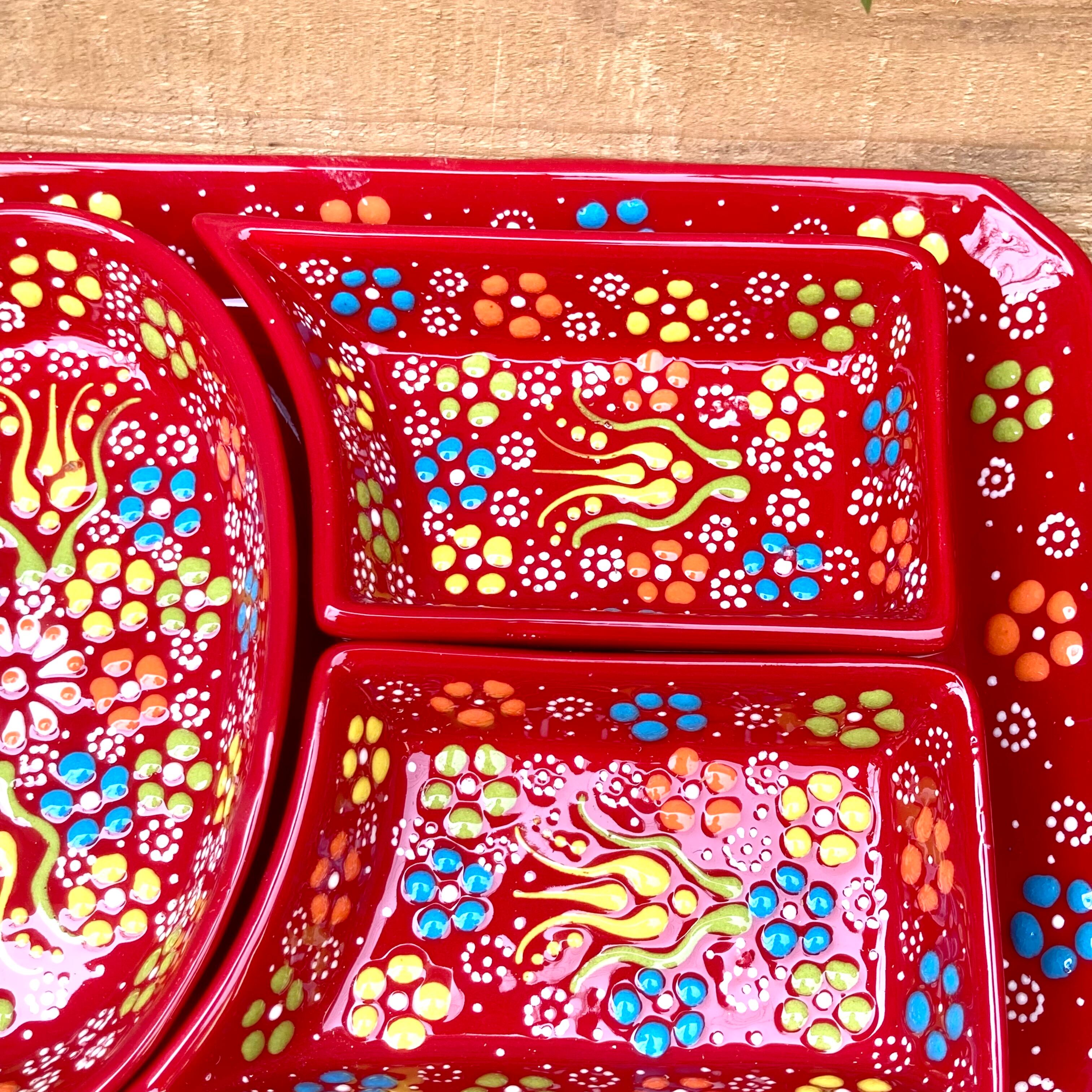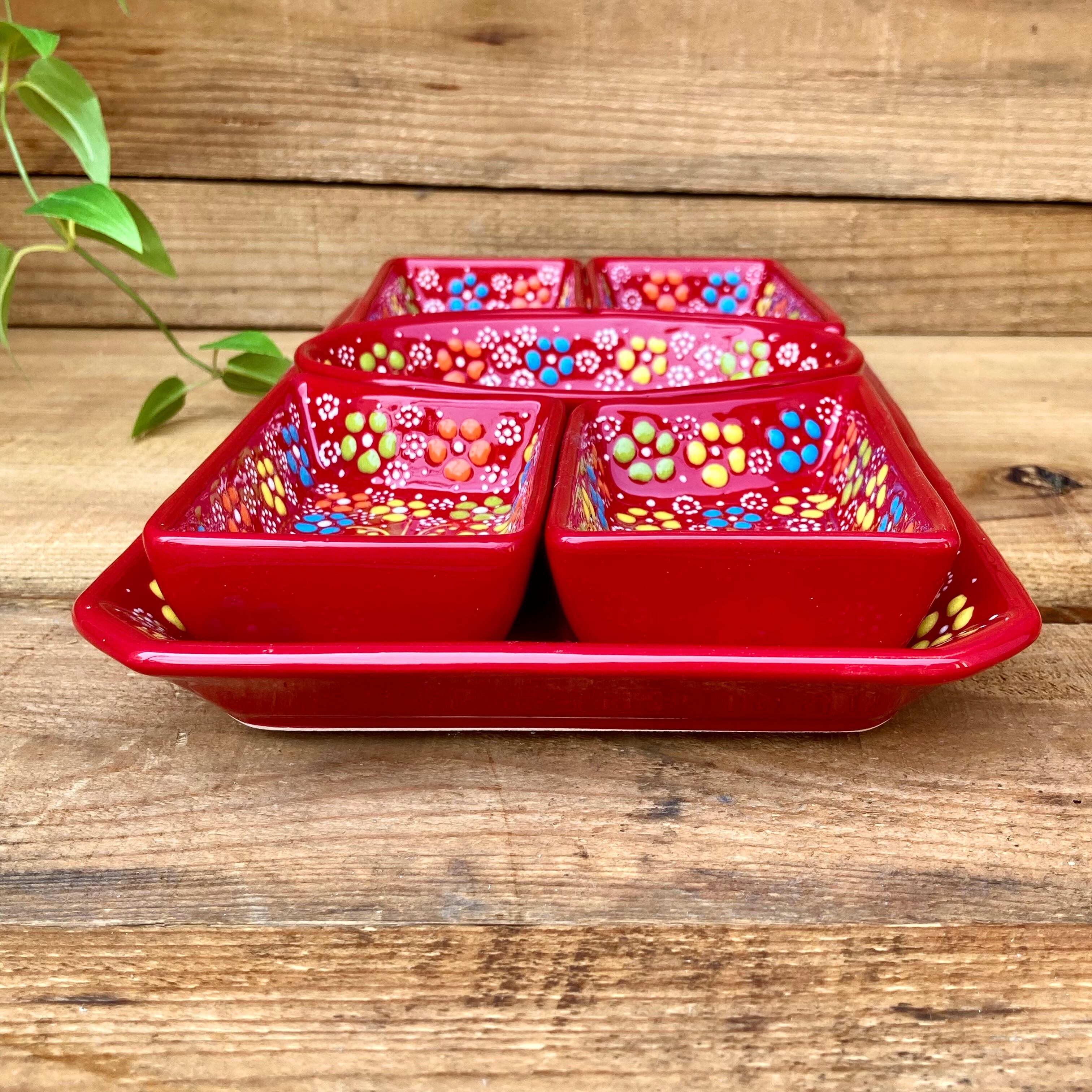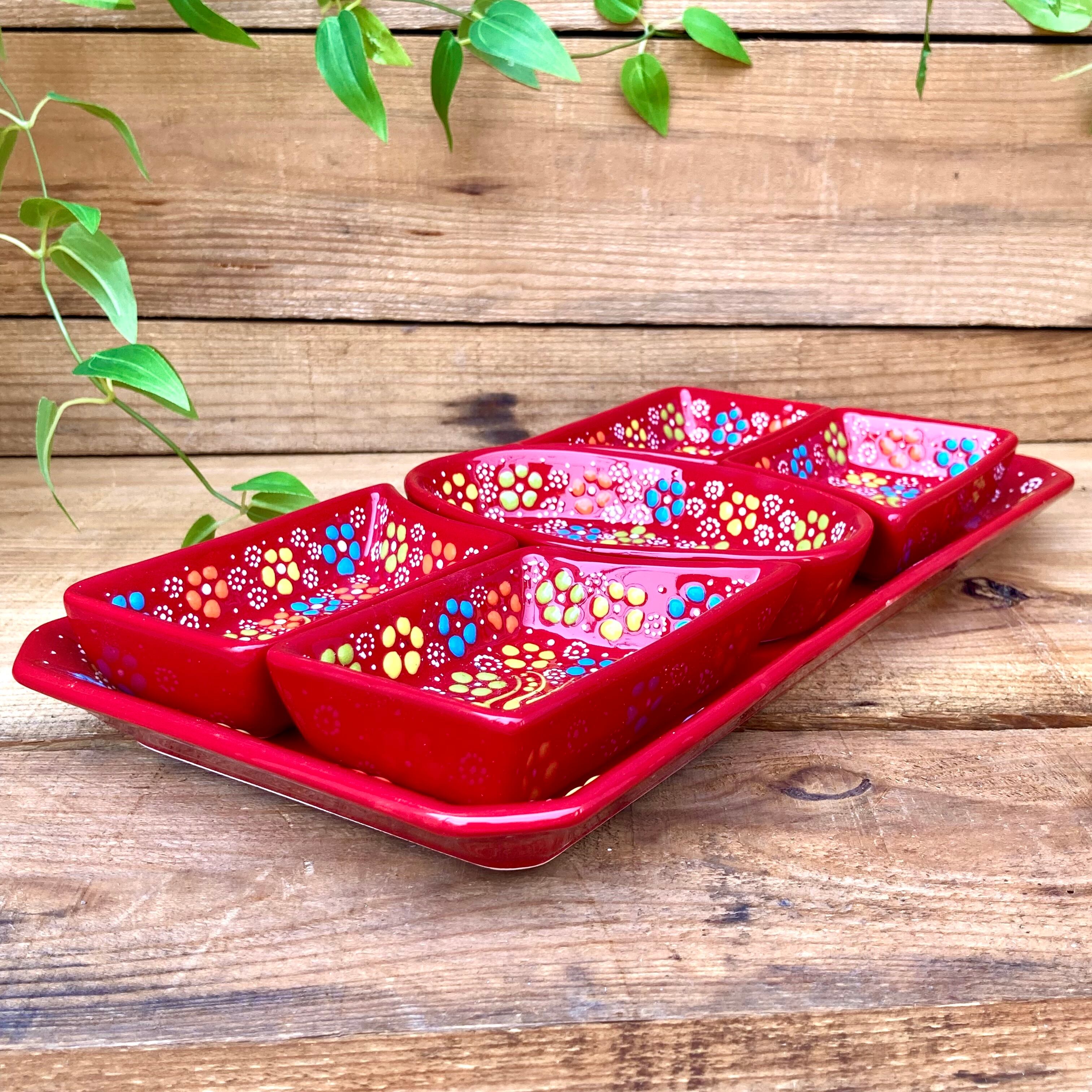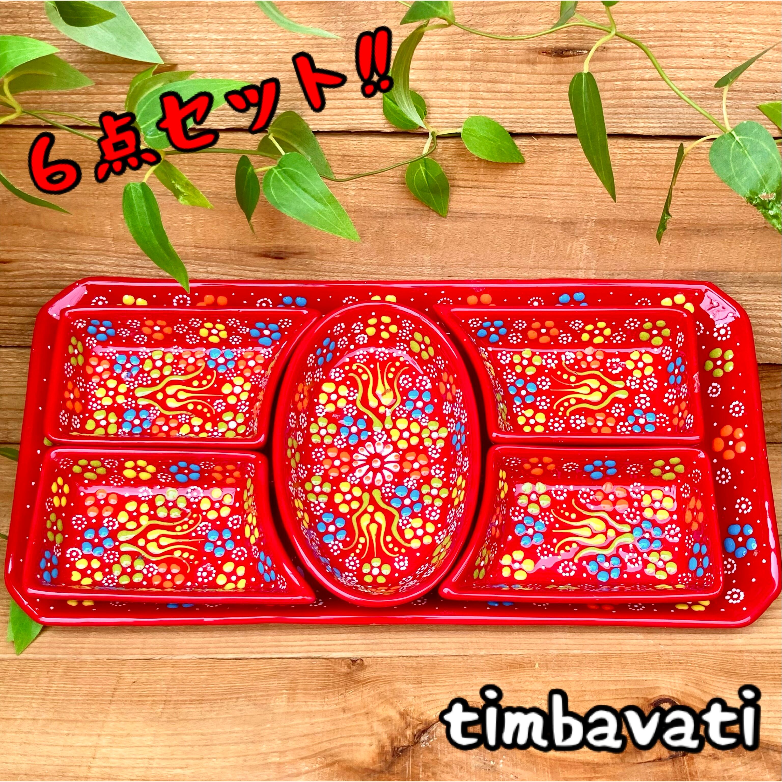 6点セット【トルコ陶器】手描き 食器セット プレート&取り皿*レッド*キュタフヤ陶器