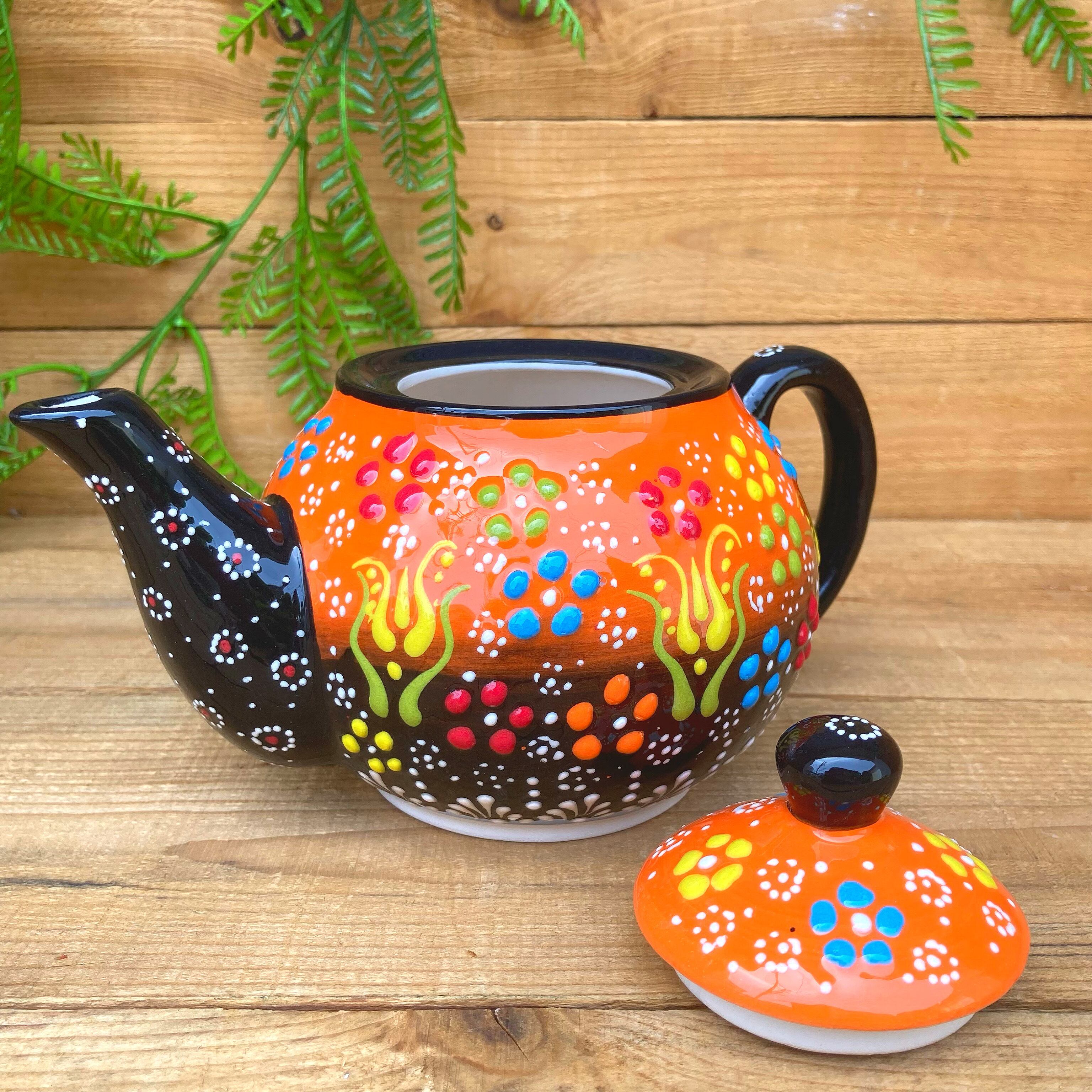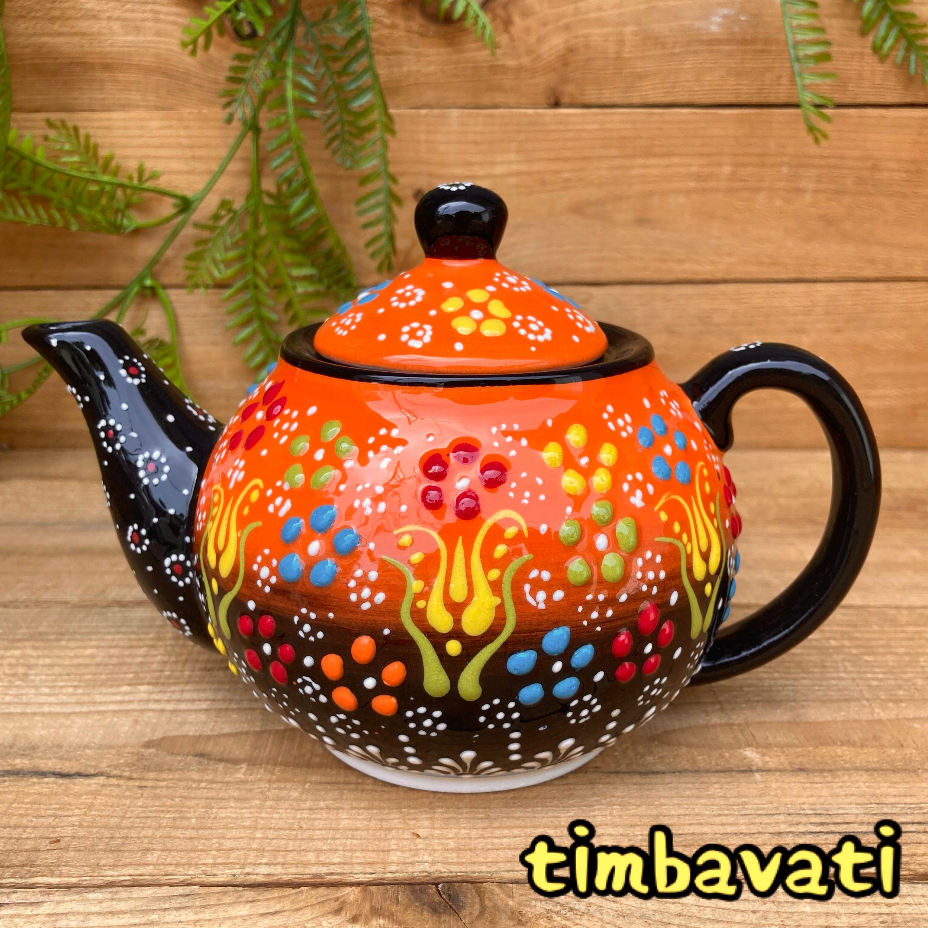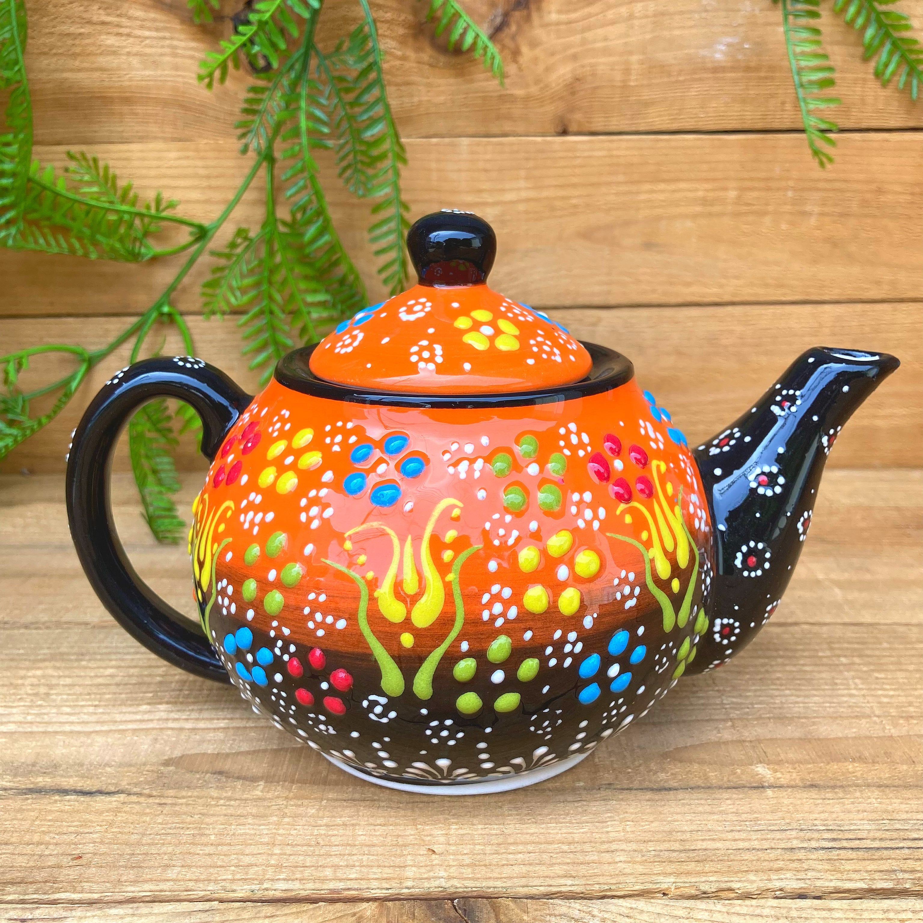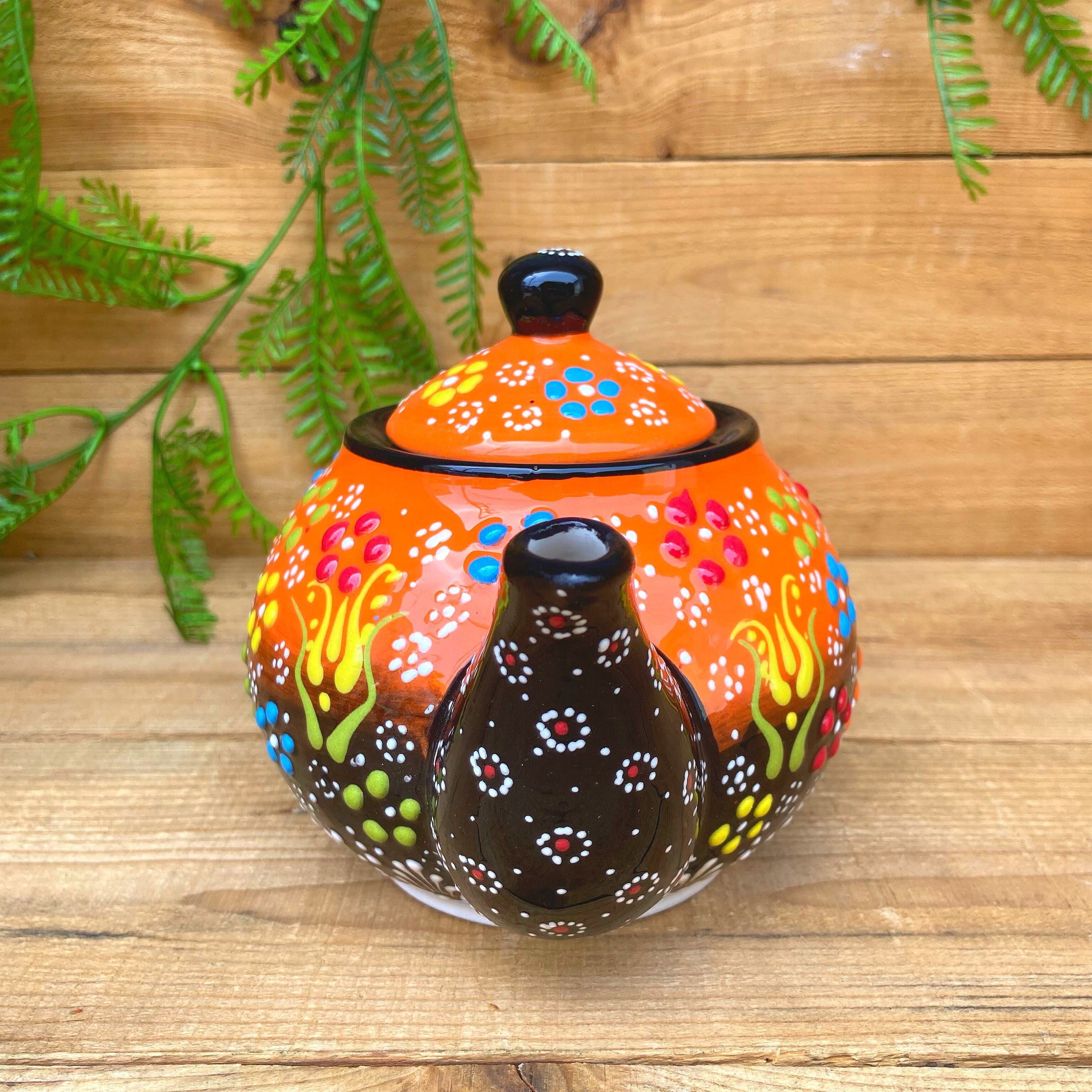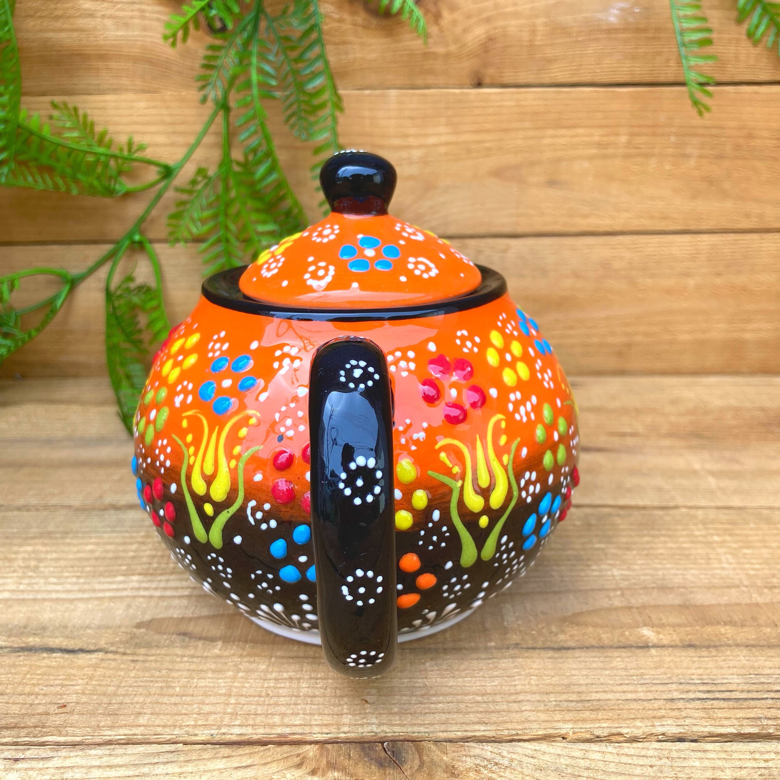 トルコの職人が1点1点絵付けしたカラフルなトルコセラミック陶器のティーポットです。