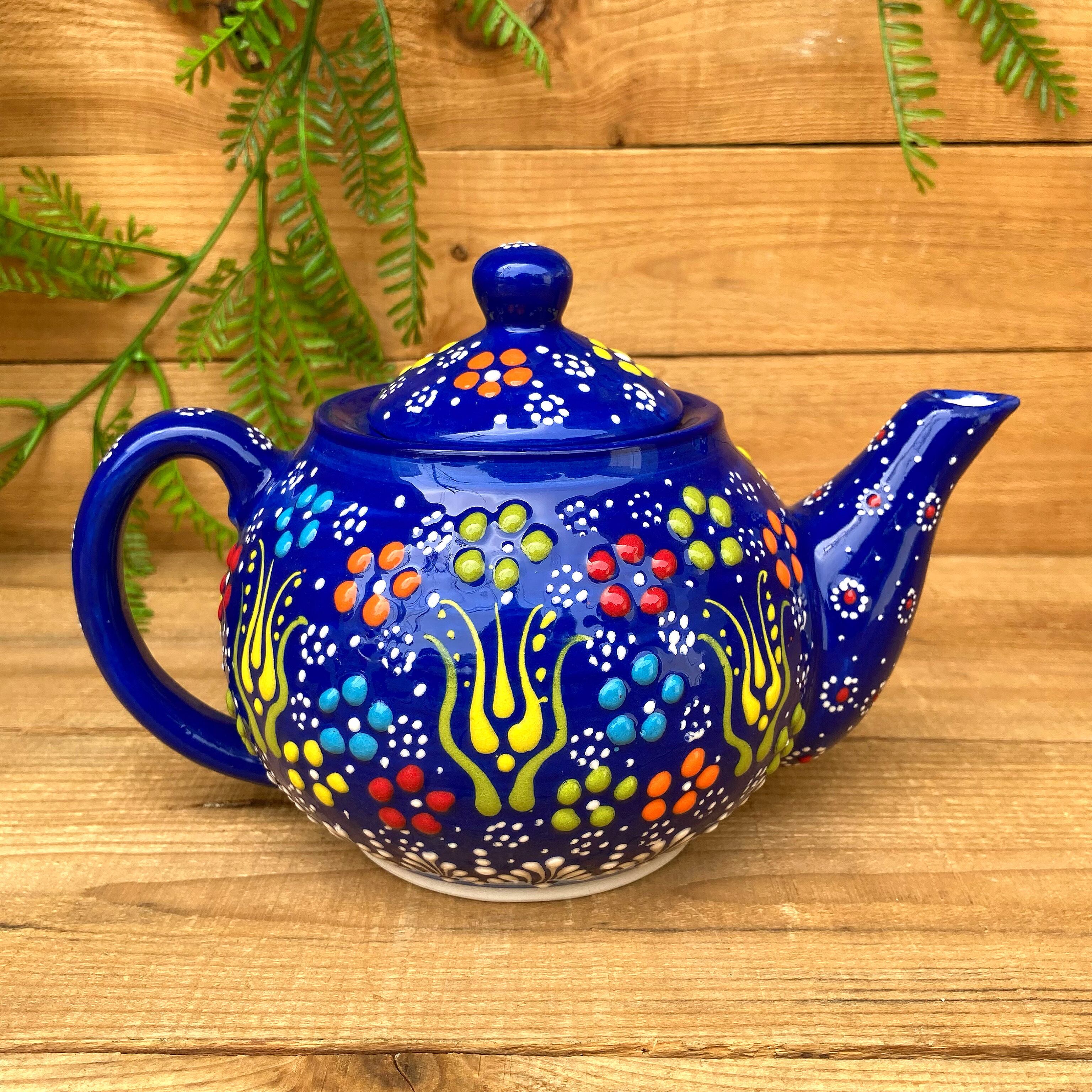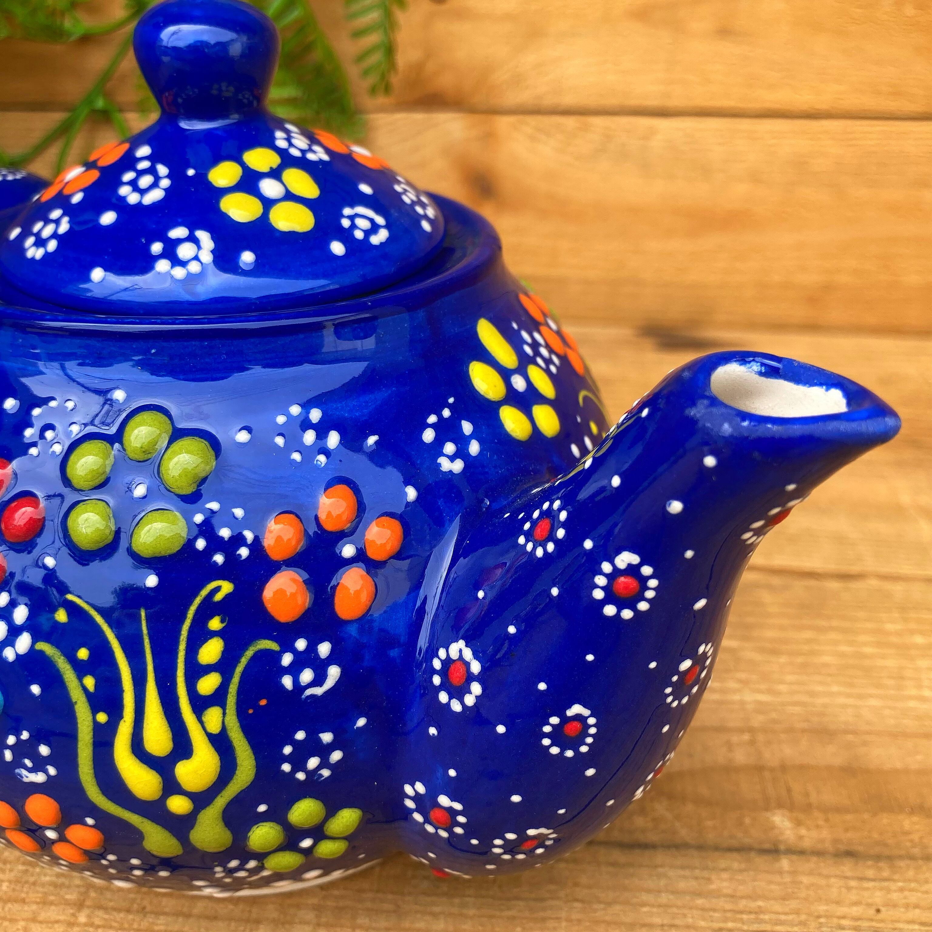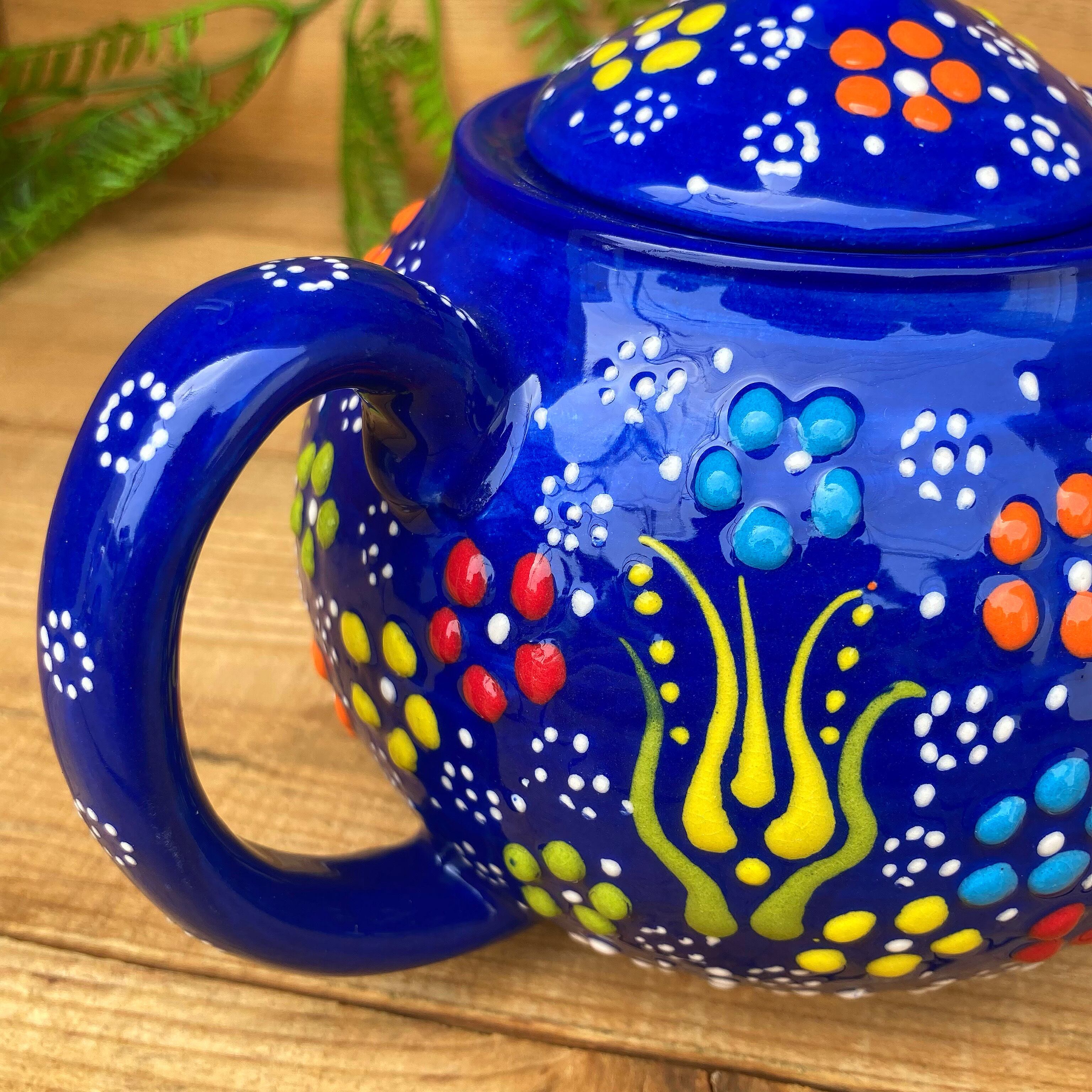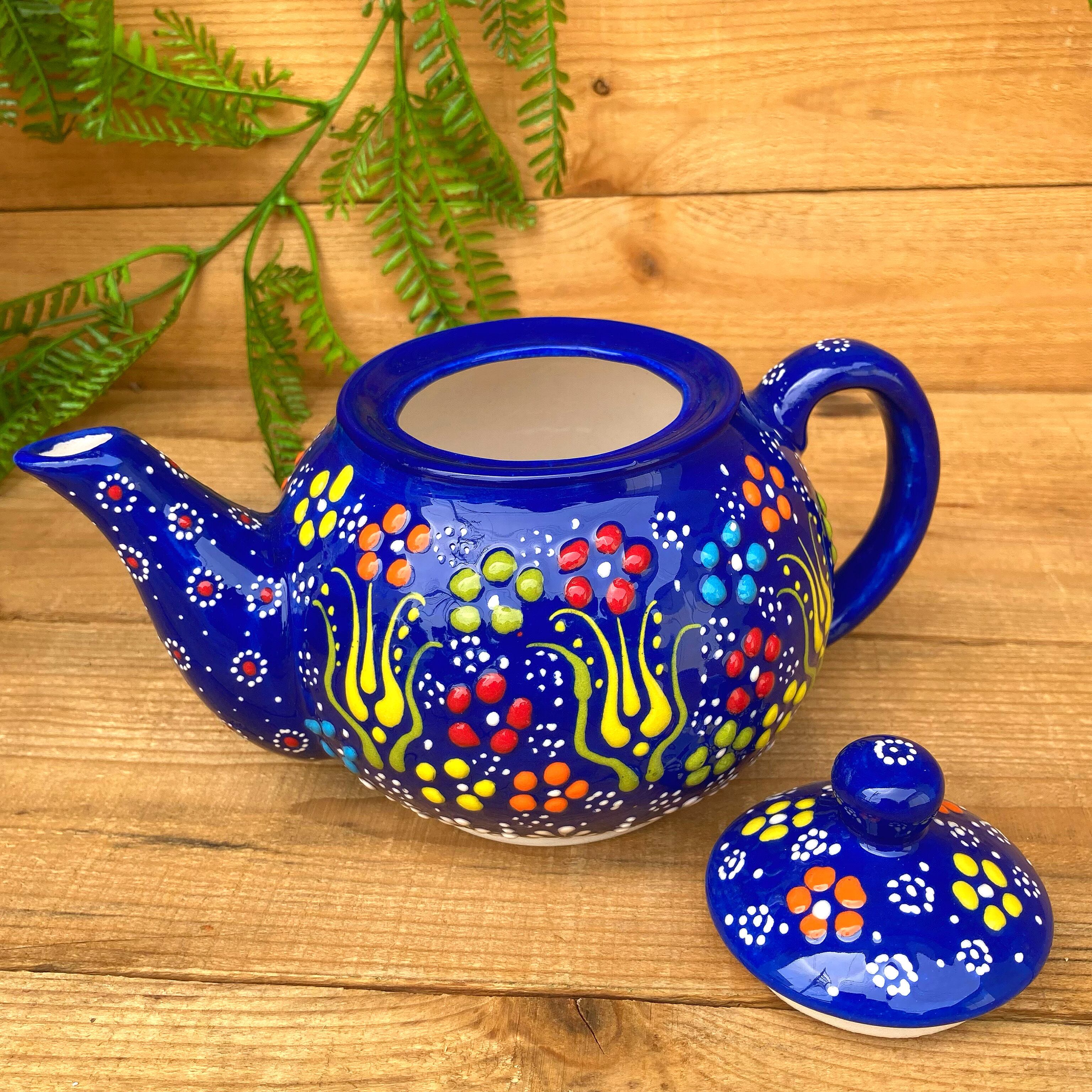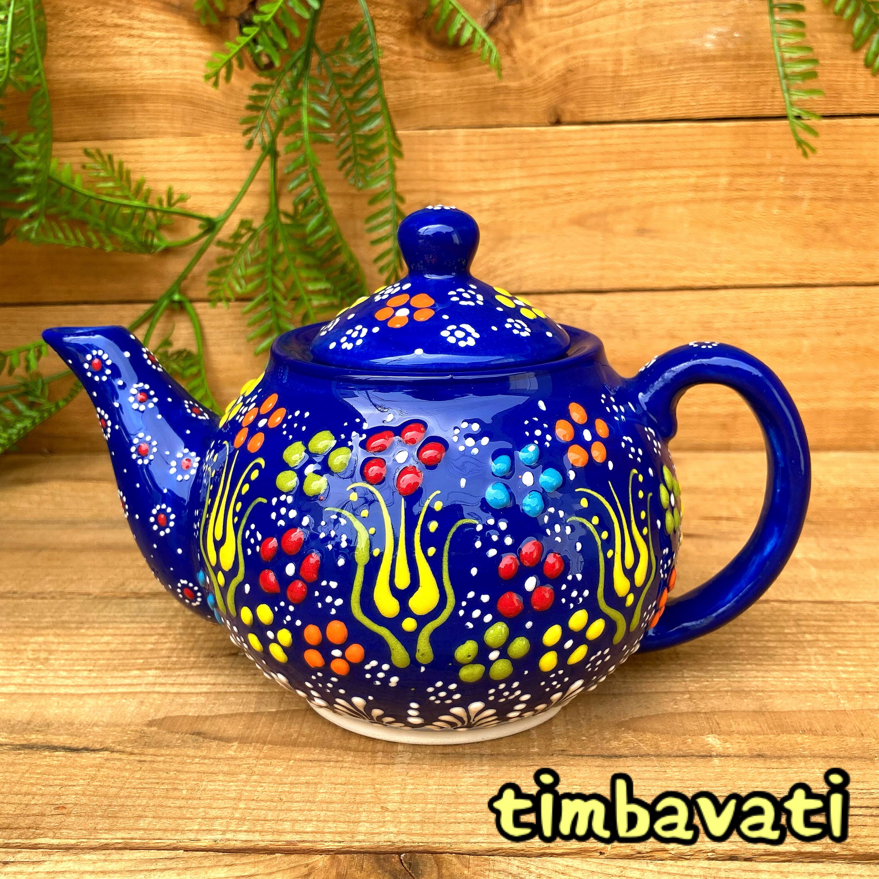 トルコの職人が1点1点絵付けしたカラフルなトルコセラミック陶器のティーポットです。