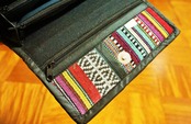 片側に札入れ3ケ所・小銭入れ2ケ所。反対側にポケット1ケ所・ファスナーポケット1ケ所・ビニールポケット1ケ所。
