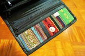 片側に札入れ3ケ所・小銭入れ2ケ所。反対側にポケット1ケ所・ファスナーポケット1ケ所・ビニールポケット1ケ所。
