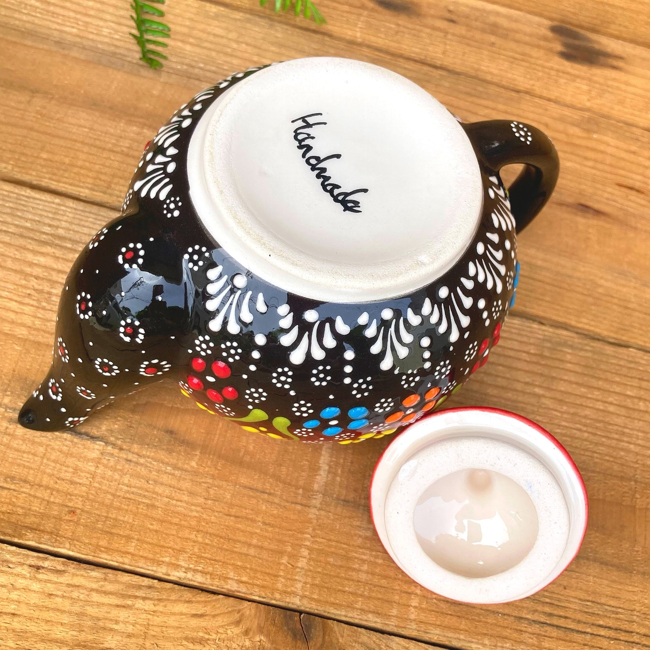 トルコの職人が1点1点絵付けしたカラフルなトルコセラミック陶器のティーポットです。