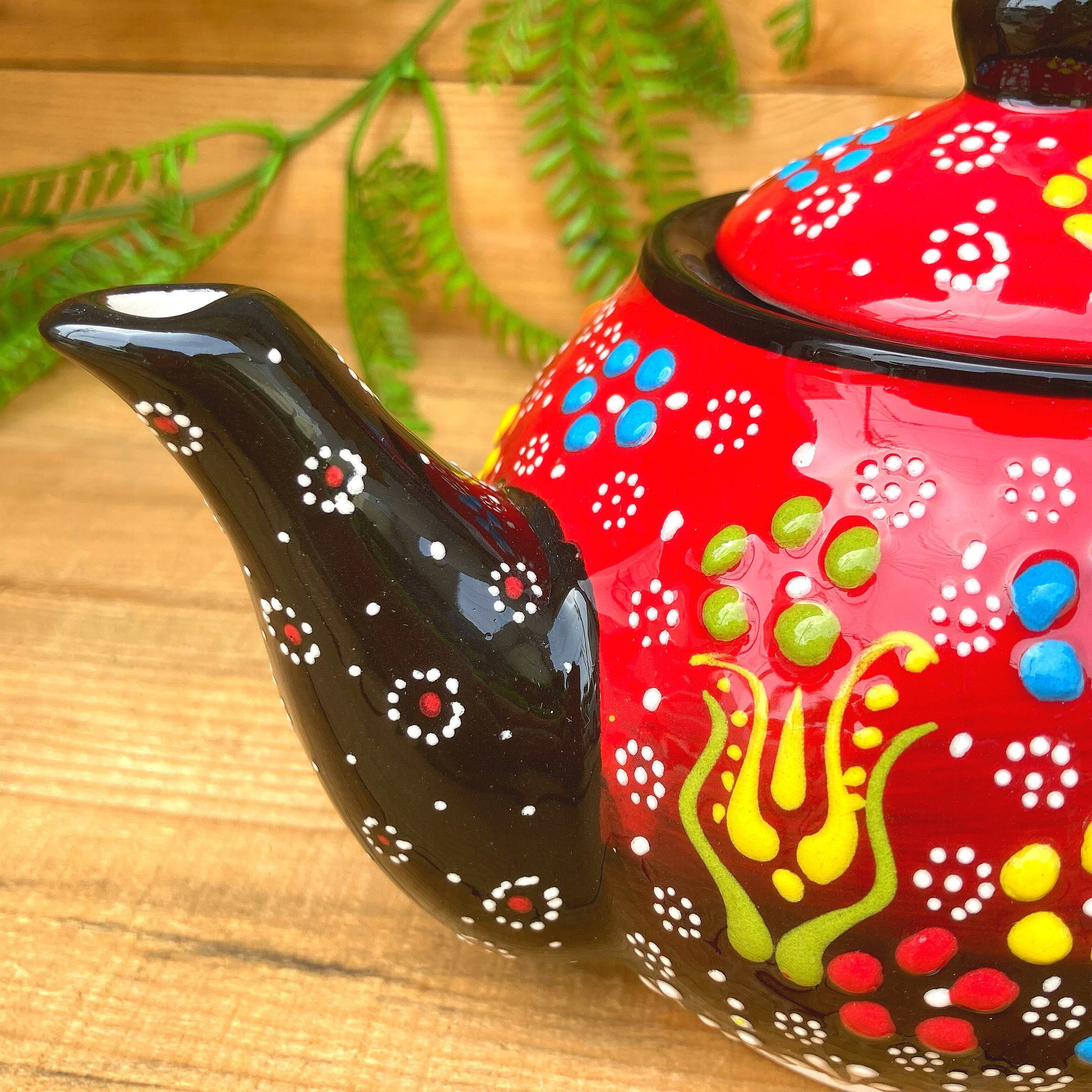 20cm【トルコ】手描き ティーポット *赤 レッド*キュタフヤ陶器