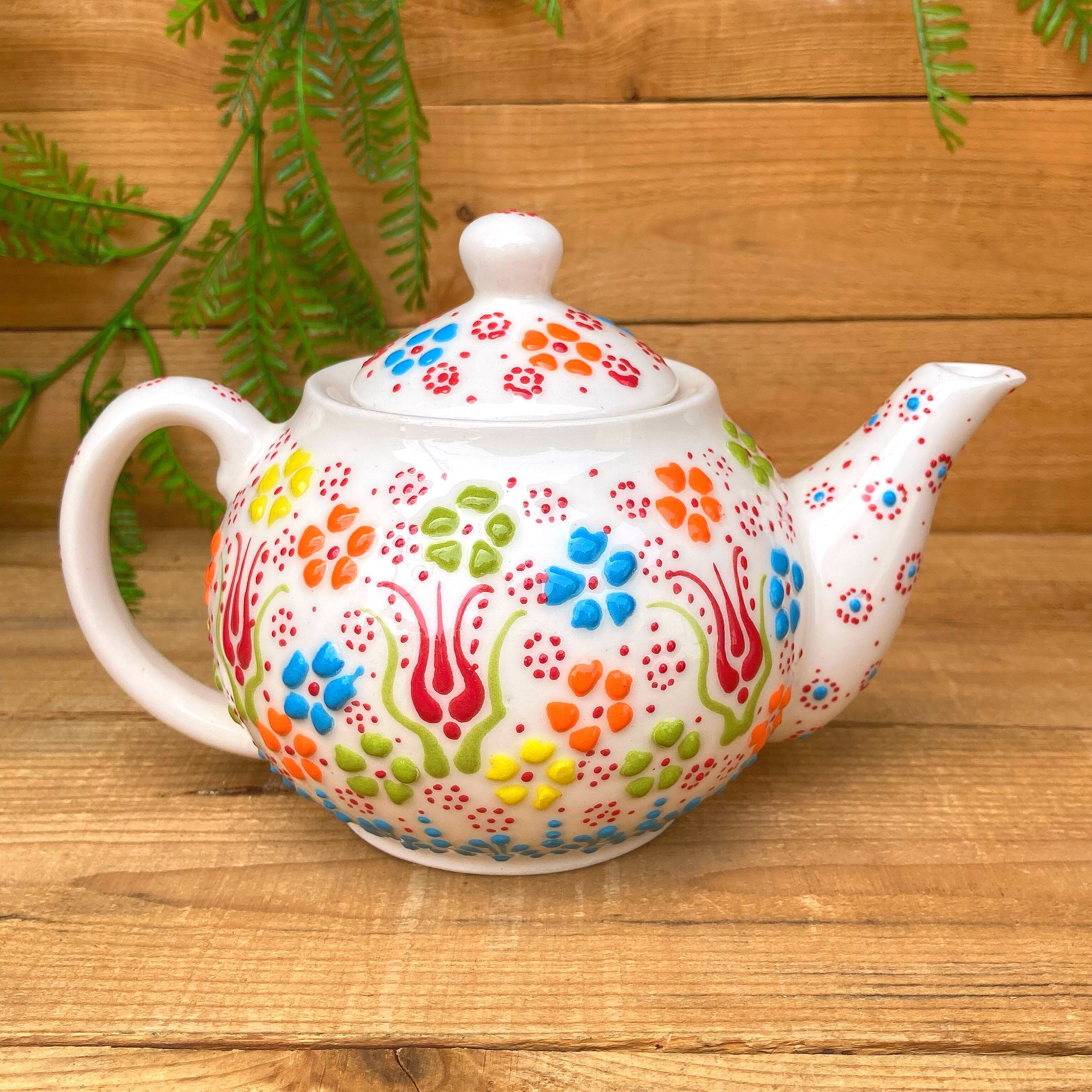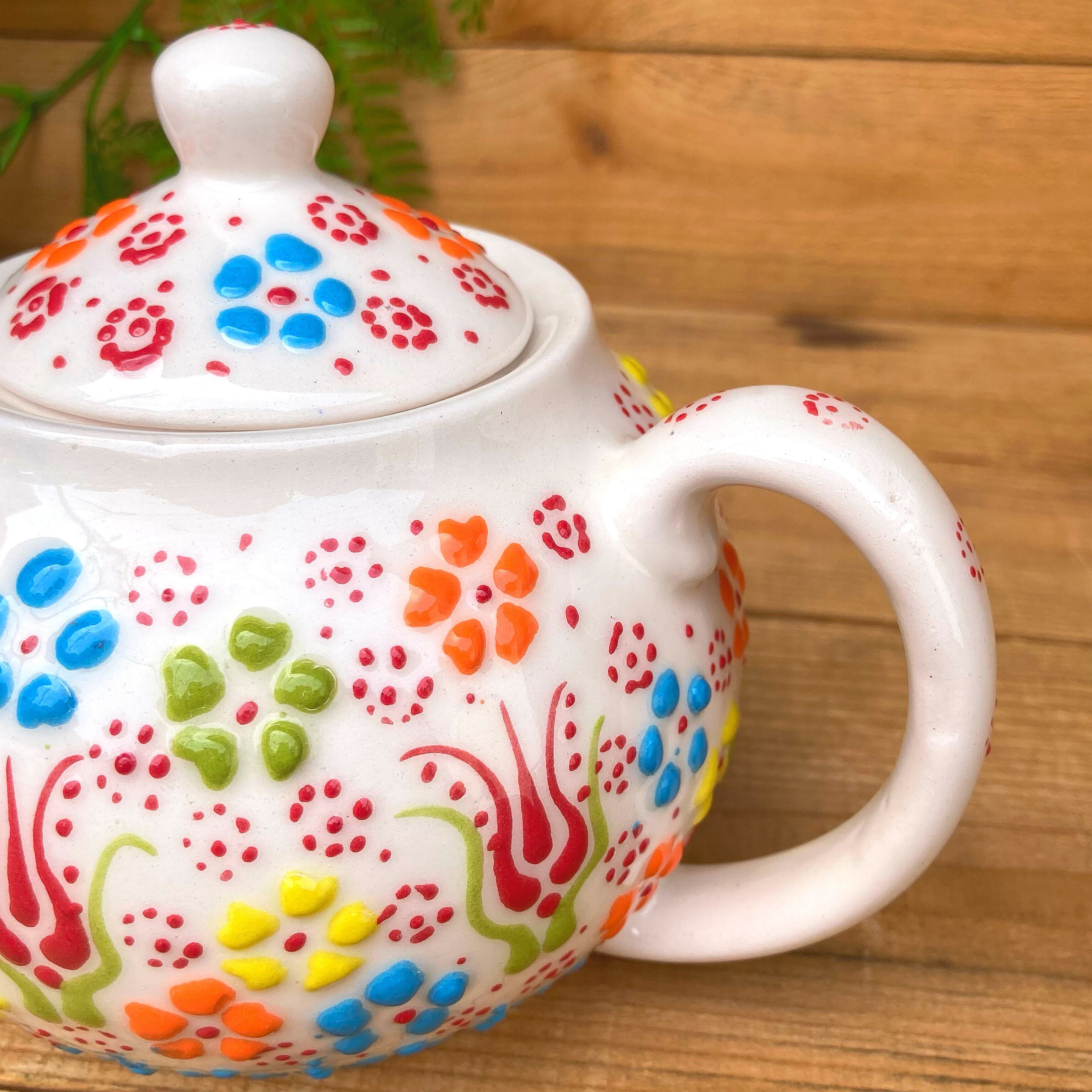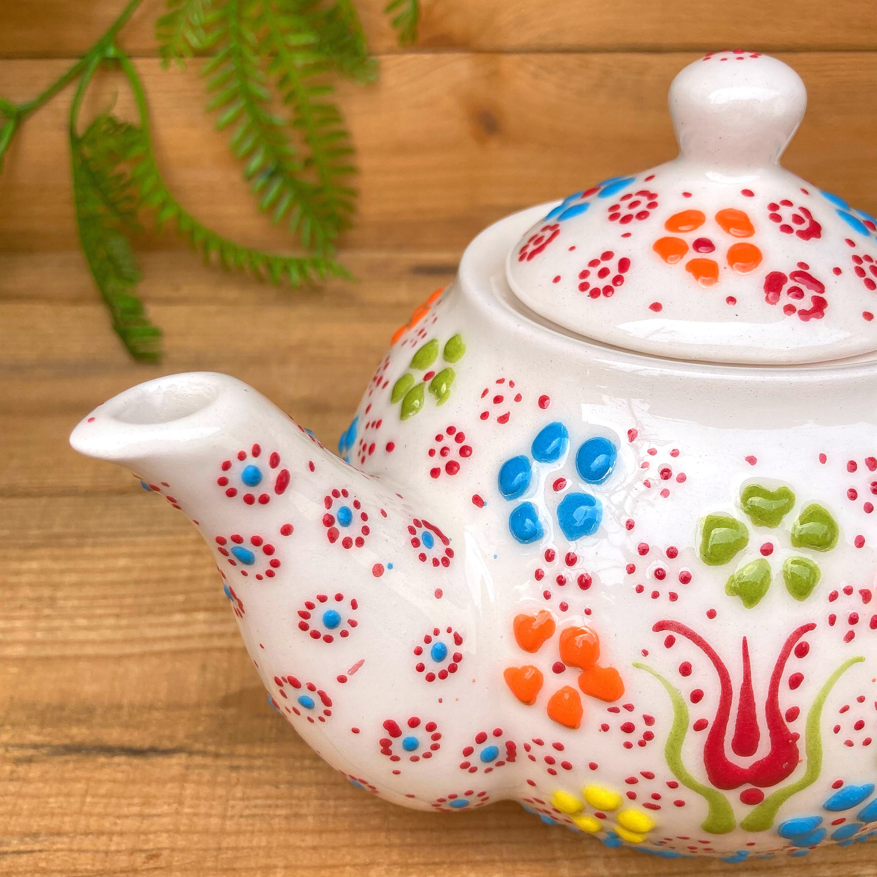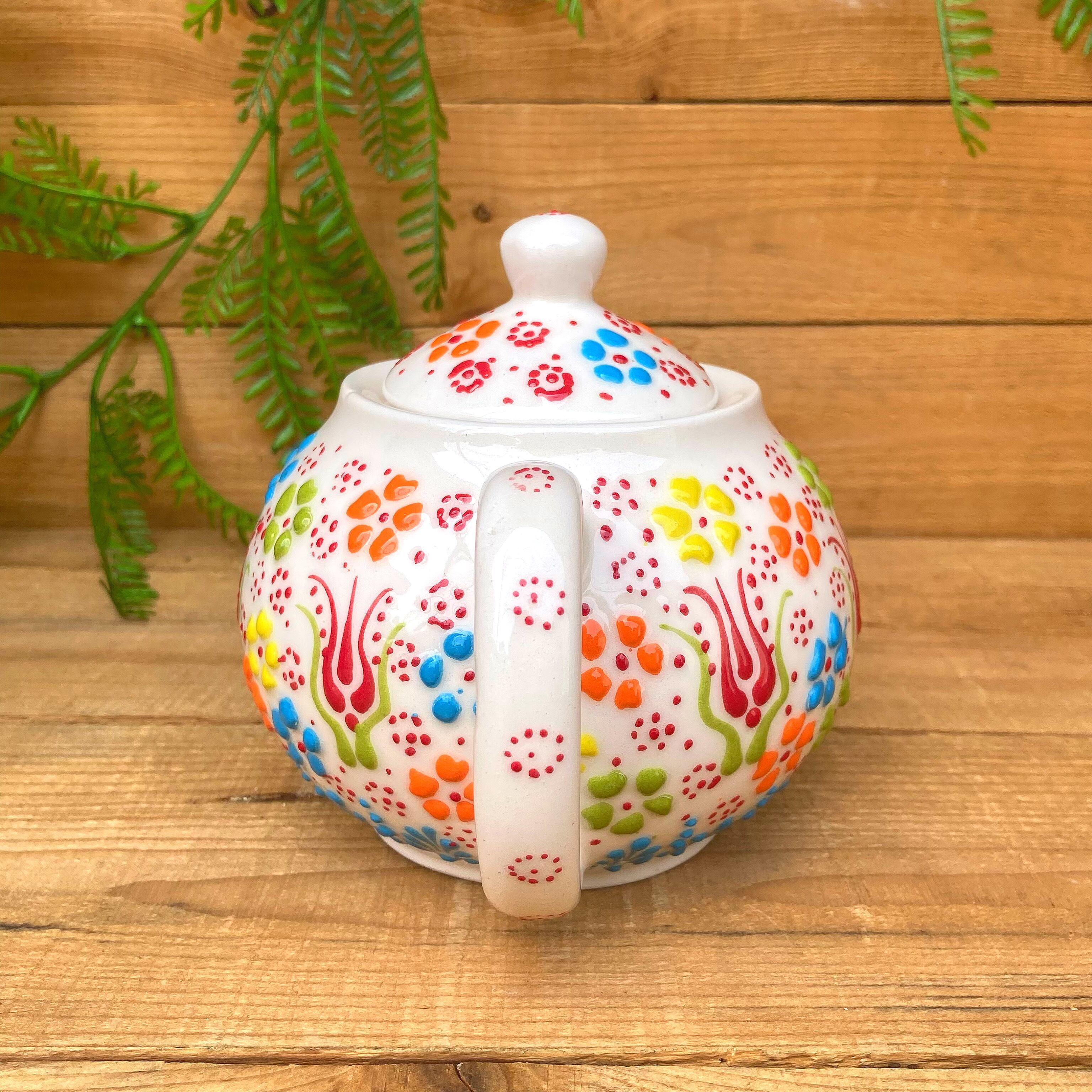 トルコの職人が1点1点絵付けしたカラフルなトルコセラミック陶器のティーポットです。
