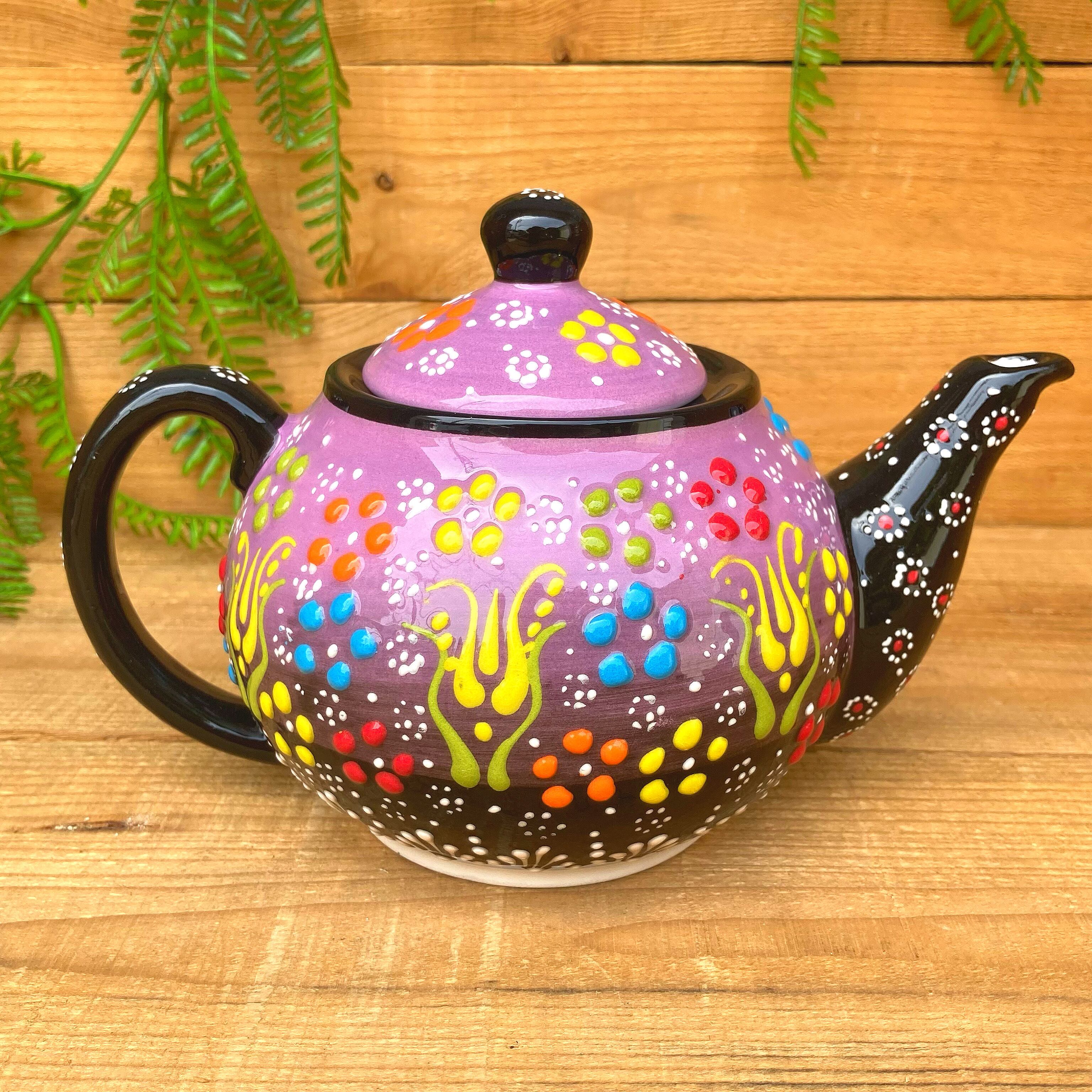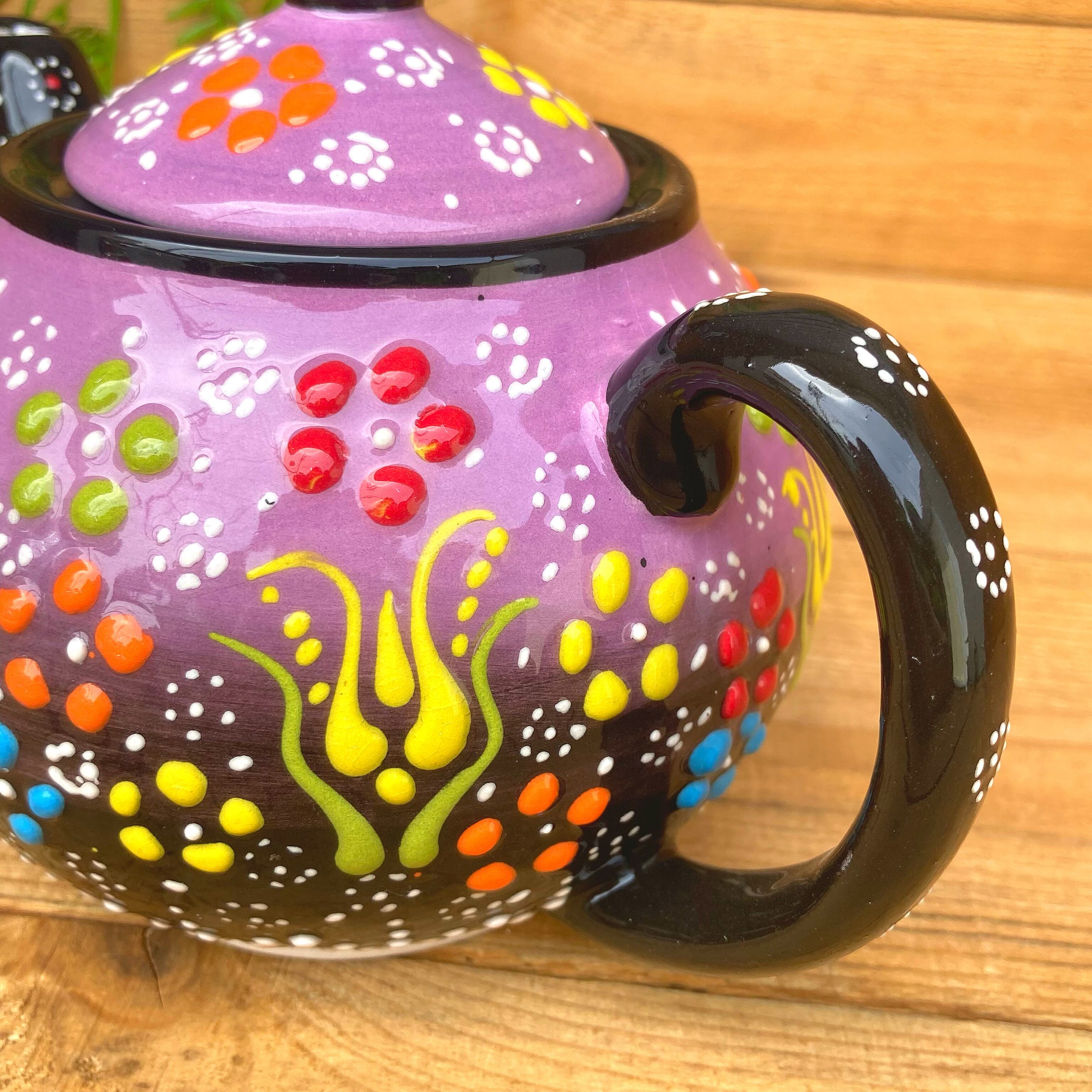 トルコの職人が1点1点絵付けしたカラフルなトルコセラミック陶器のティーポットです。