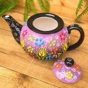20cm【トルコ】手描き ティーポット *パープル*キュタフヤ陶器