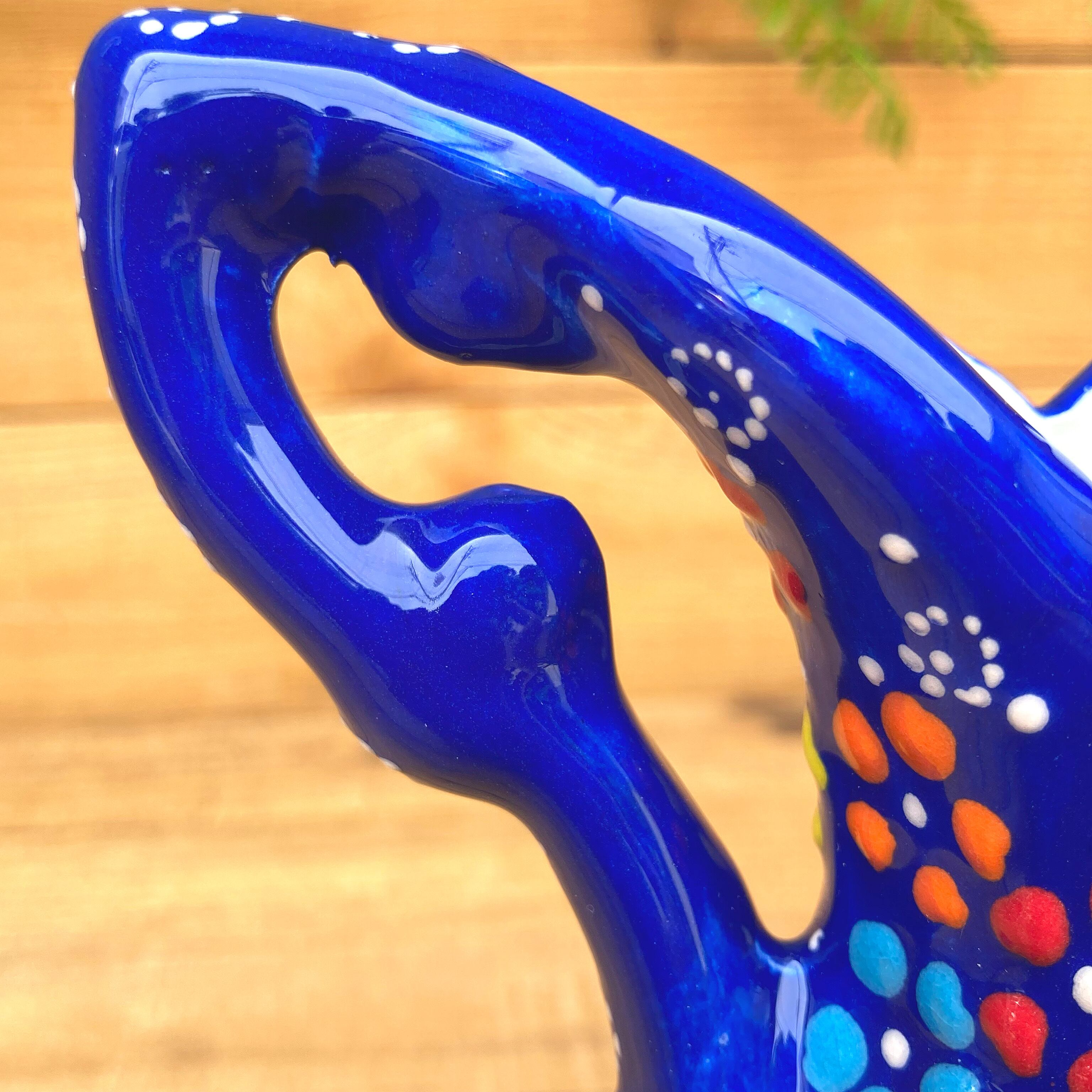 15cm【トルコ】手描き 花瓶 フラワーベース 取手付き*ブルー*キュタフヤ陶器