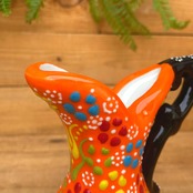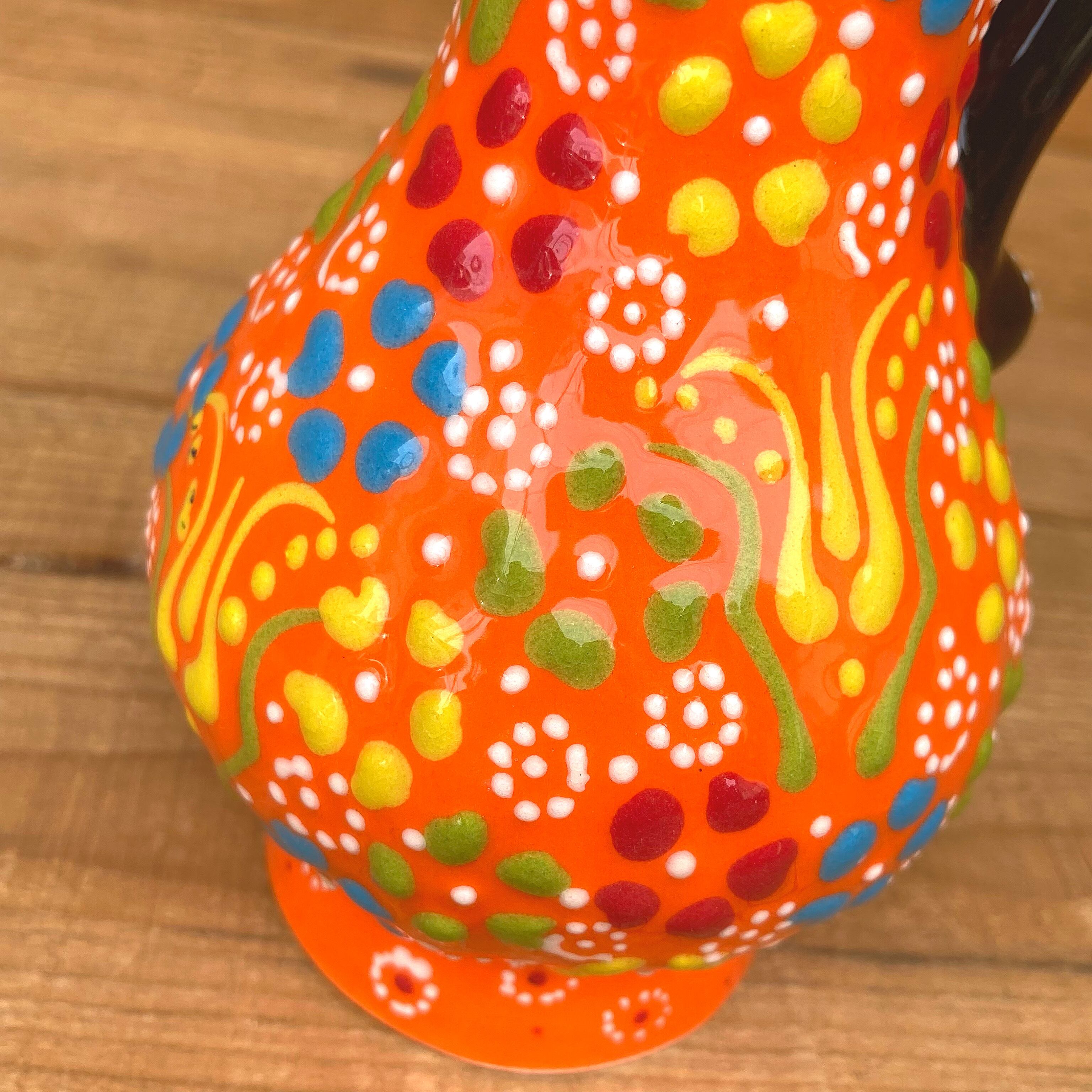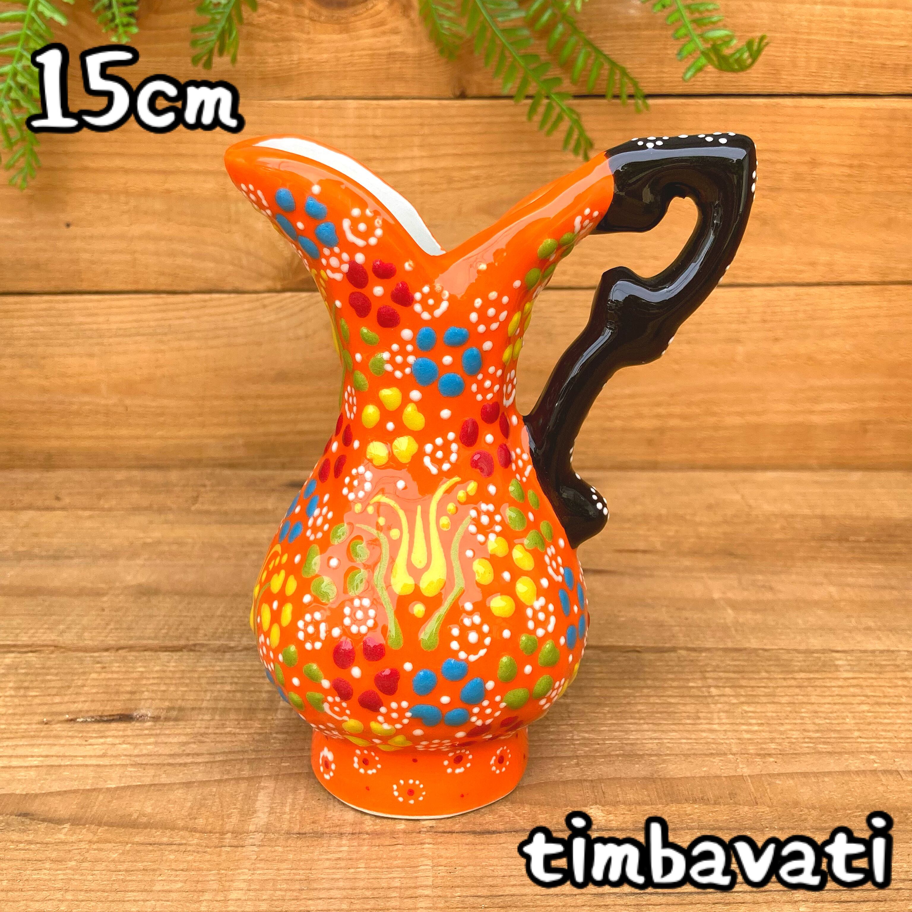 15cm【トルコ】手描き 花瓶 フラワーベース 取手付き*オレンジ*キュタフヤ陶器