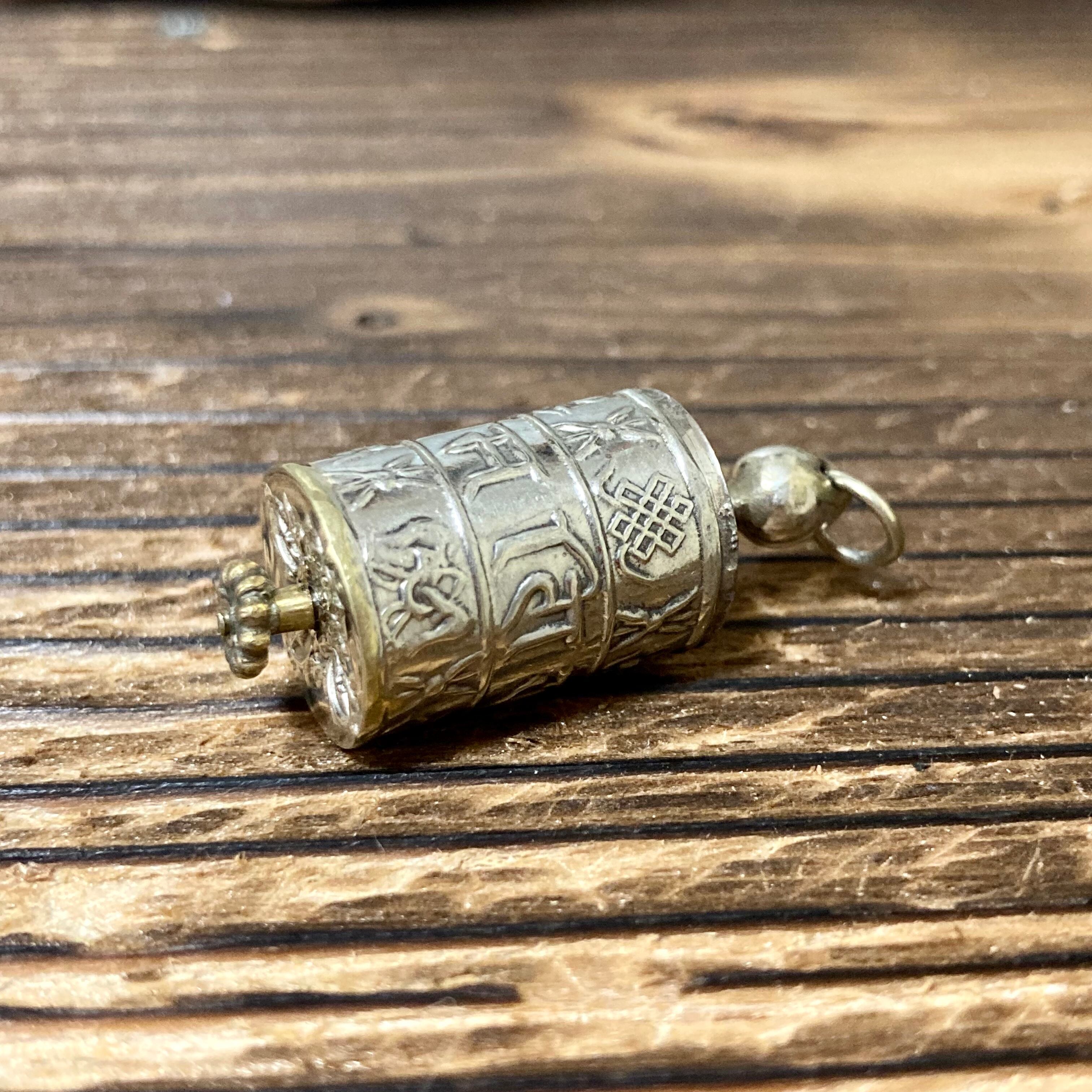 【チベット】マニ車 シルバーペンダントトップ *クルクル廻ります*マントラ