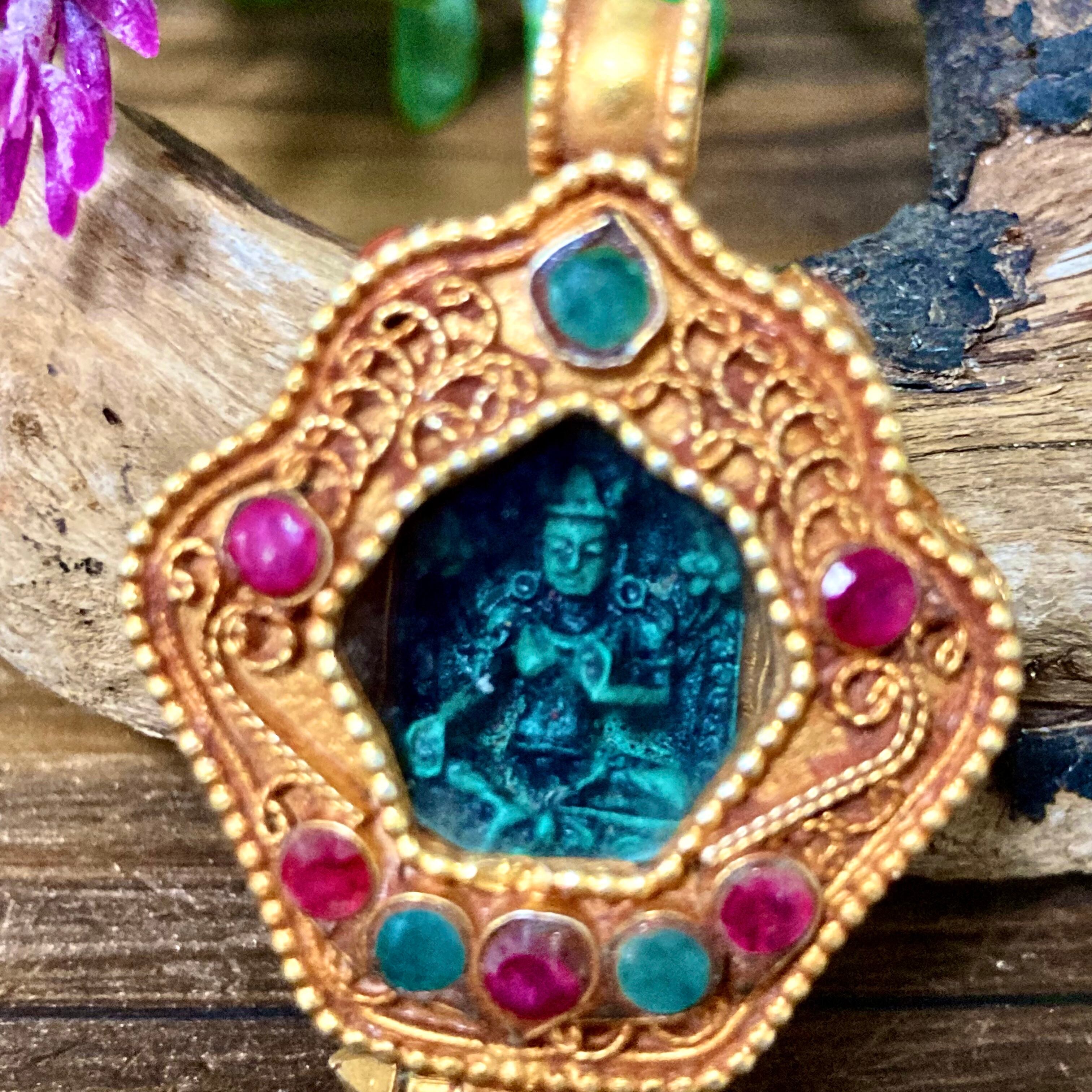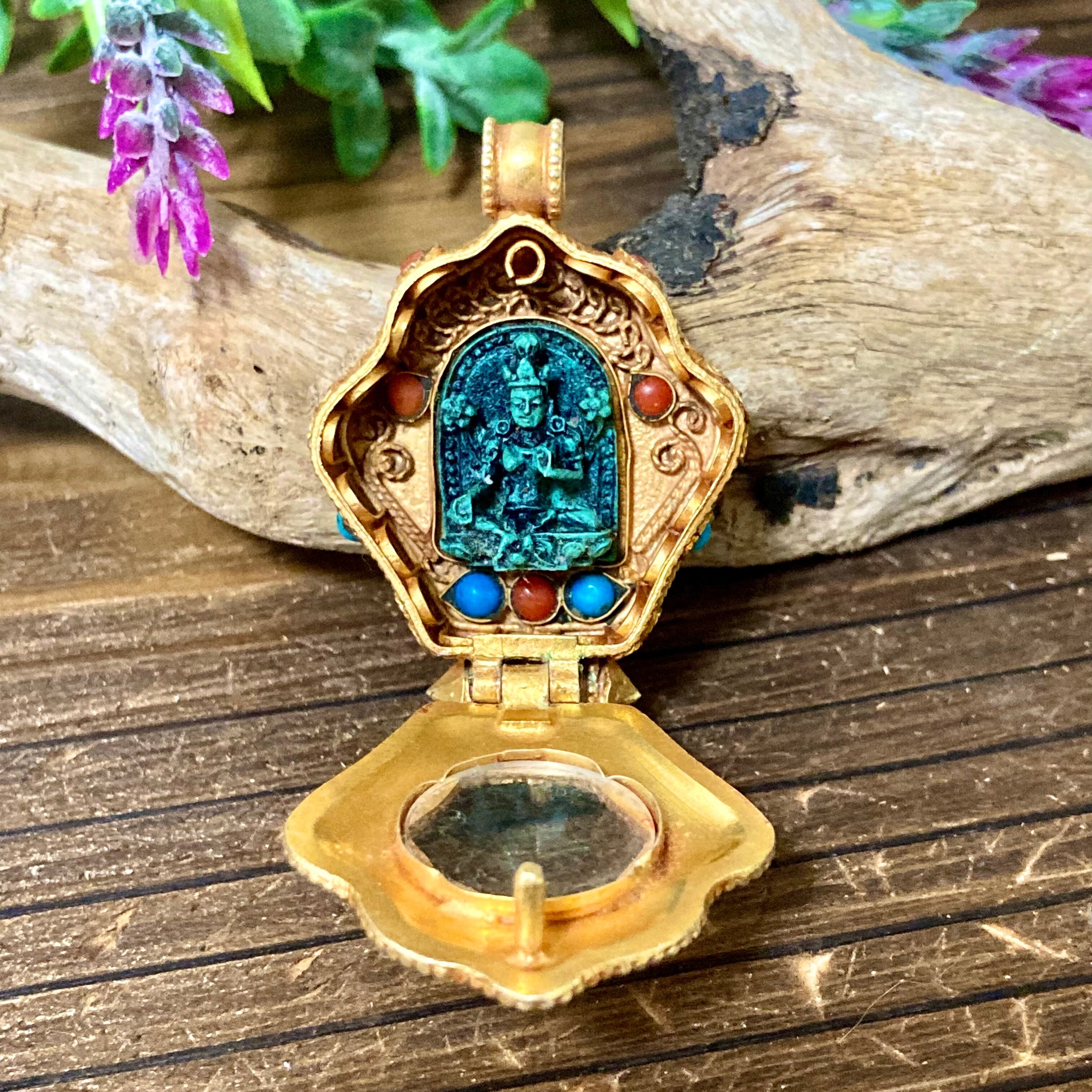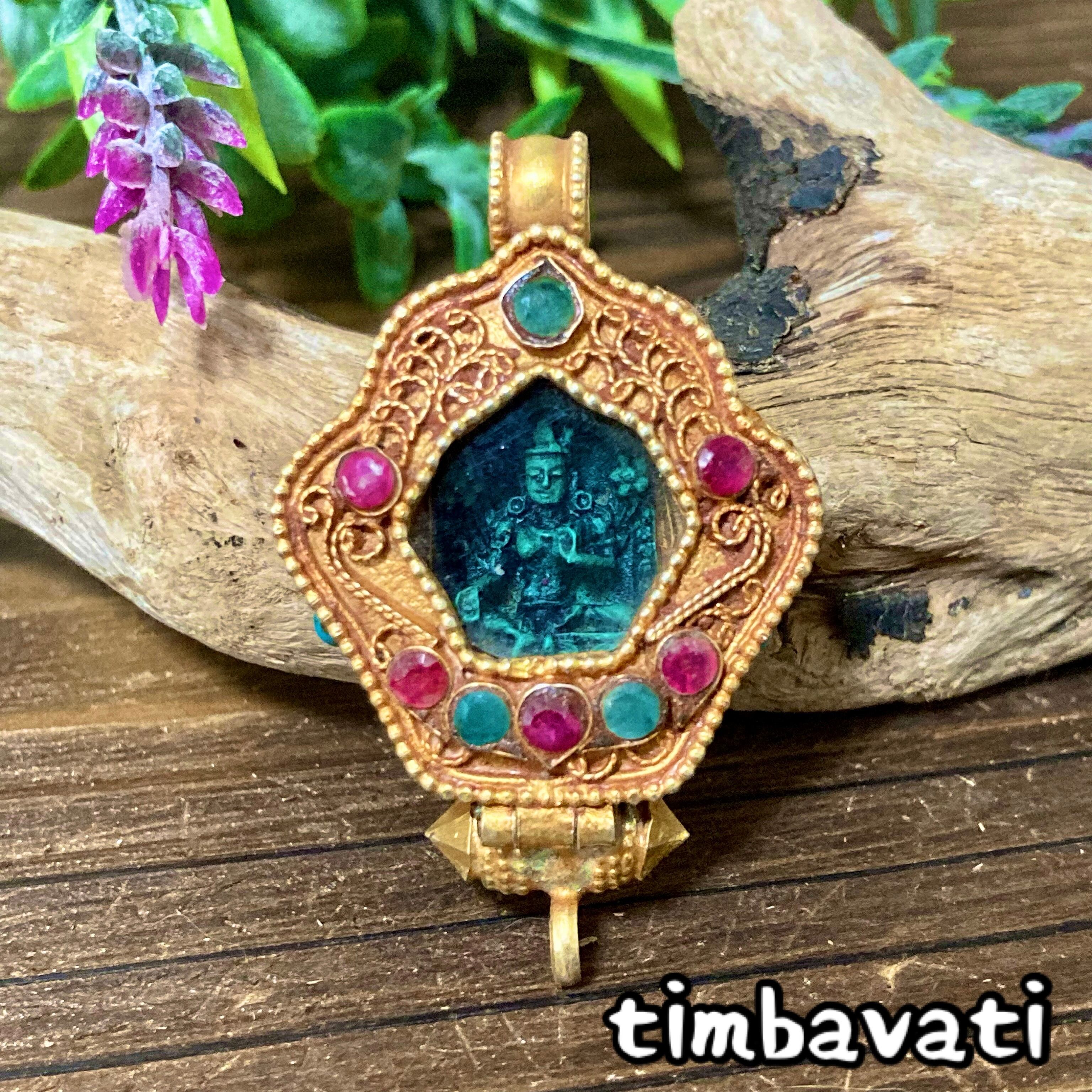 【チベット】仏教 密教 シルバーペンダントトップ (金色) *バイシャジヤグル 薬師如来*蓋が空きます*