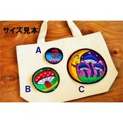 直径8cm【インド】カラフル サイケデリック 総刺繍 ワッペン (コースター) *きのこ*