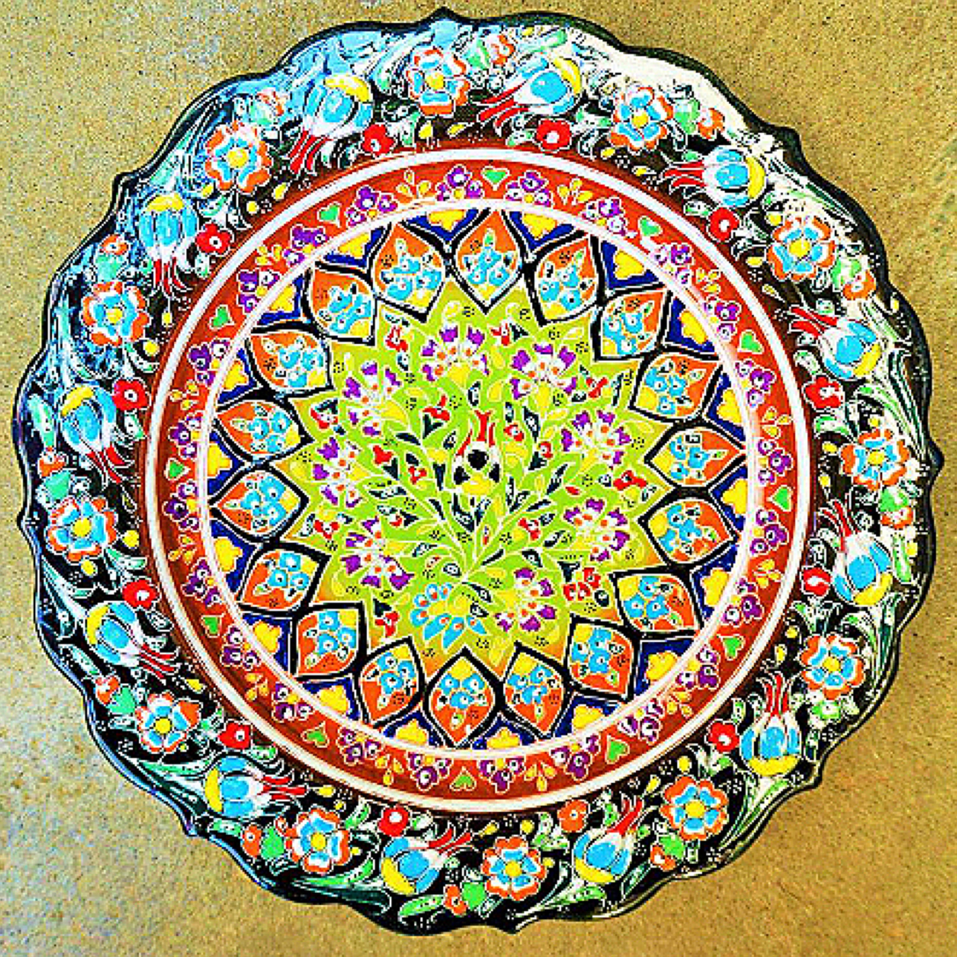 トルコの職人が1点1点絵付けしたカラフルなトルコセラミック陶器のお皿です