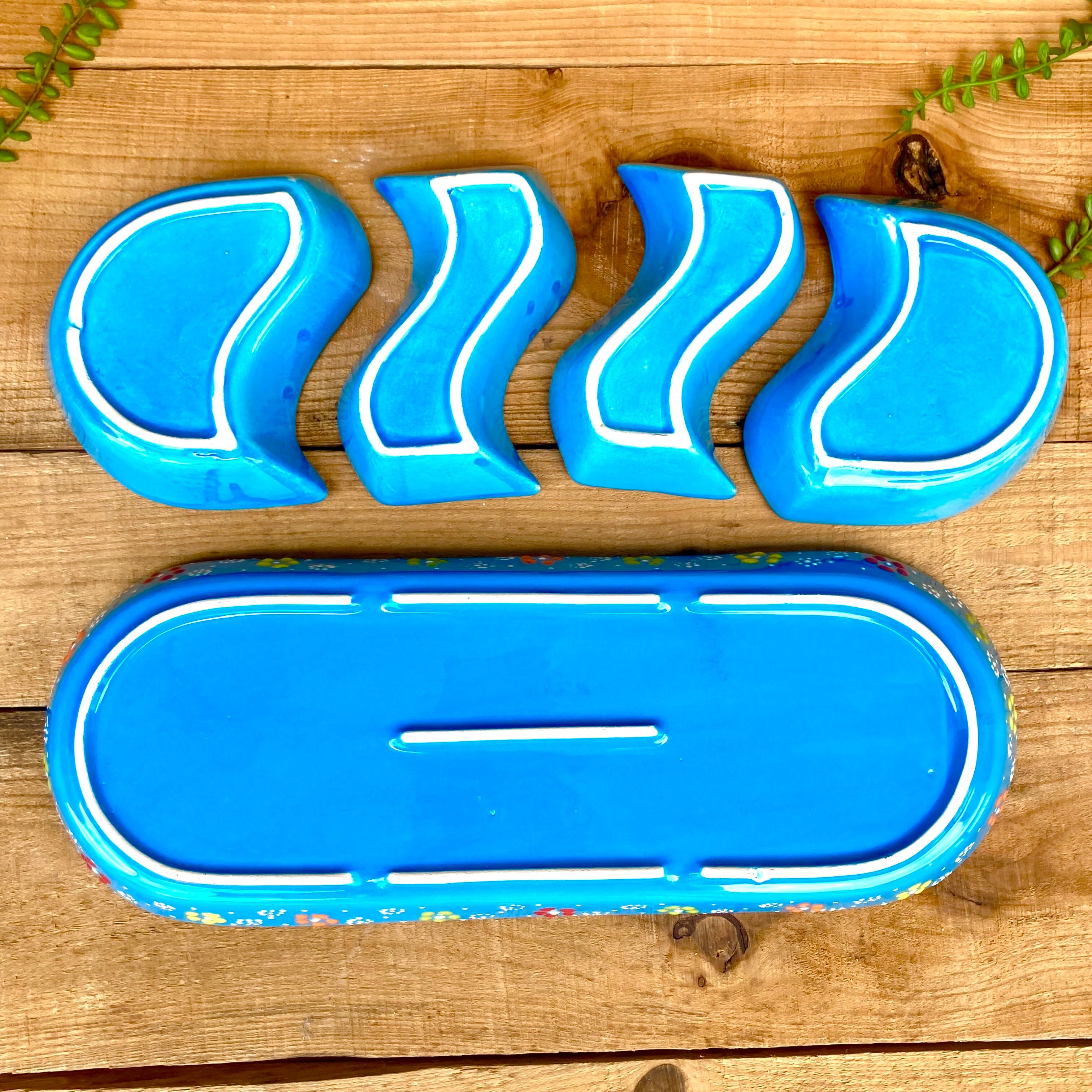 5点セット【トルコ陶器】手描き 食器セット プレート&取り皿*ライトブルー*キュタフヤ陶器