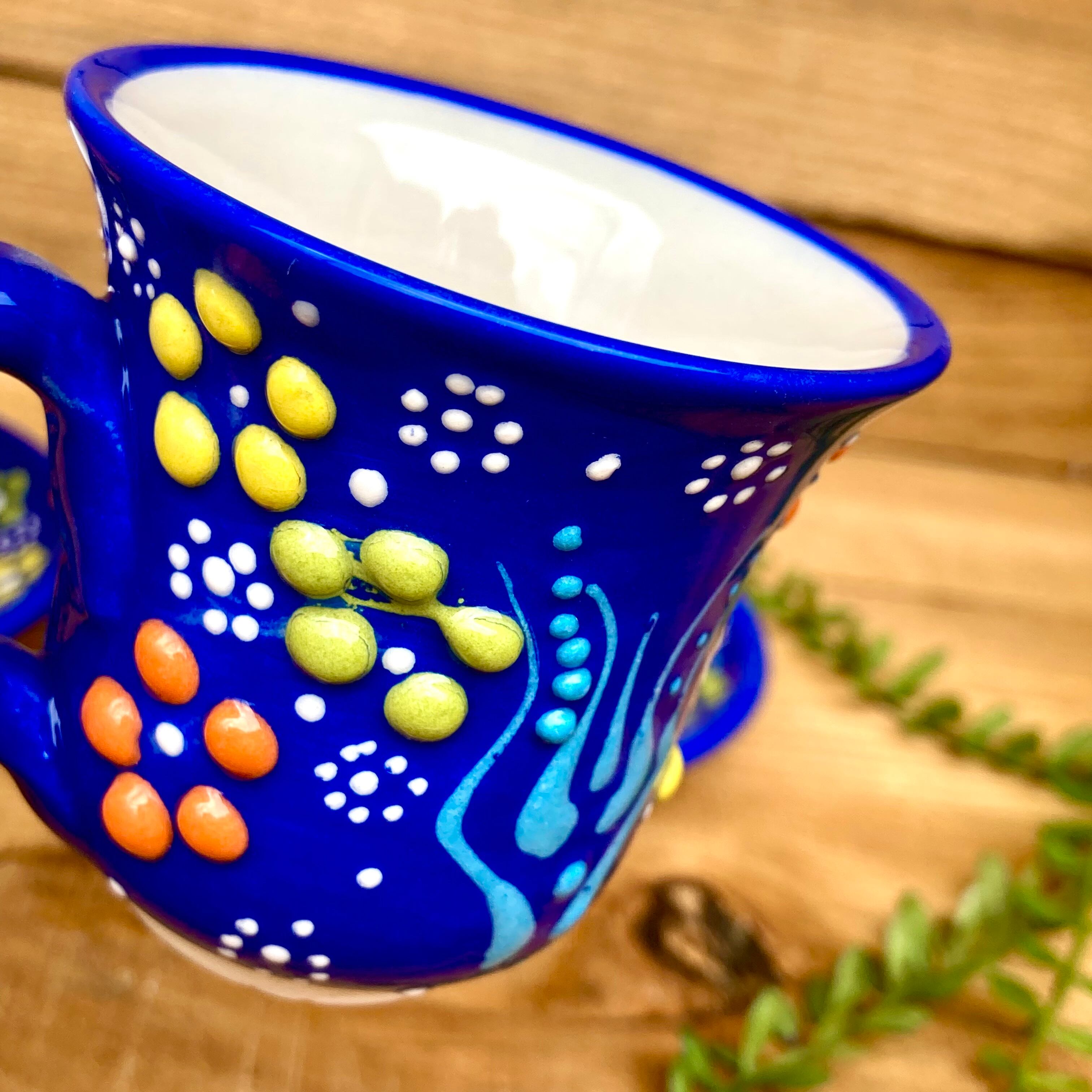 2個セット【トルコ陶器】手描き デミタスカップ ソーサー*ブルー*キュタフヤ陶器