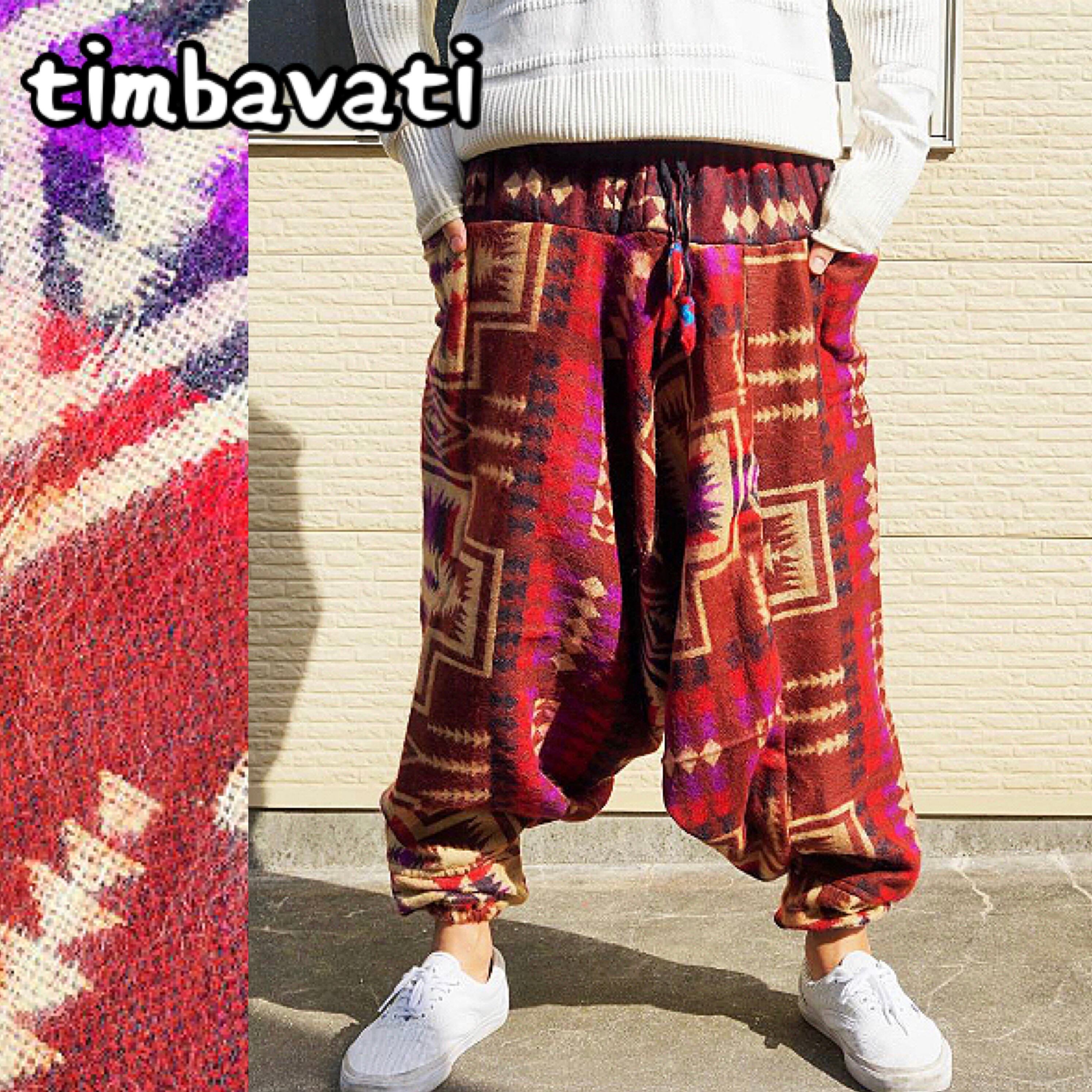 【ネパール】男女兼用 あったか ウール サルエルパンツ エスニック柄 ボトムス *フリーサイズ *