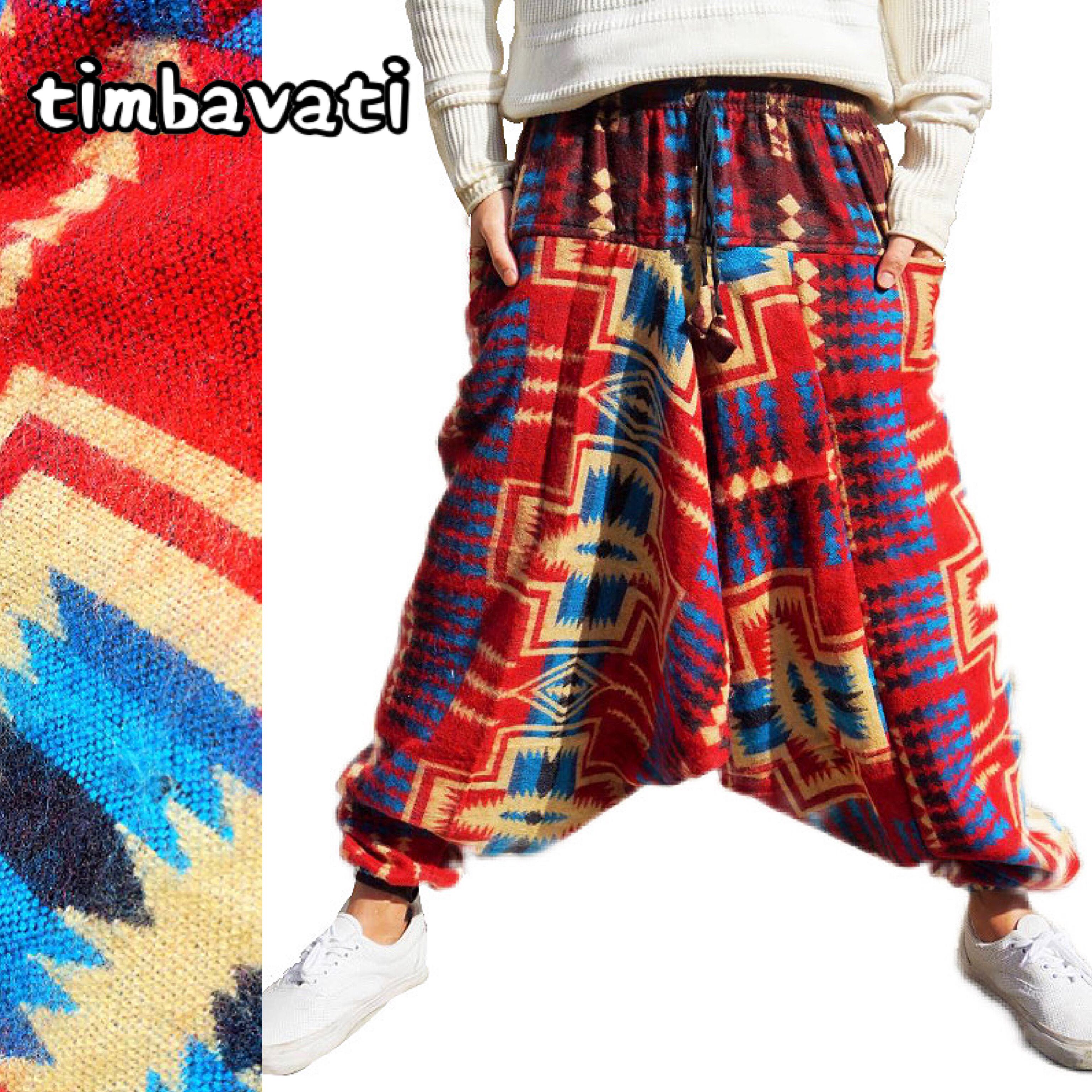 【ネパール】男女兼用 あったか ウール サルエルパンツ エスニック柄 ボトムス *フリーサイズ *