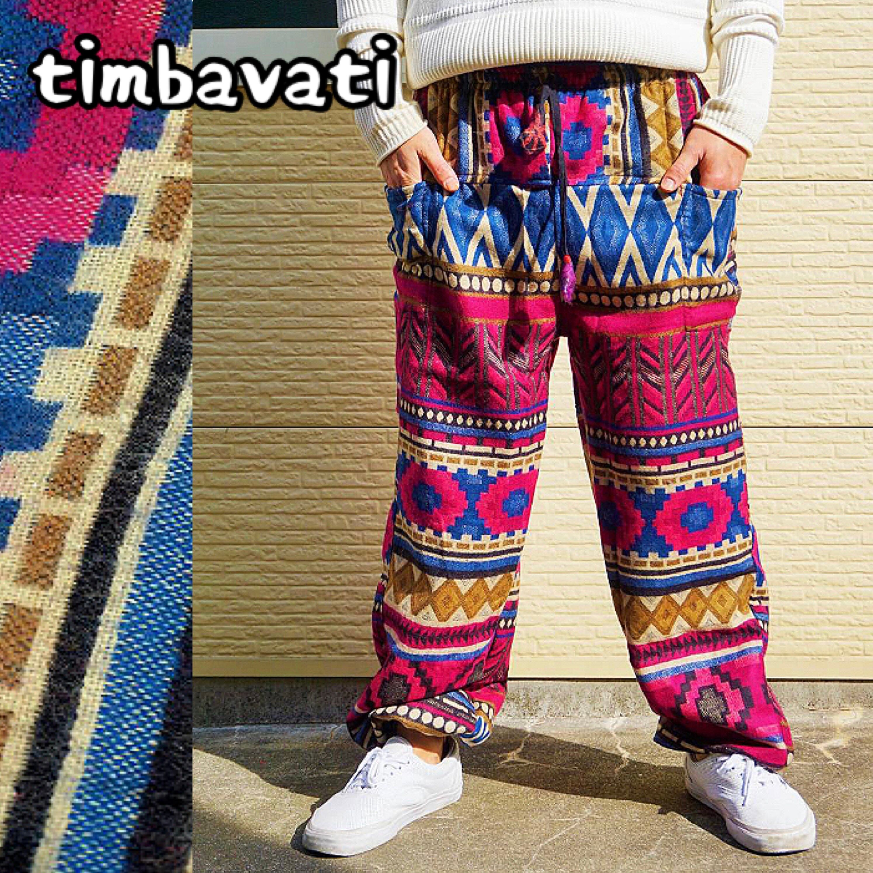 【ネパール】男女兼用 あったか ウール パンツ エスニック柄 ボトムス *フリーサイズ *