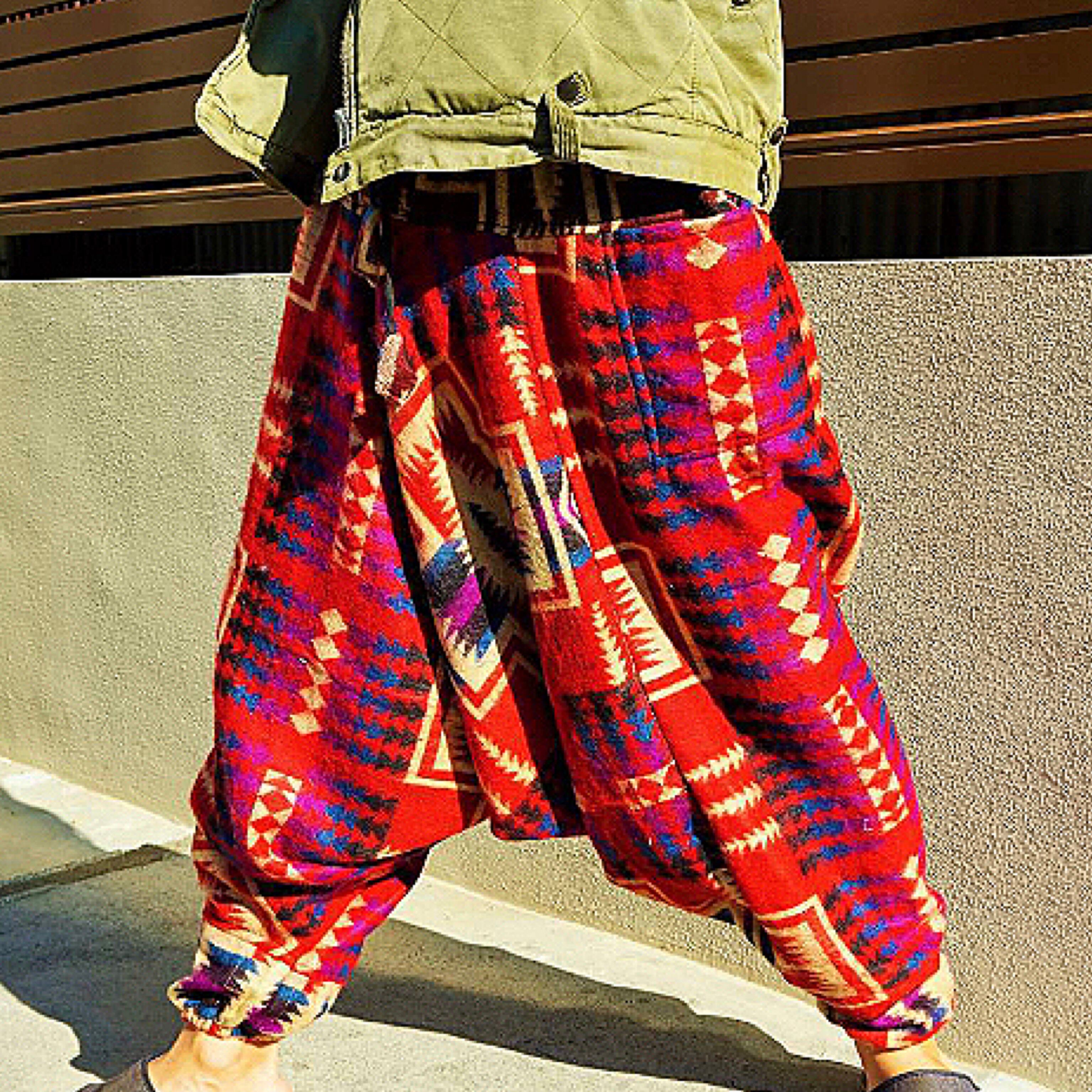 ☆エスニック柄の男女兼用ウール サルエルパンツです
