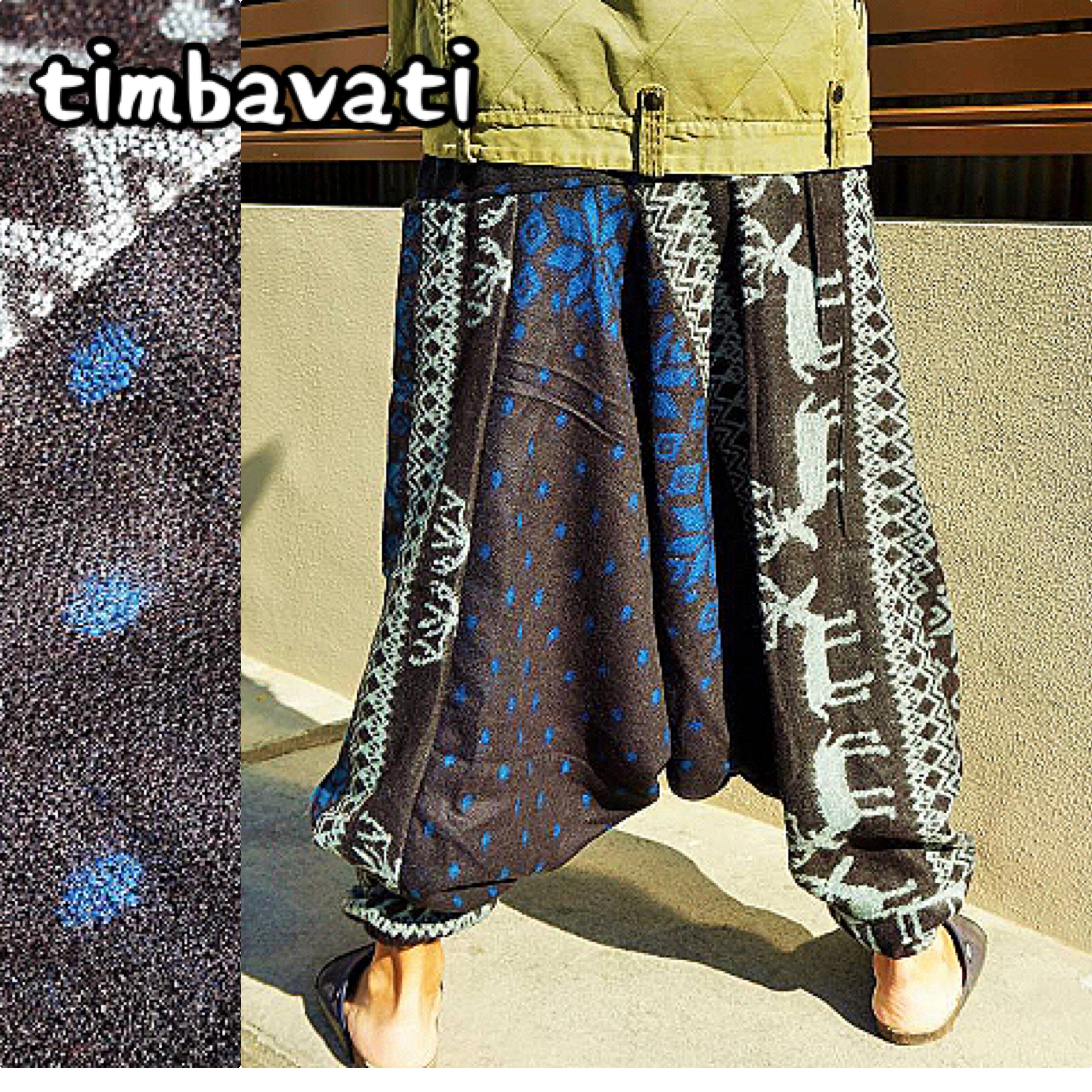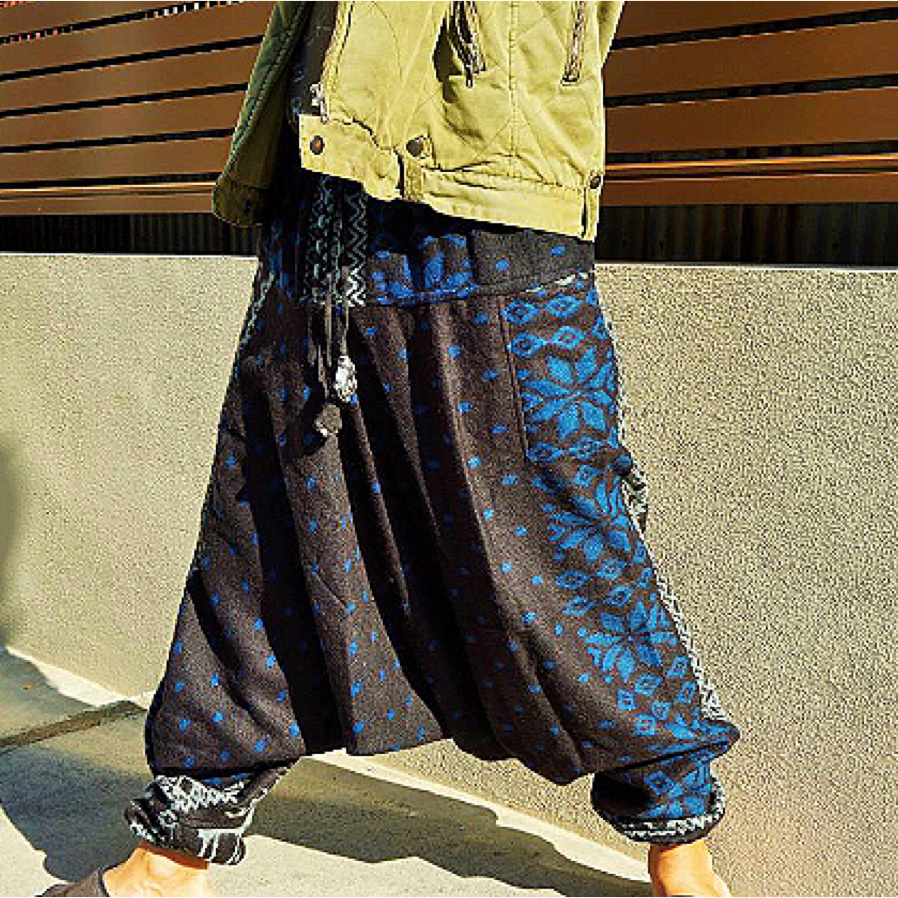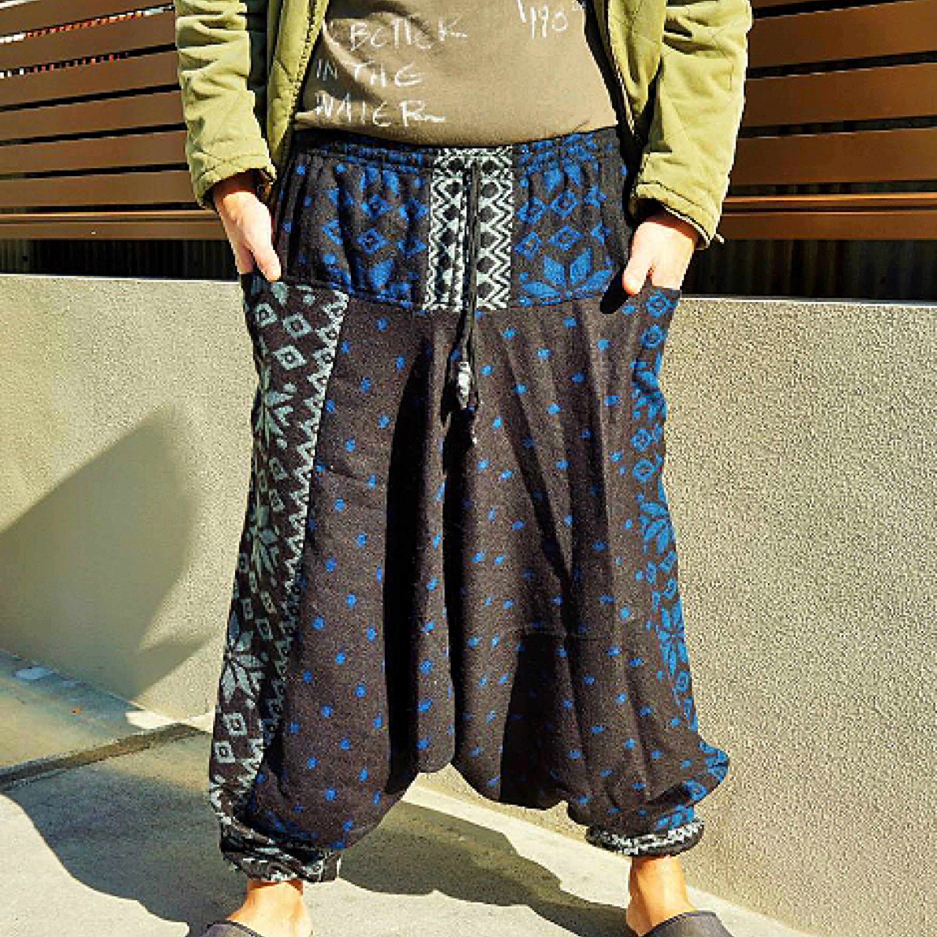 【ネパール】男女兼用 あったか ウール サルエルパンツ エスニック柄 ボトムス *フリーサイズ *